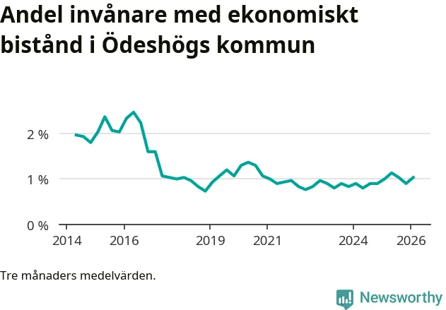 Andelen invånare med ekonomiskt bistånd i Ödeshögs kommun