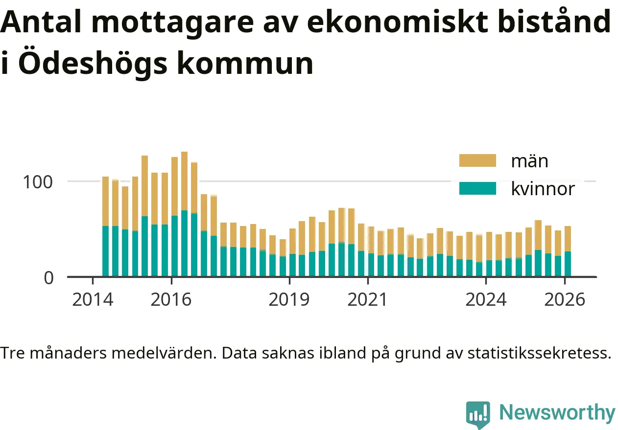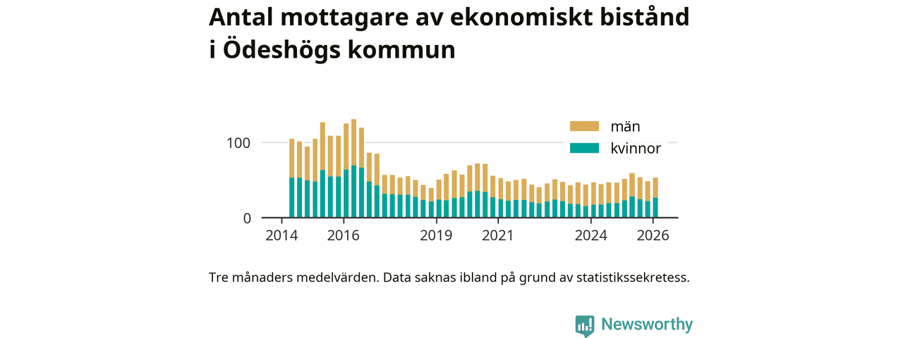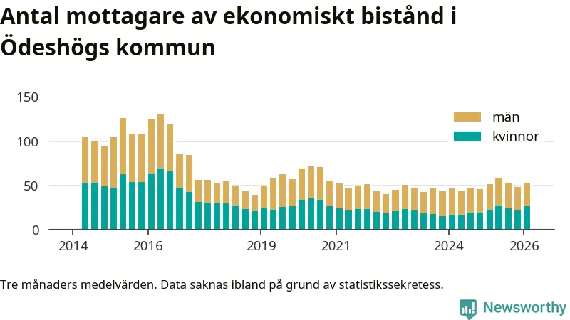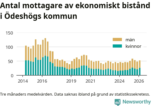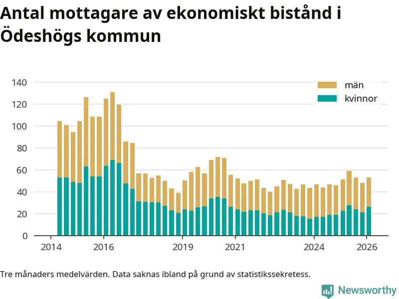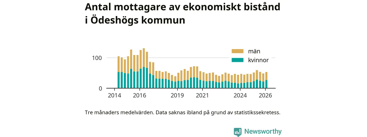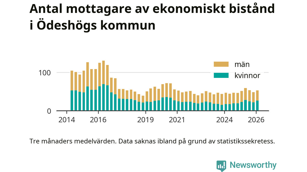 I genomsnitt 53 personer per månad fick ekonomiskt bistånd i Ödeshögs kommun