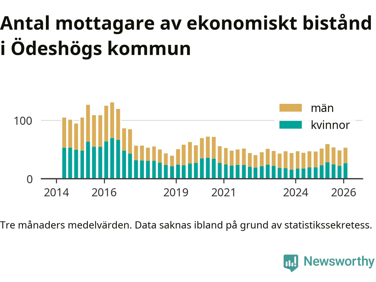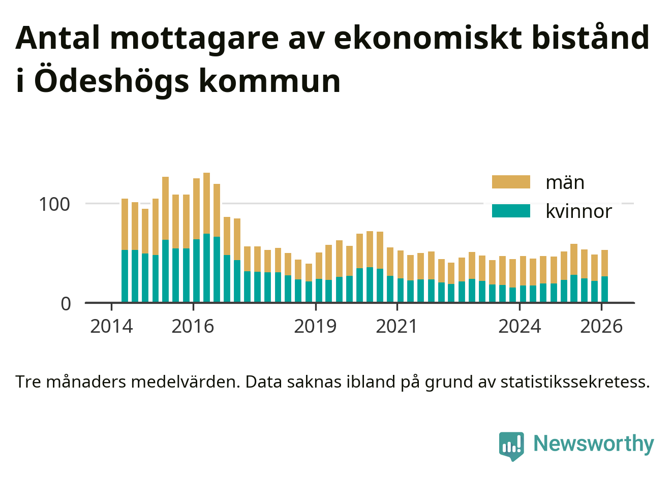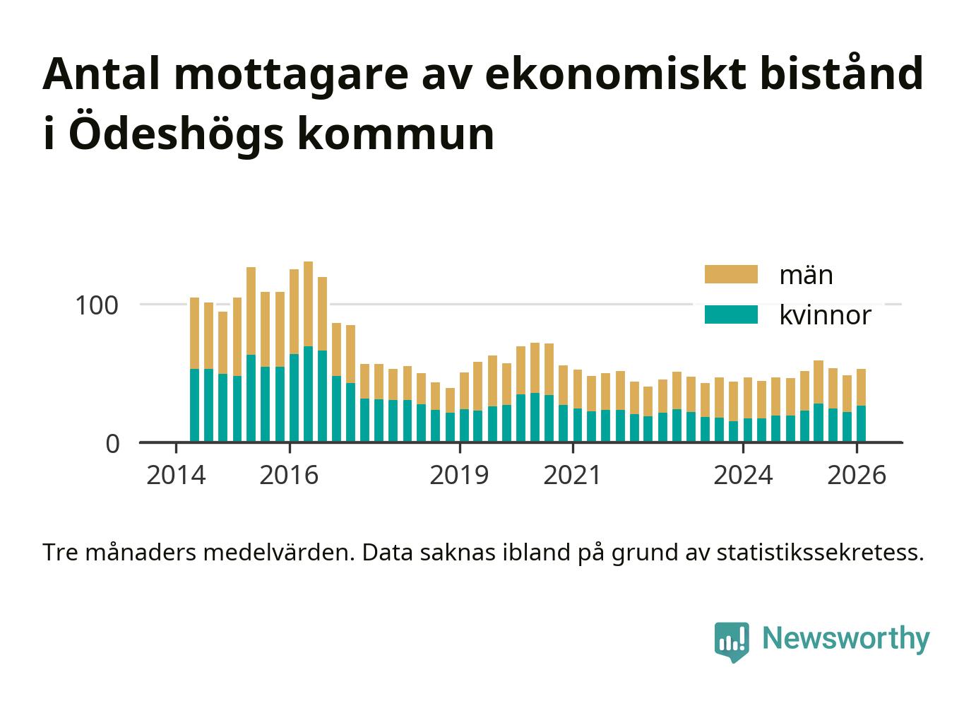 I genomsnitt 53 personer per månad fick ekonomiskt bistånd i Ödeshögs kommun