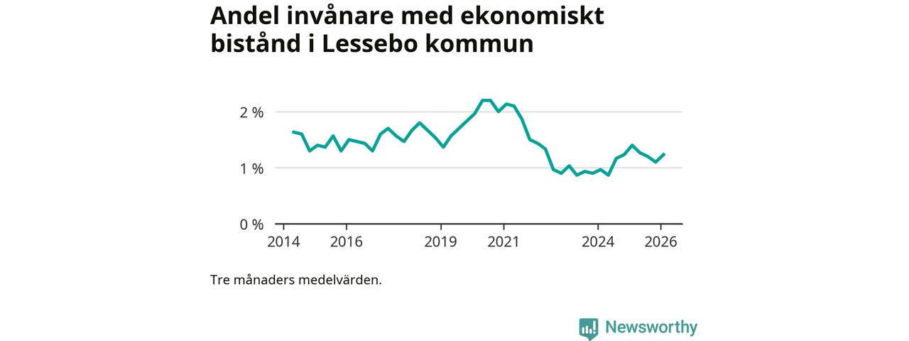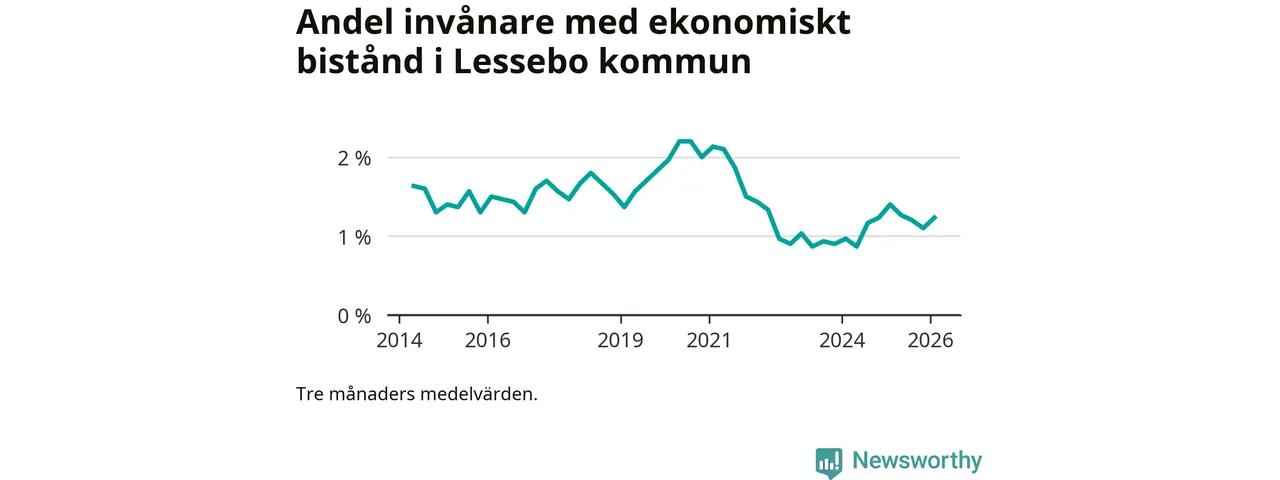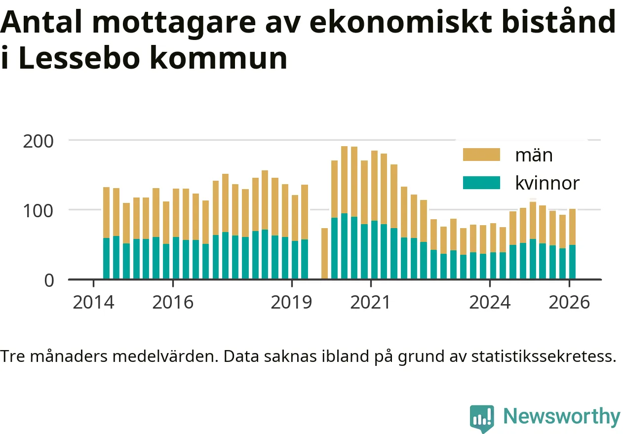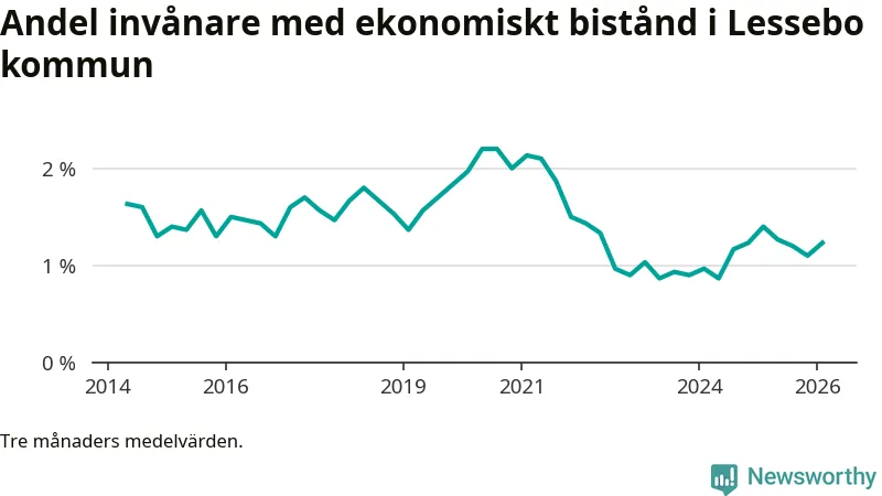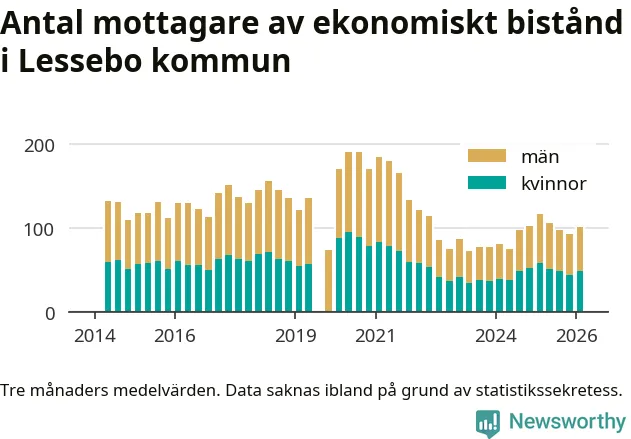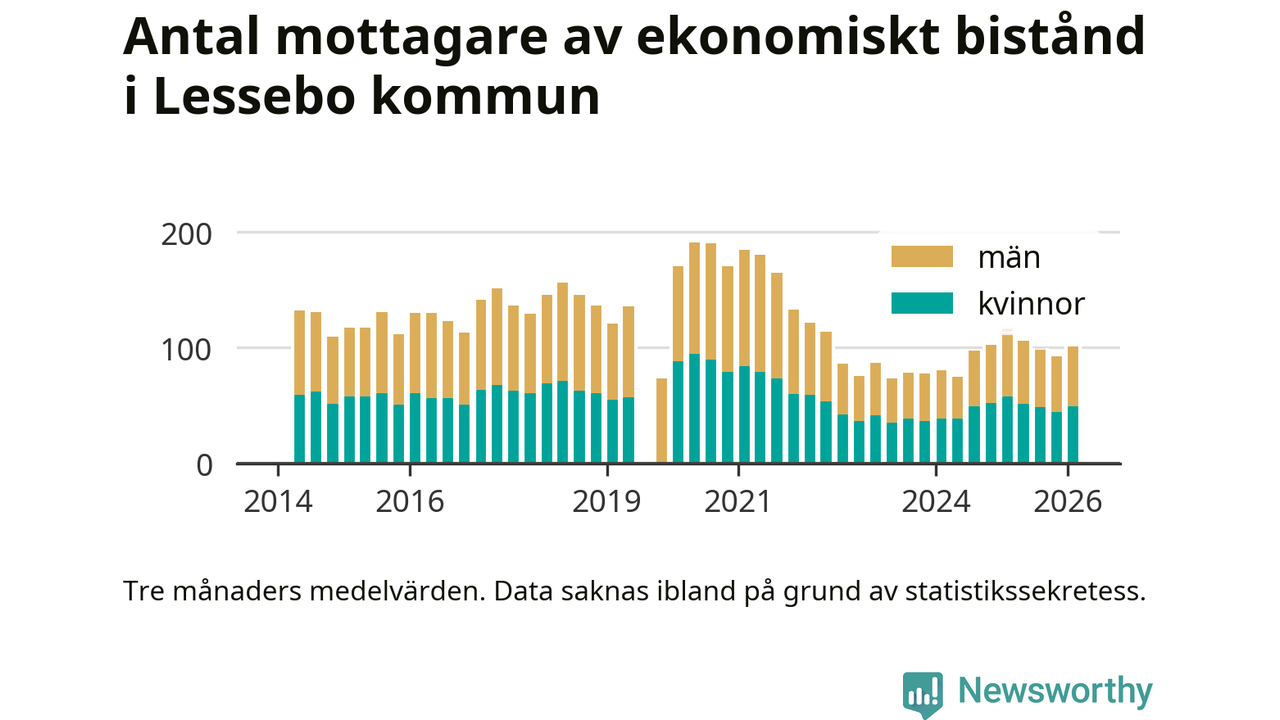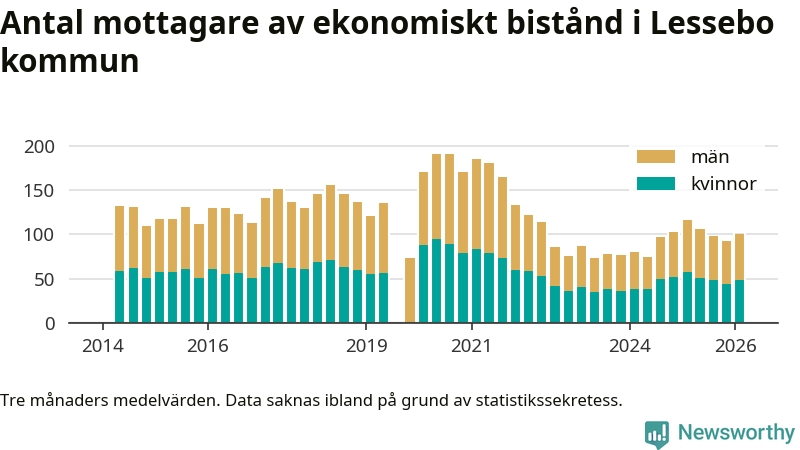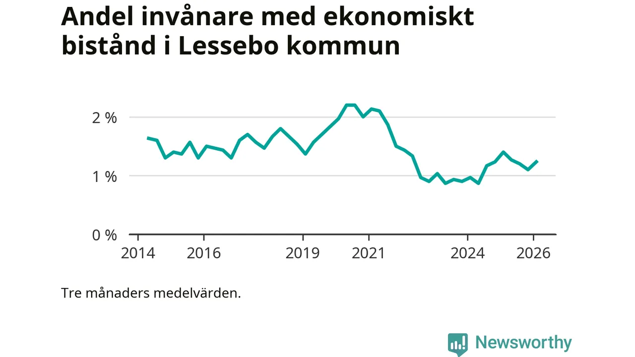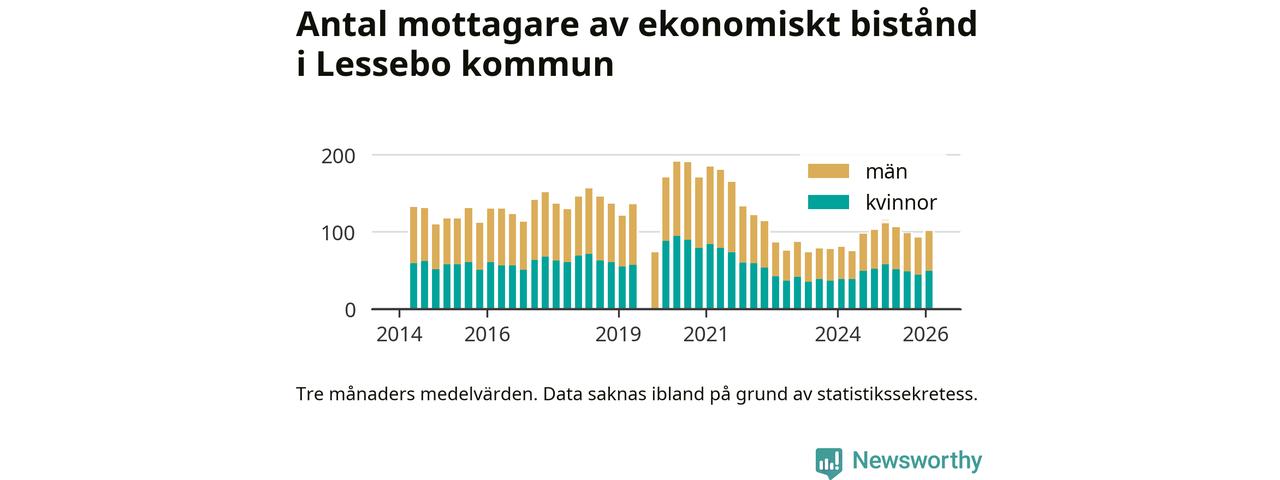 I genomsnitt 101 personer per månad fick ekonomiskt bistånd i Lessebo kommun
