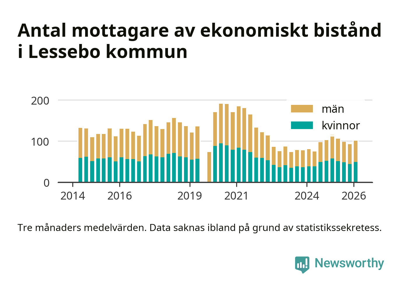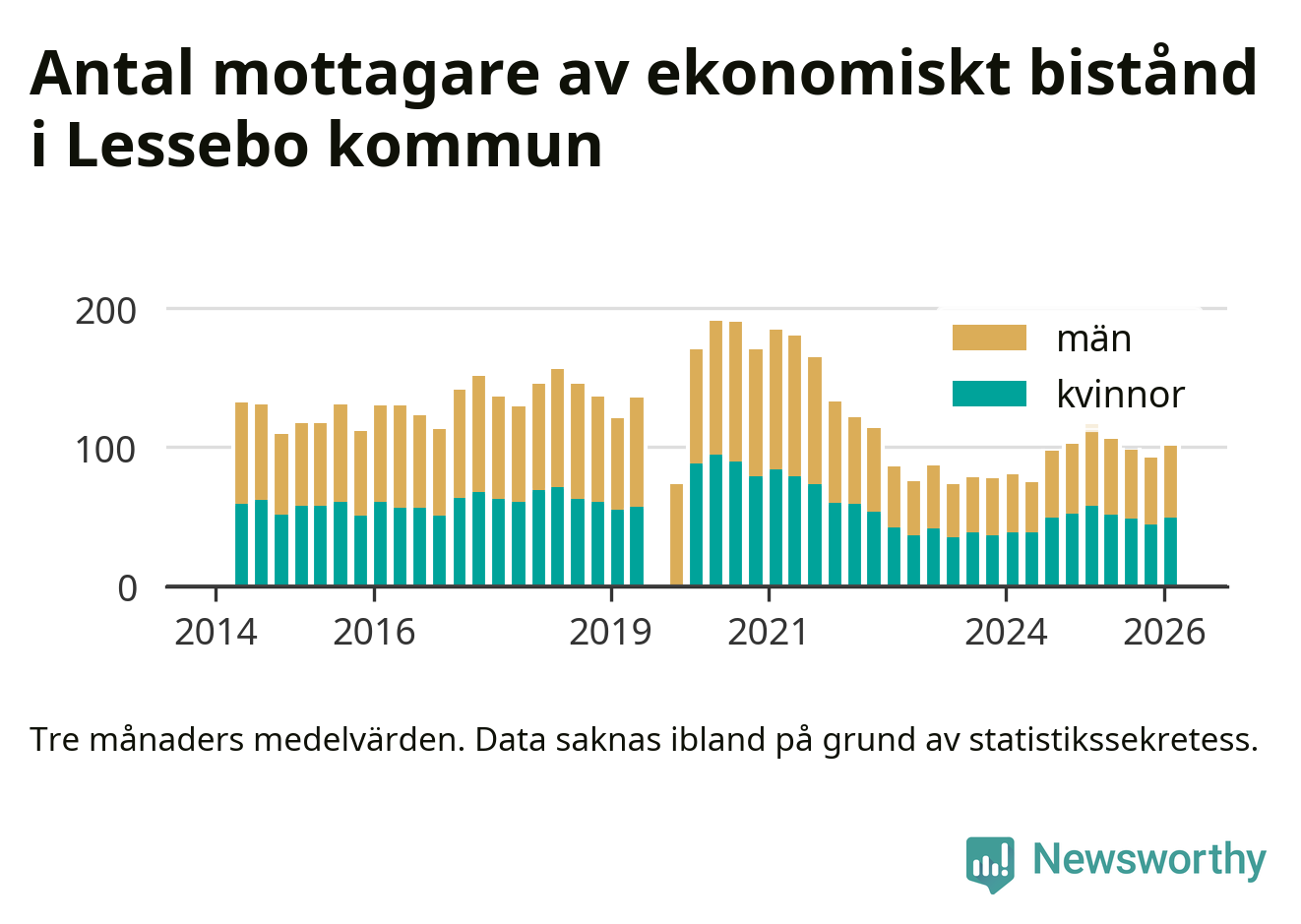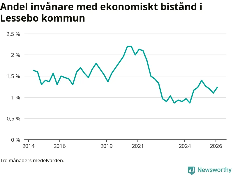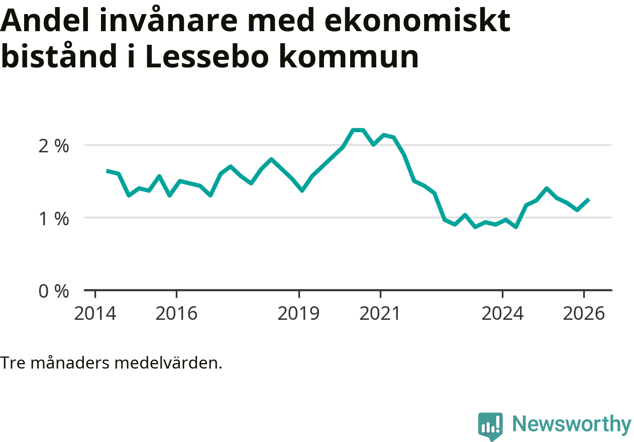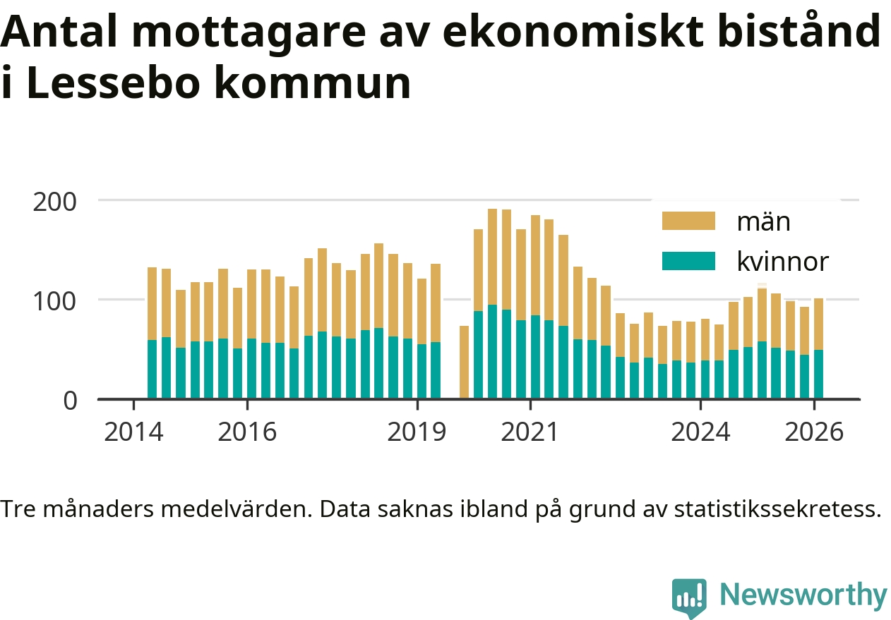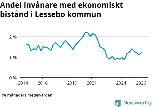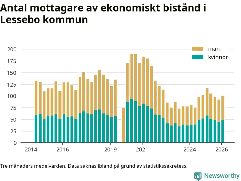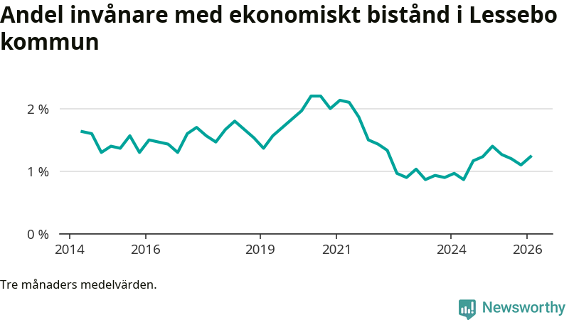 I genomsnitt 101 personer per månad fick ekonomiskt bistånd i Lessebo kommun