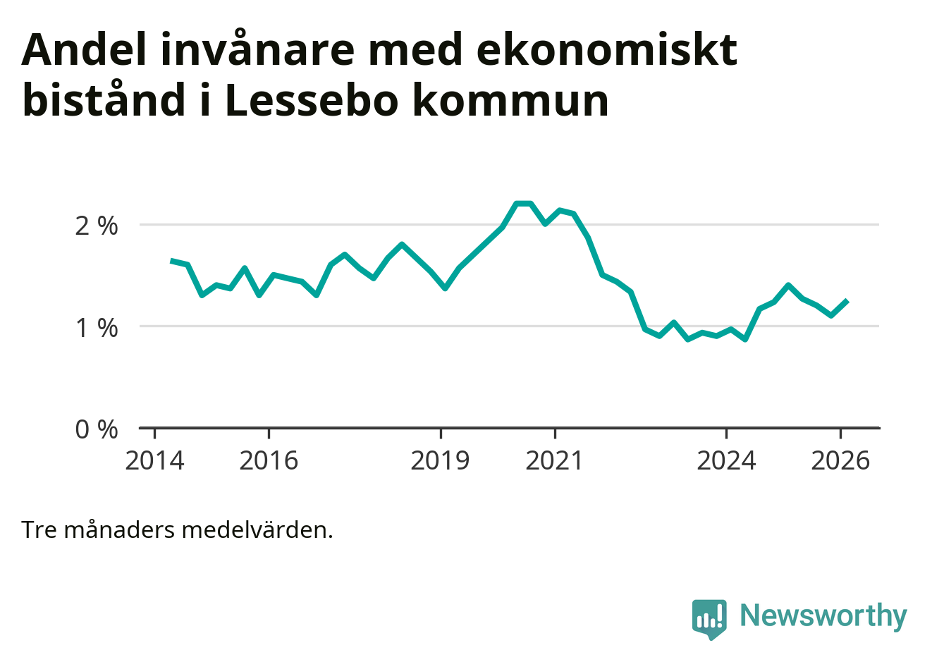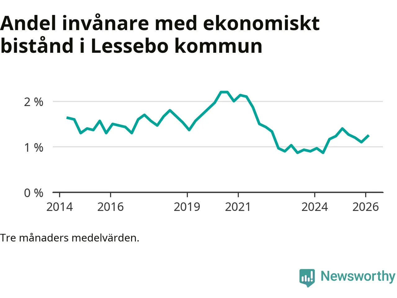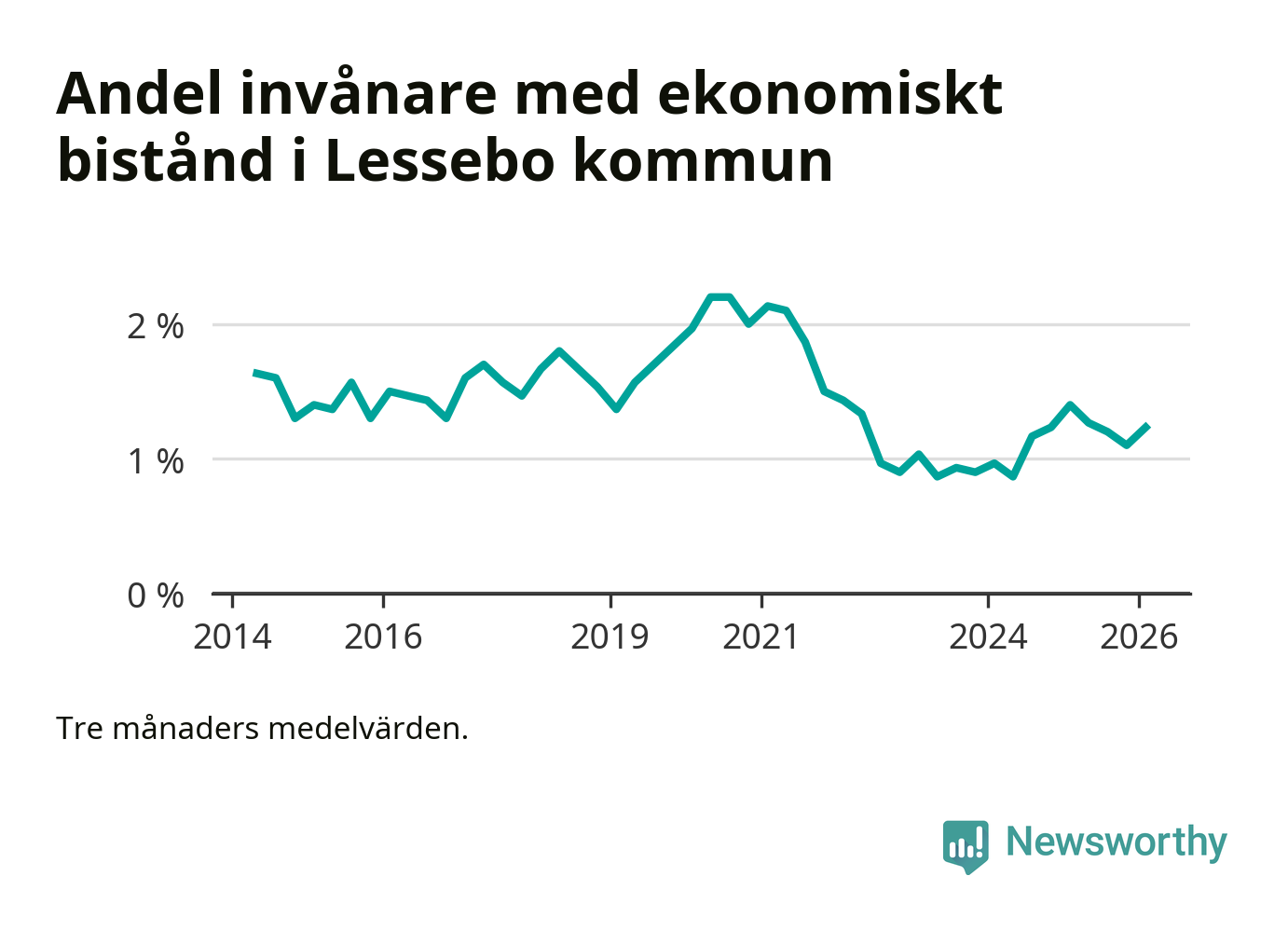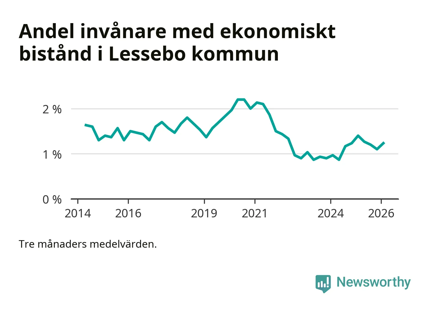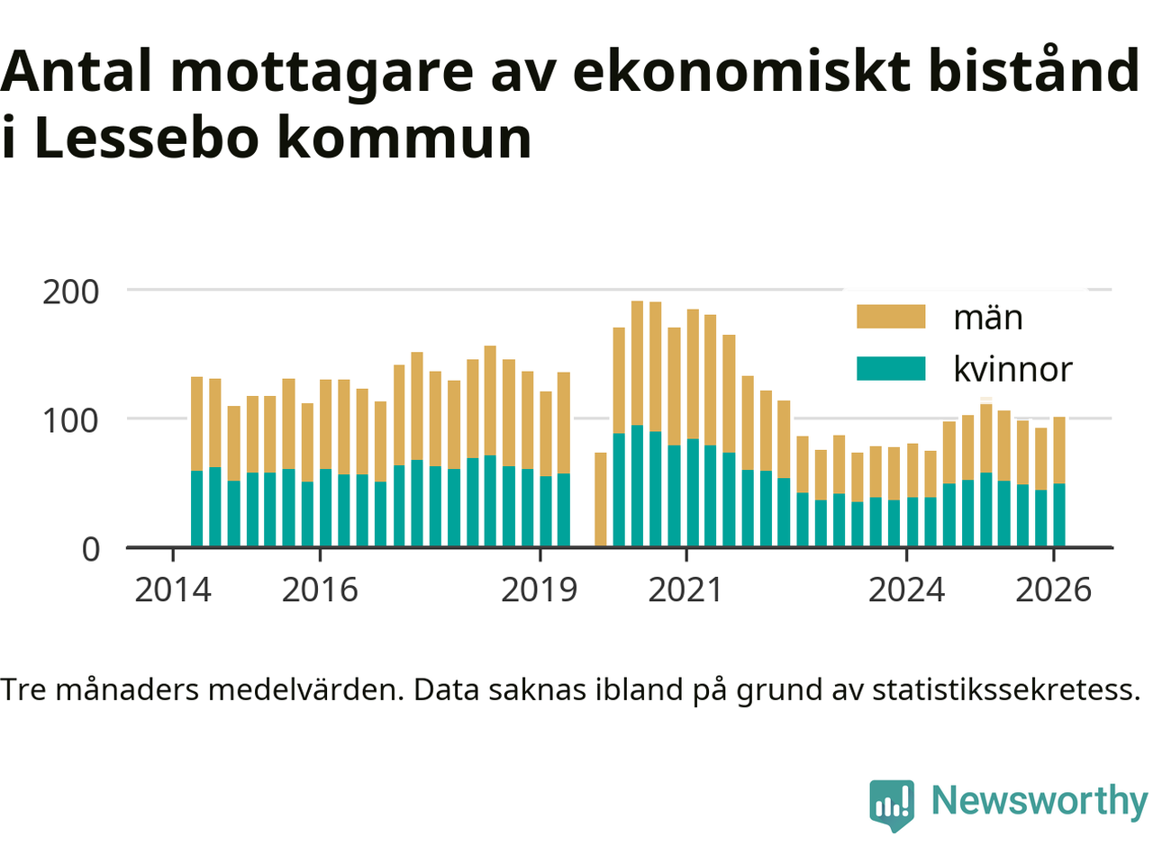 I genomsnitt 101 personer per månad fick ekonomiskt bistånd i Lessebo kommun