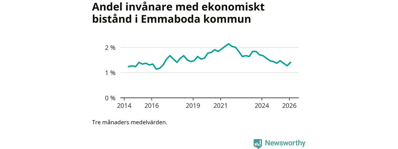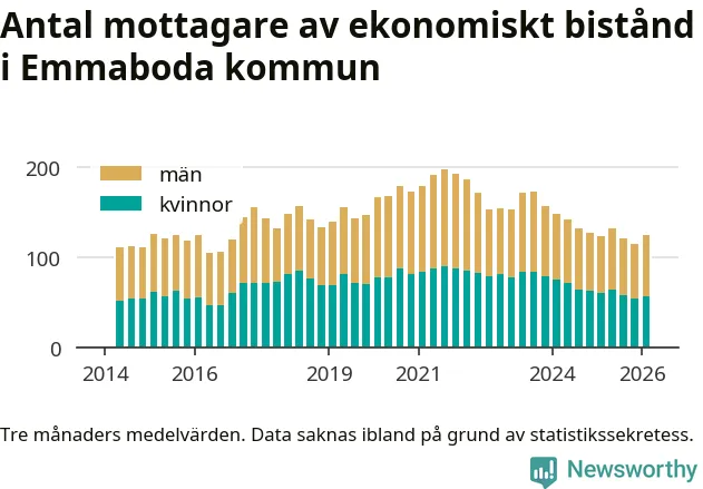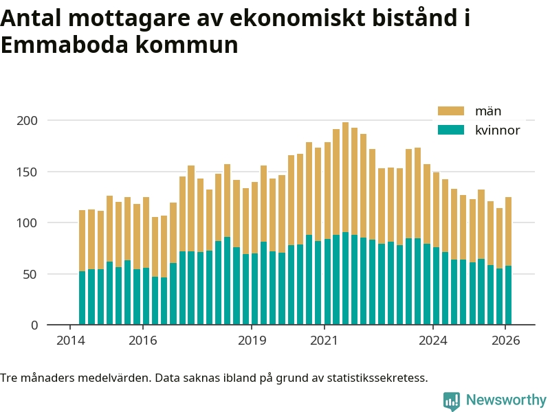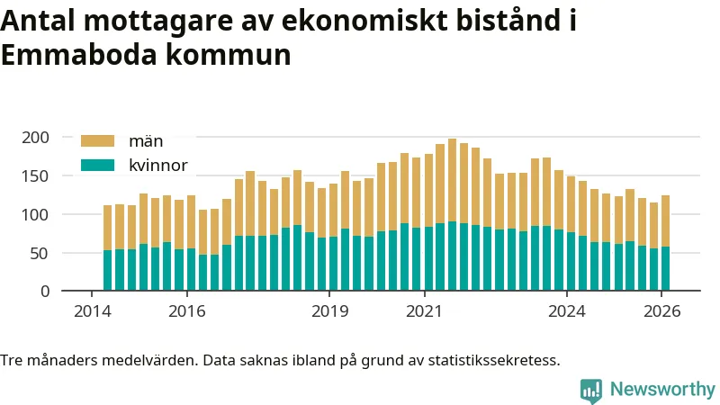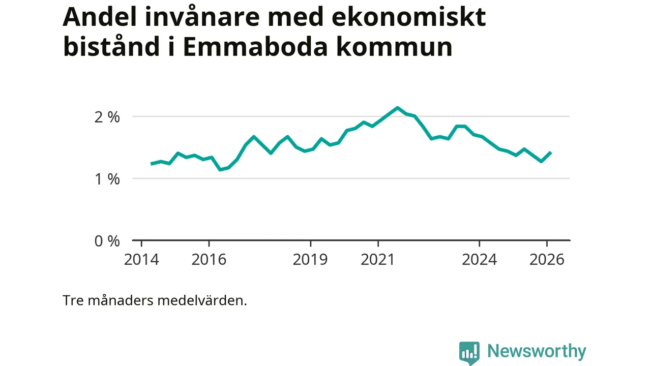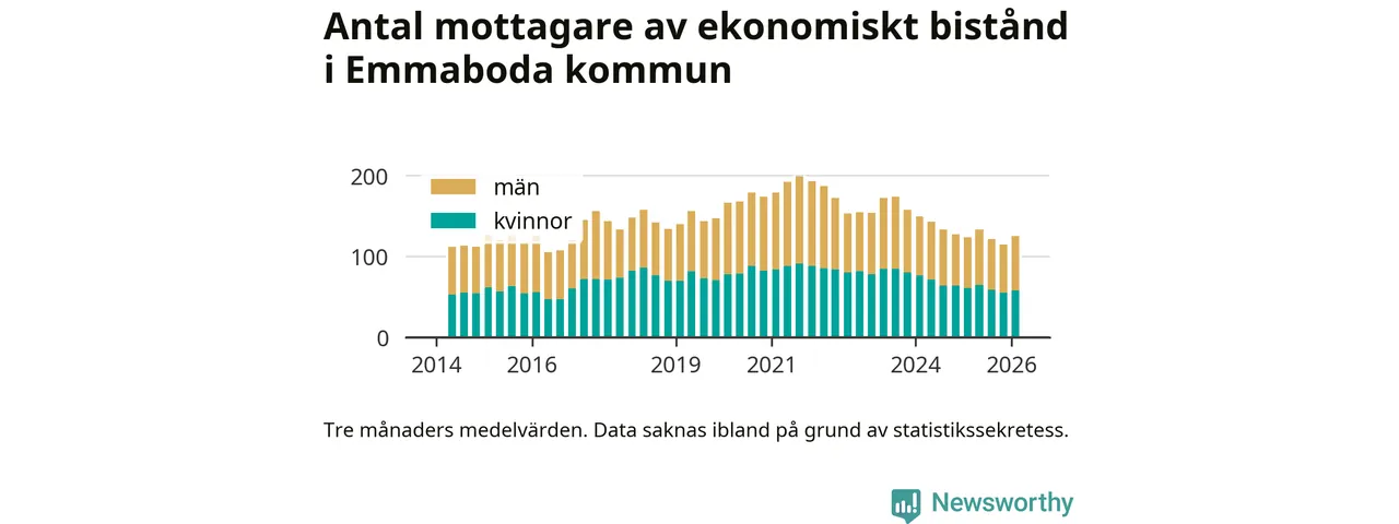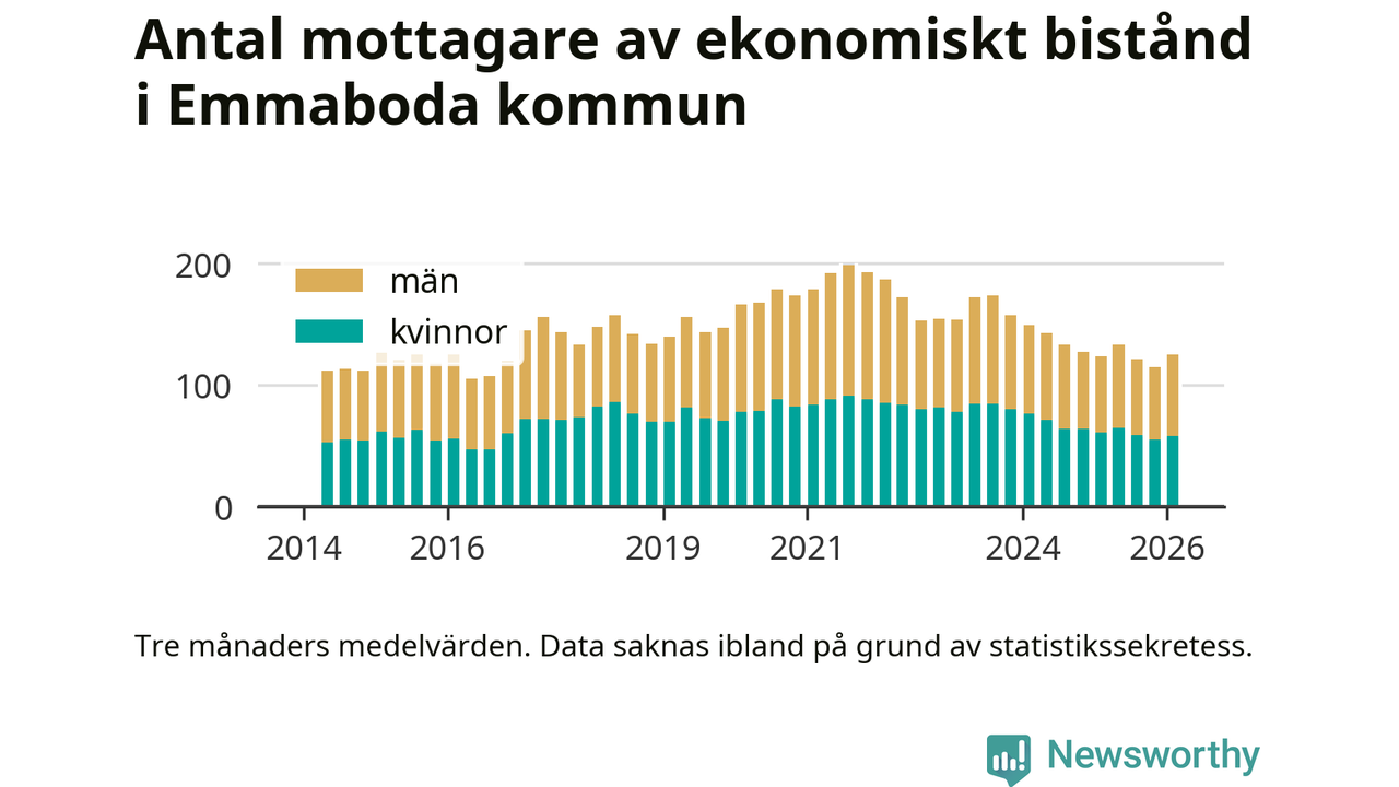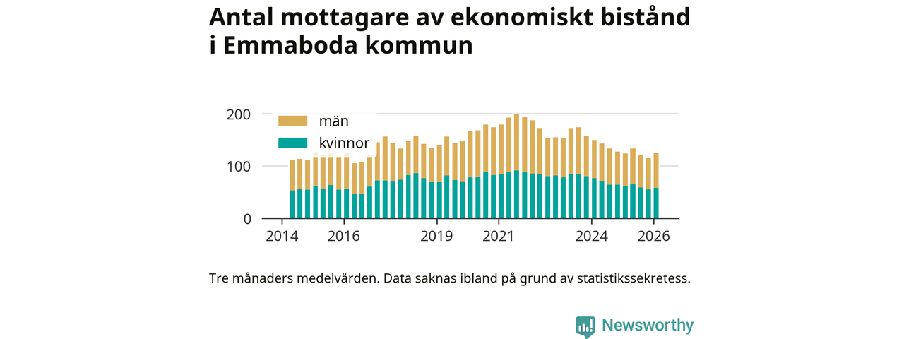 I genomsnitt 125 personer per månad fick ekonomiskt bistånd i Emmaboda kommun