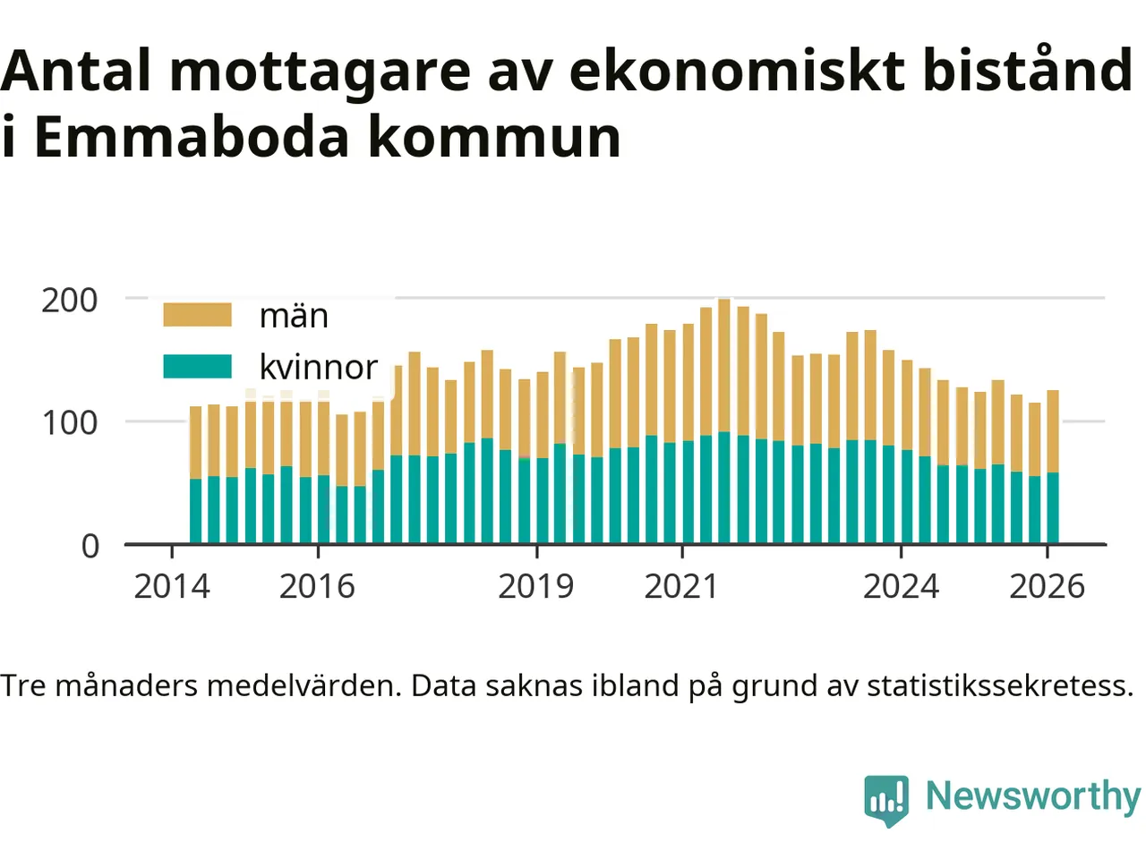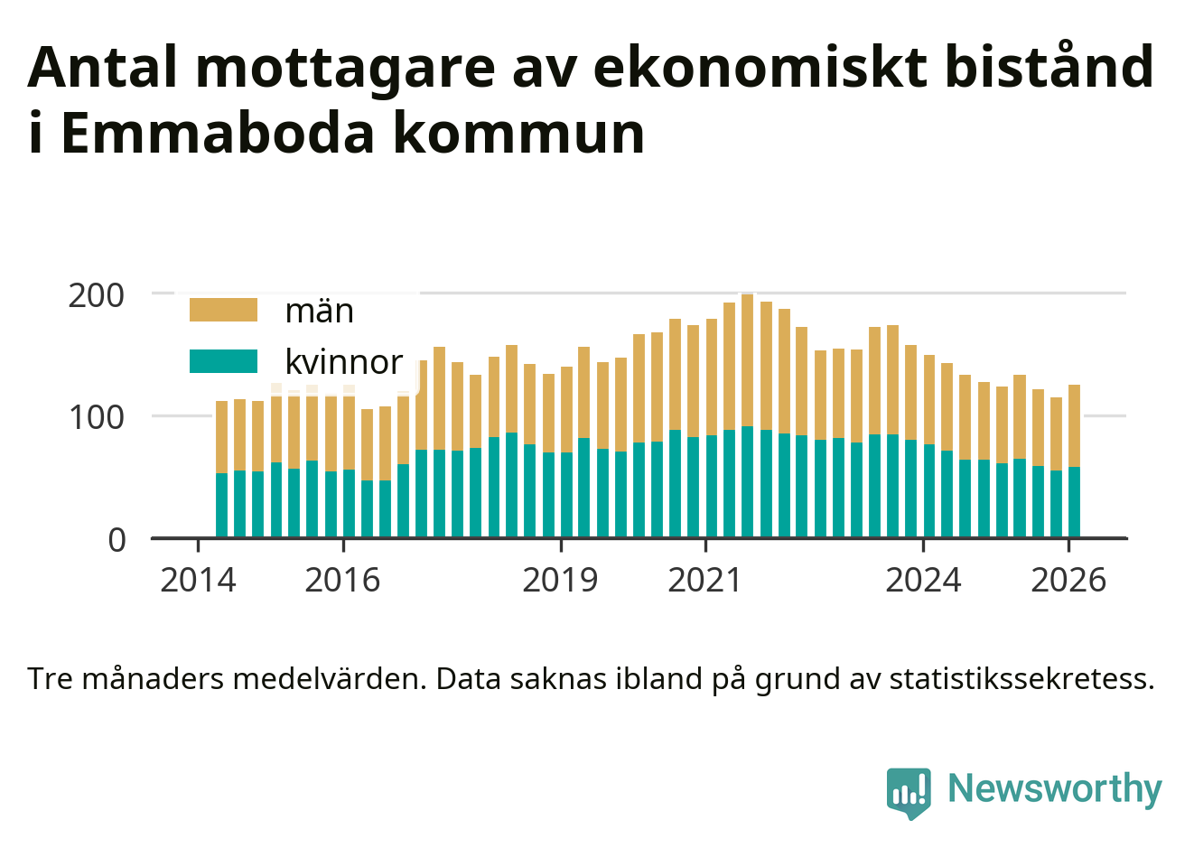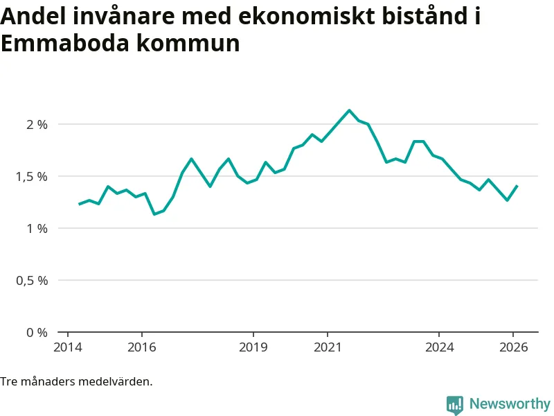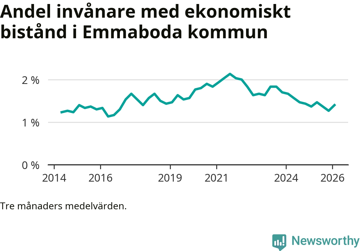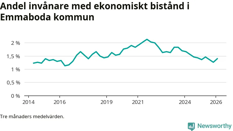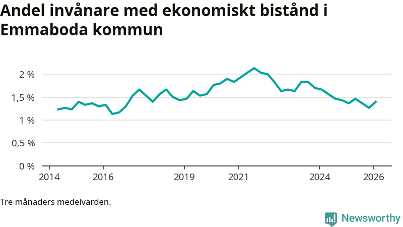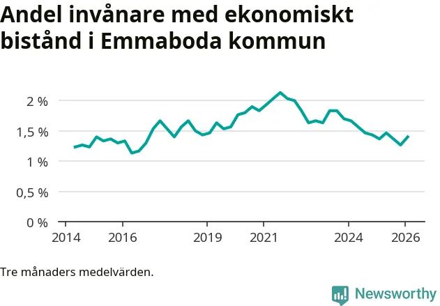I genomsnitt 125 personer per månad fick ekonomiskt bistånd i Emmaboda kommun