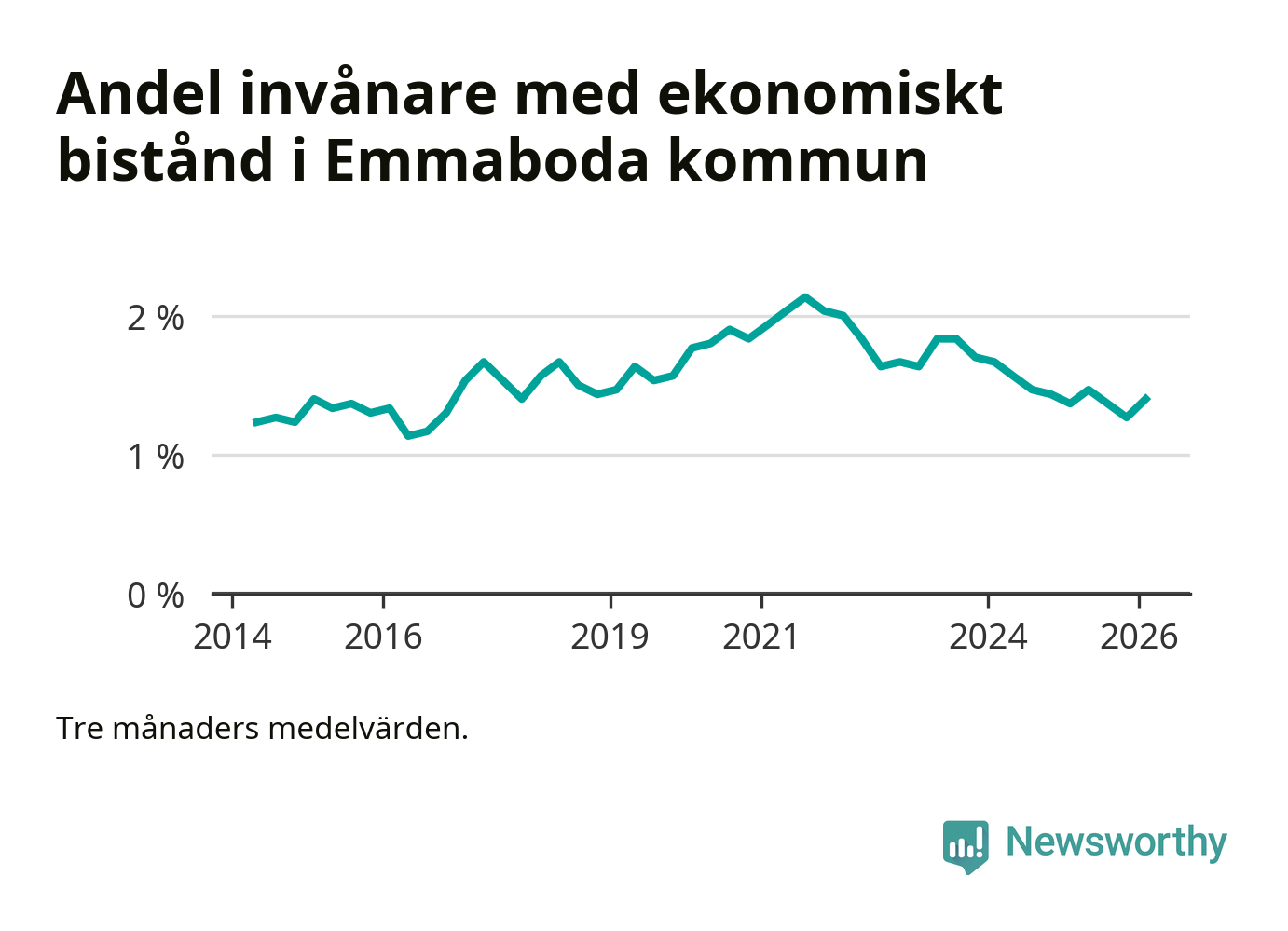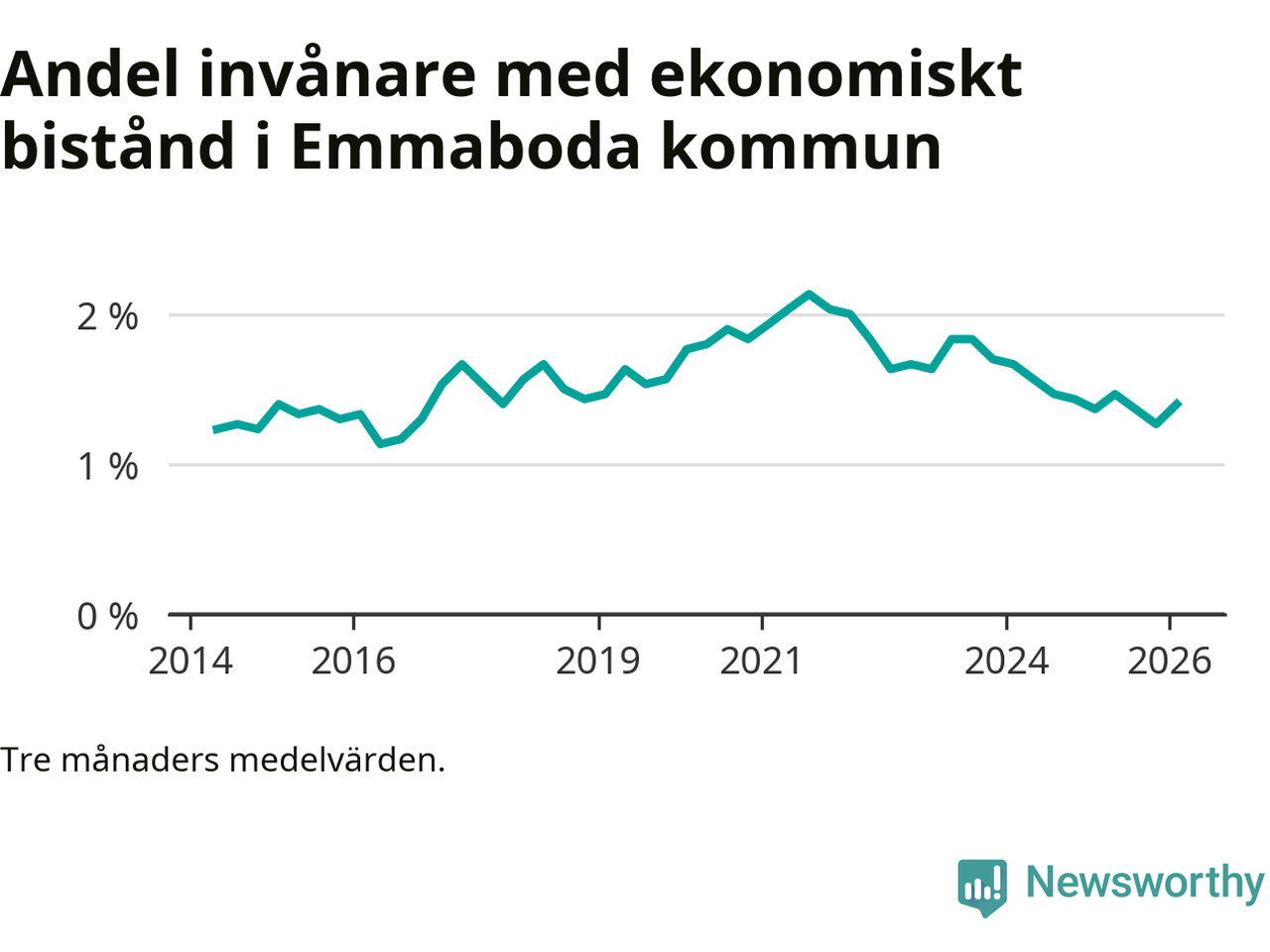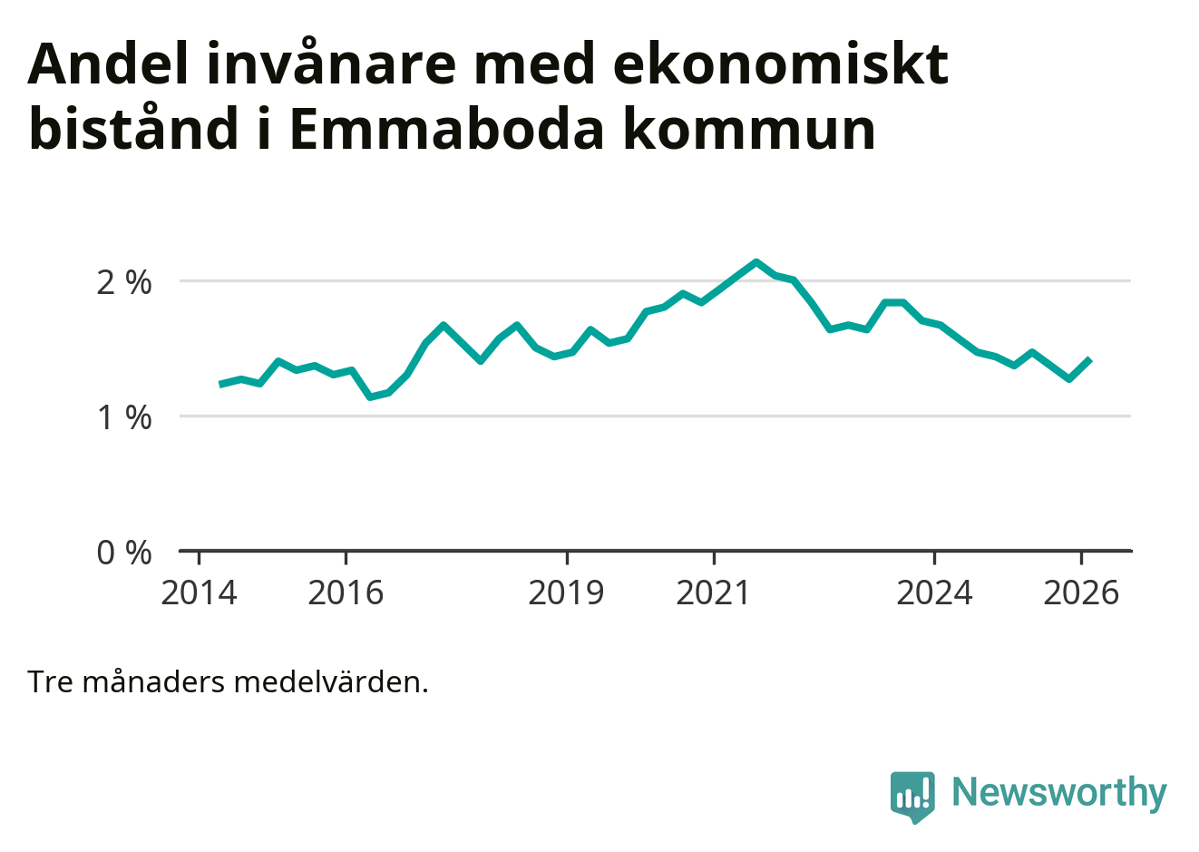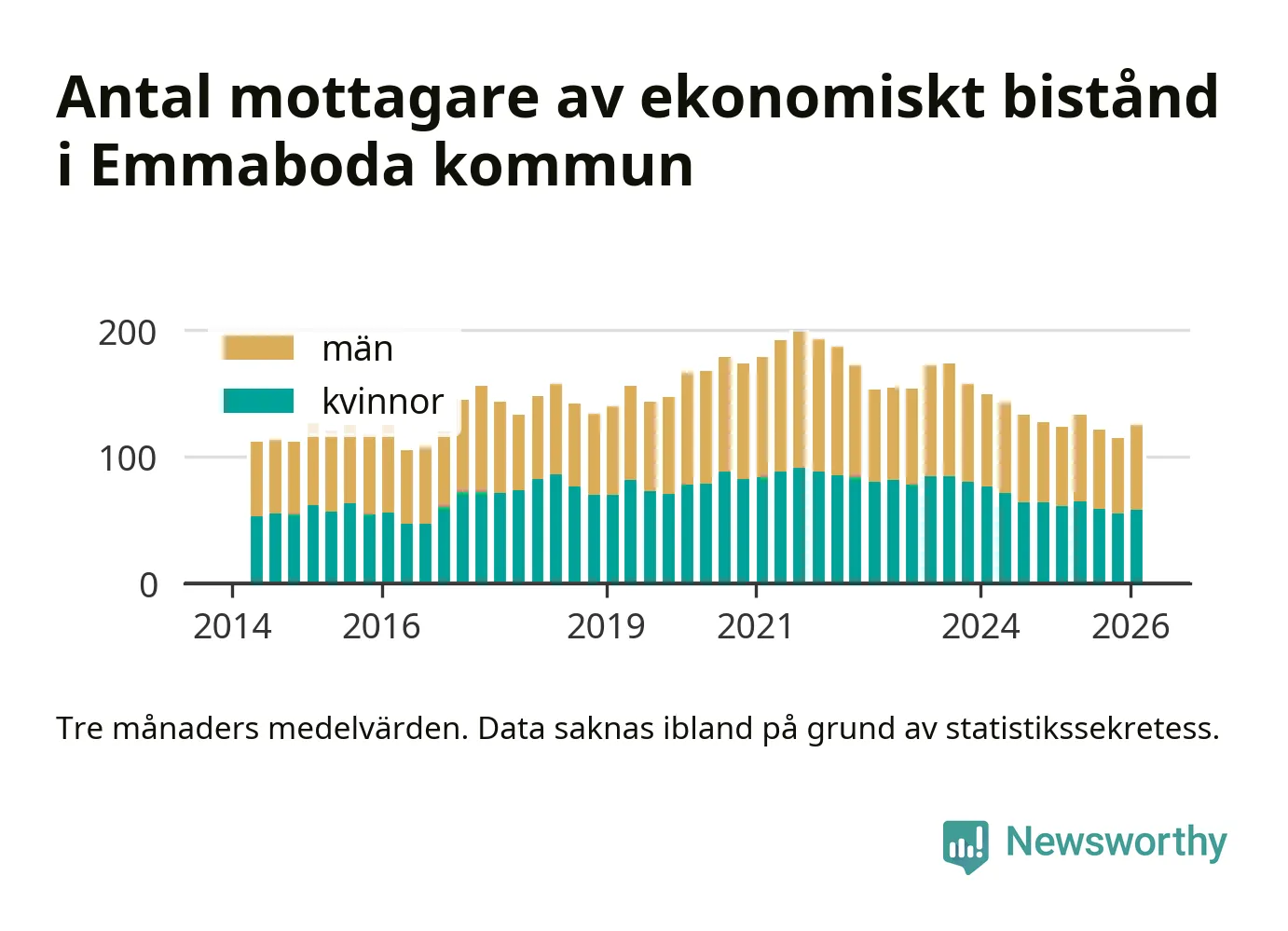 I genomsnitt 125 personer per månad fick ekonomiskt bistånd i Emmaboda kommun