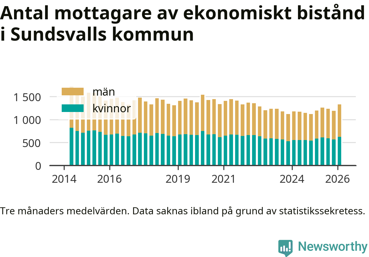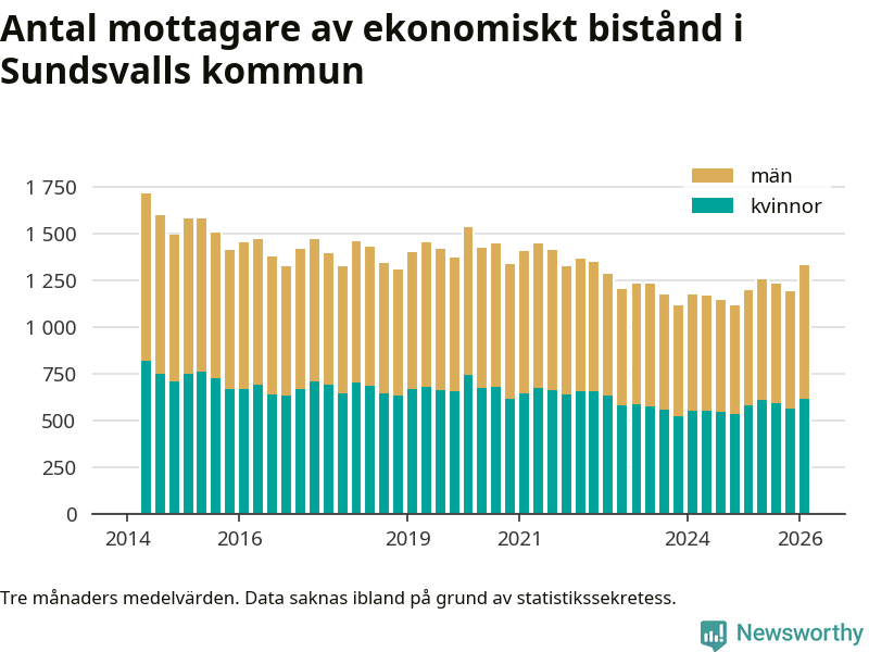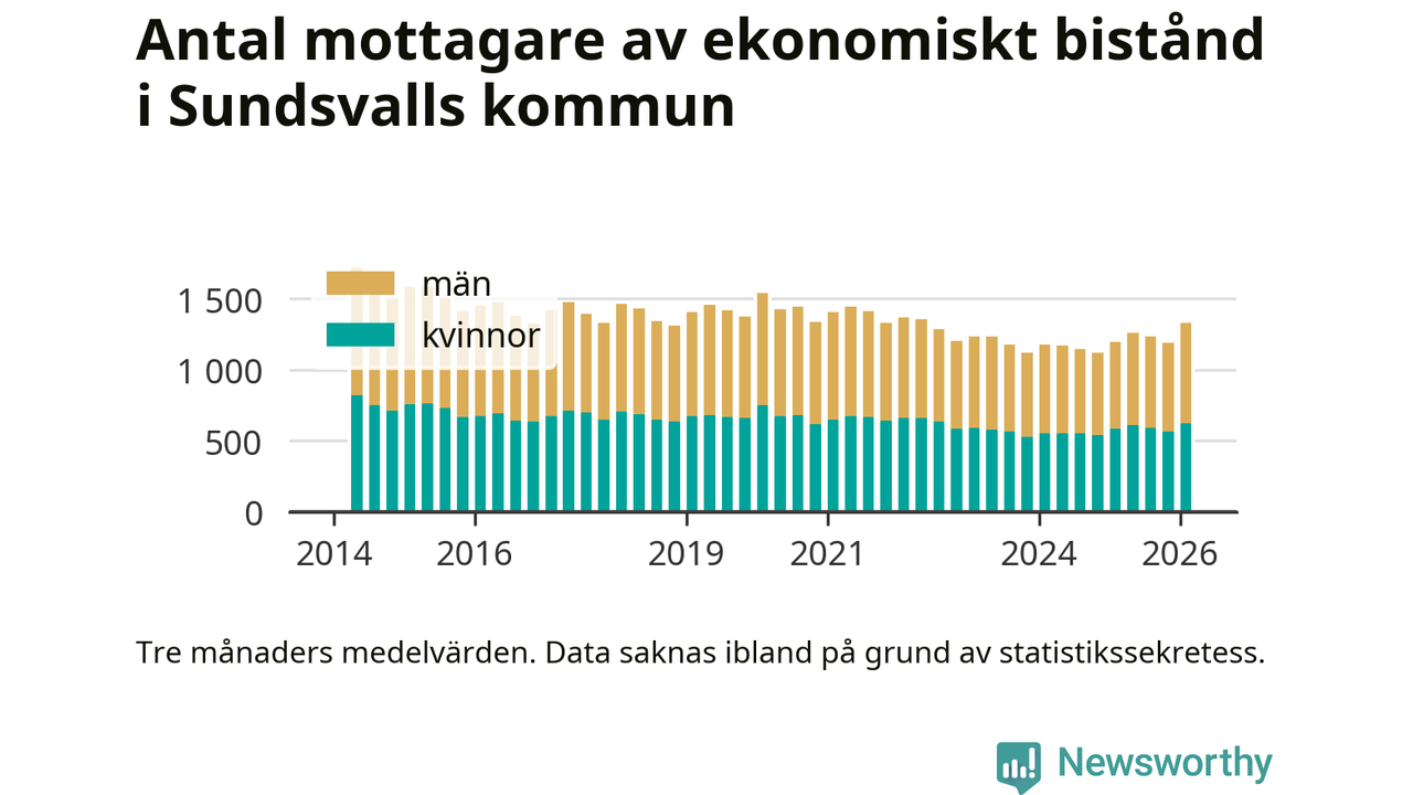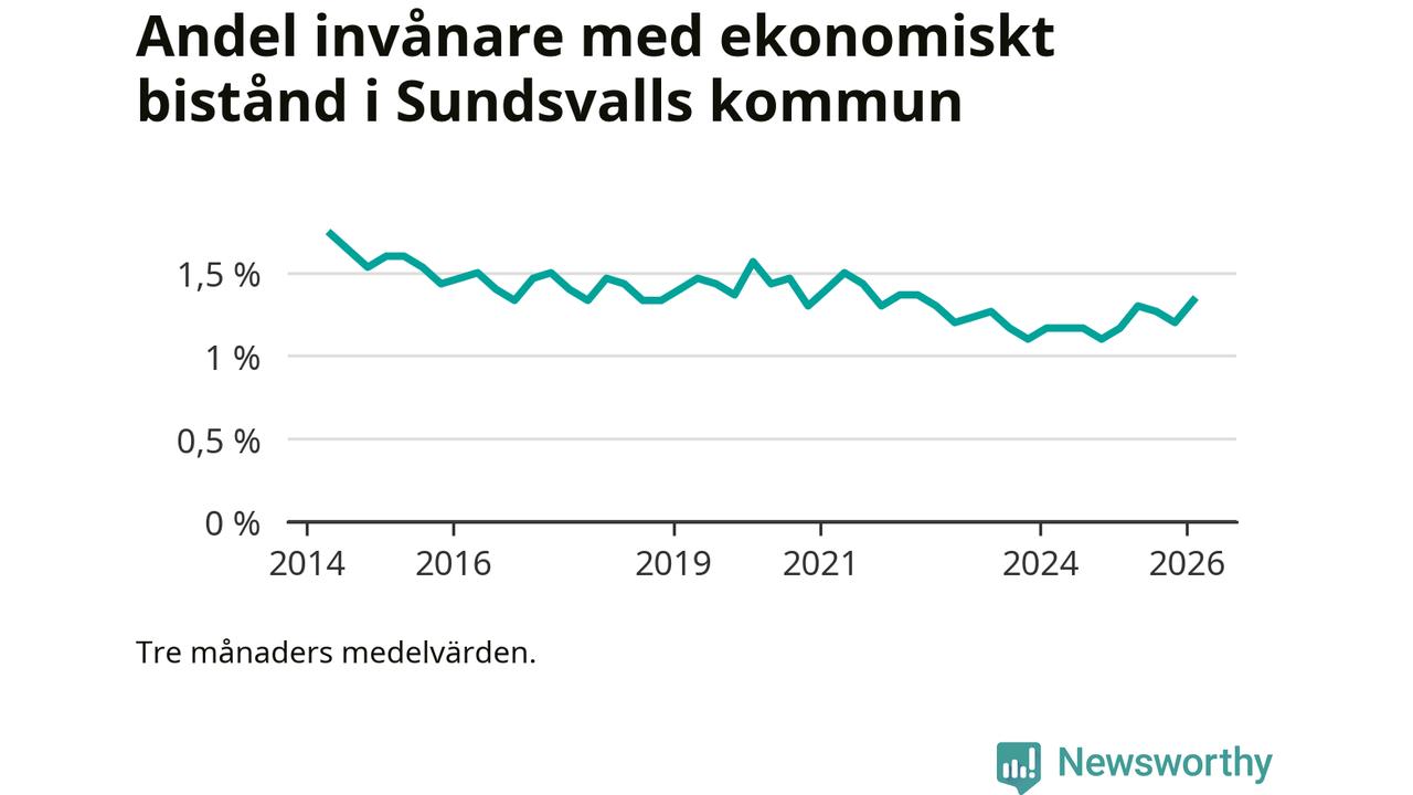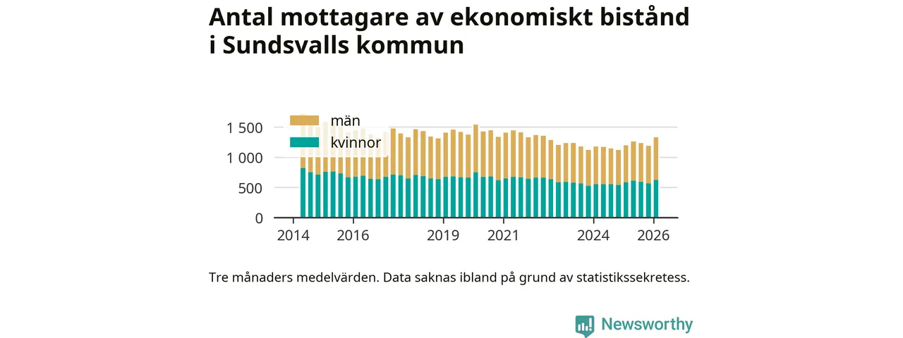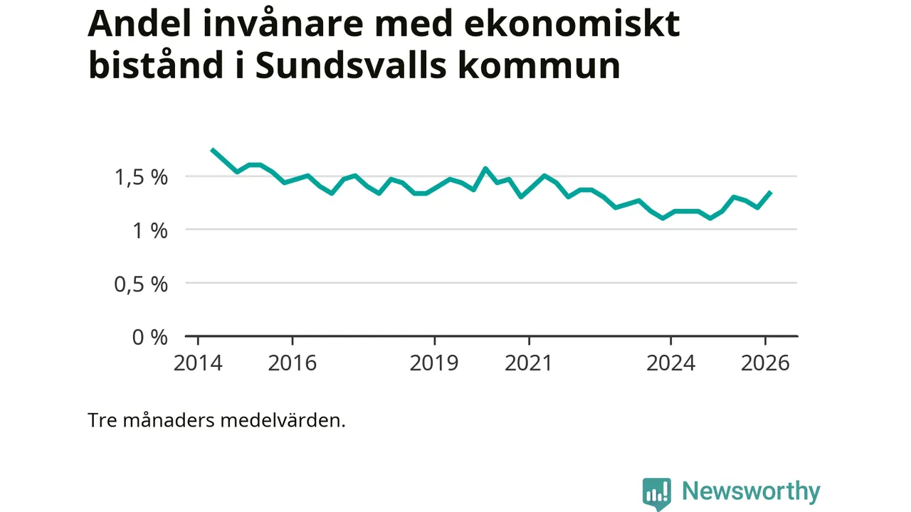 I genomsnitt 1 330 personer per månad fick ekonomiskt bistånd i Sundsvalls kommun