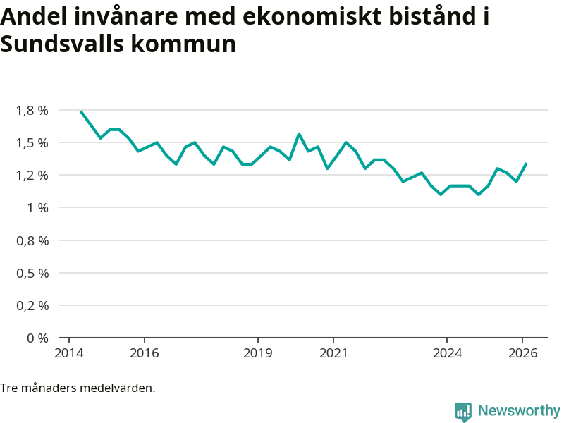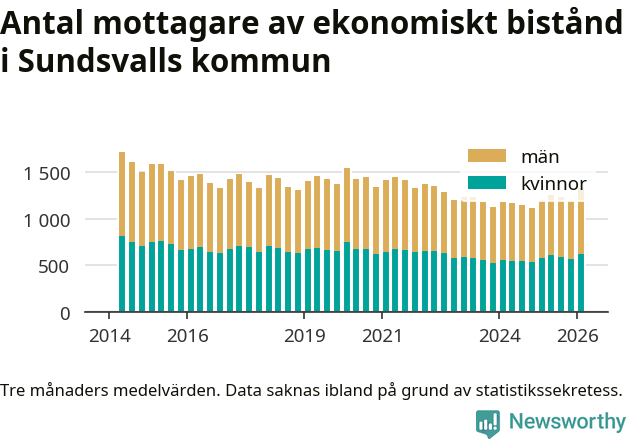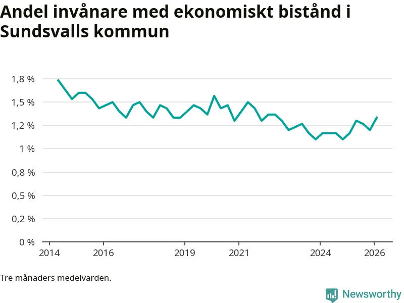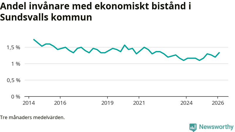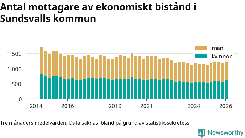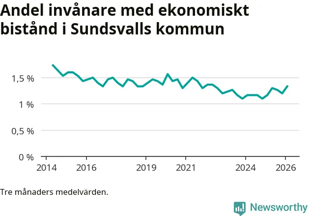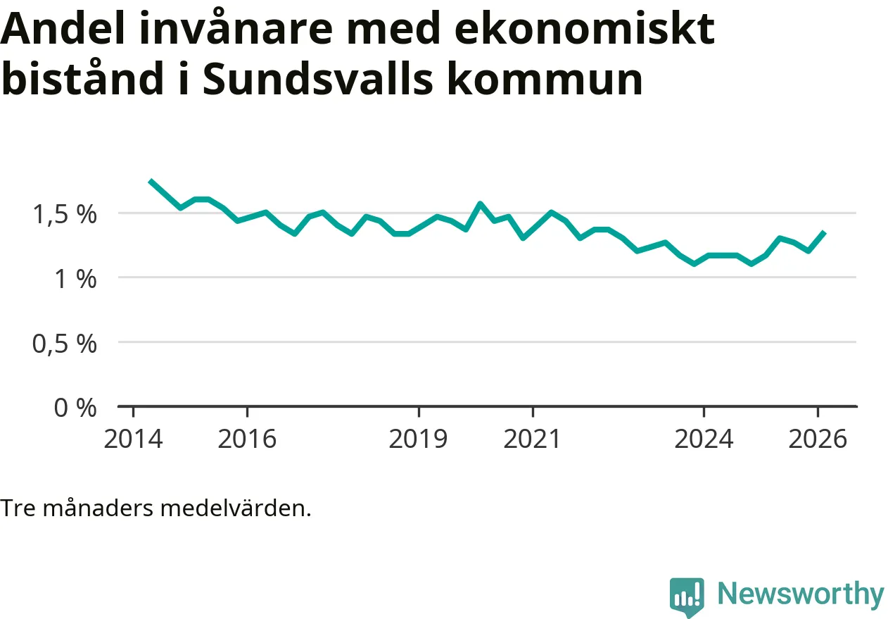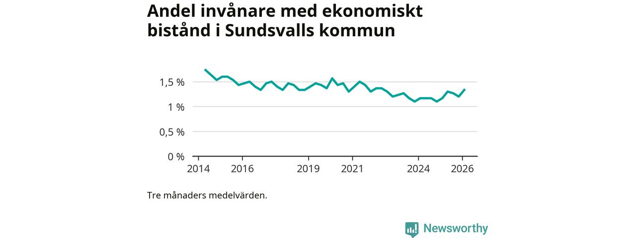 I genomsnitt 1 330 personer per månad fick ekonomiskt bistånd i Sundsvalls kommun