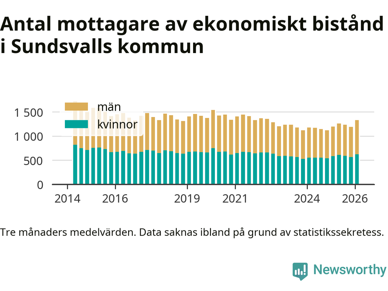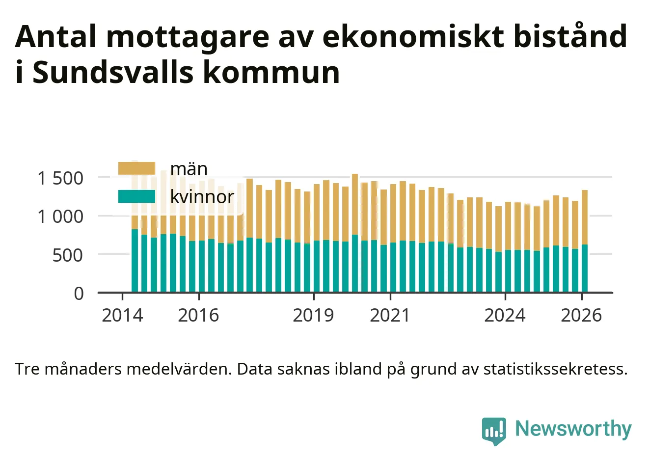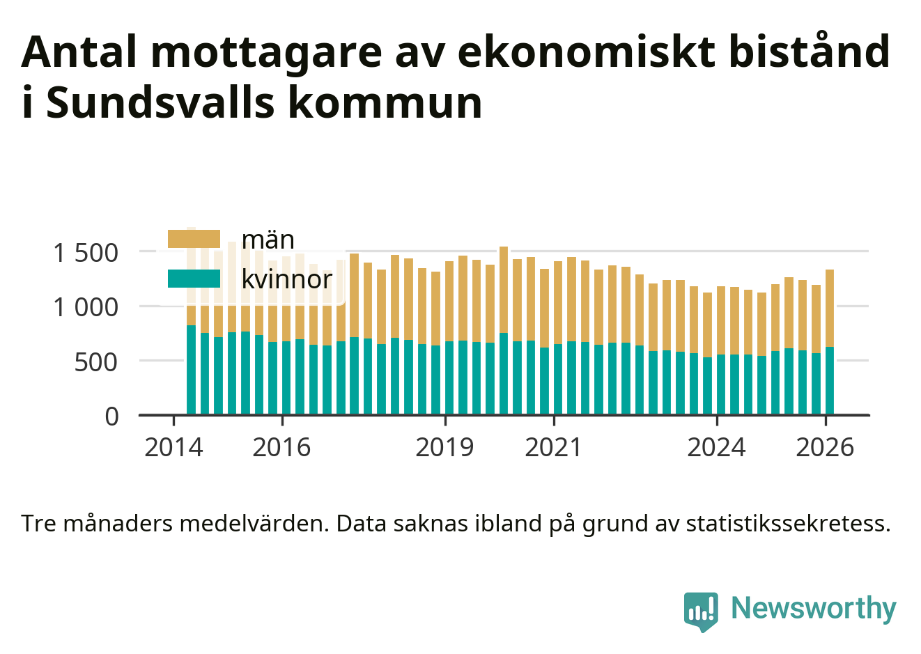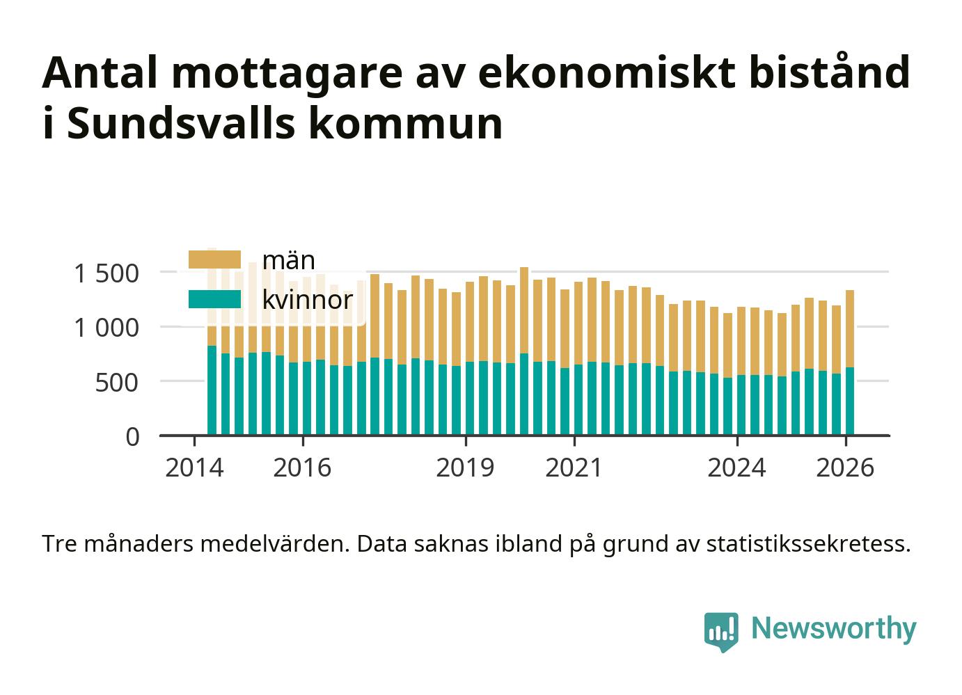 I genomsnitt 1 330 personer per månad fick ekonomiskt bistånd i Sundsvalls kommun