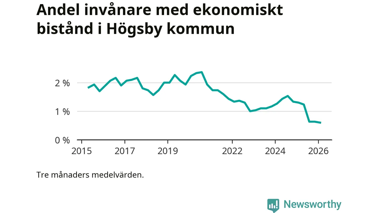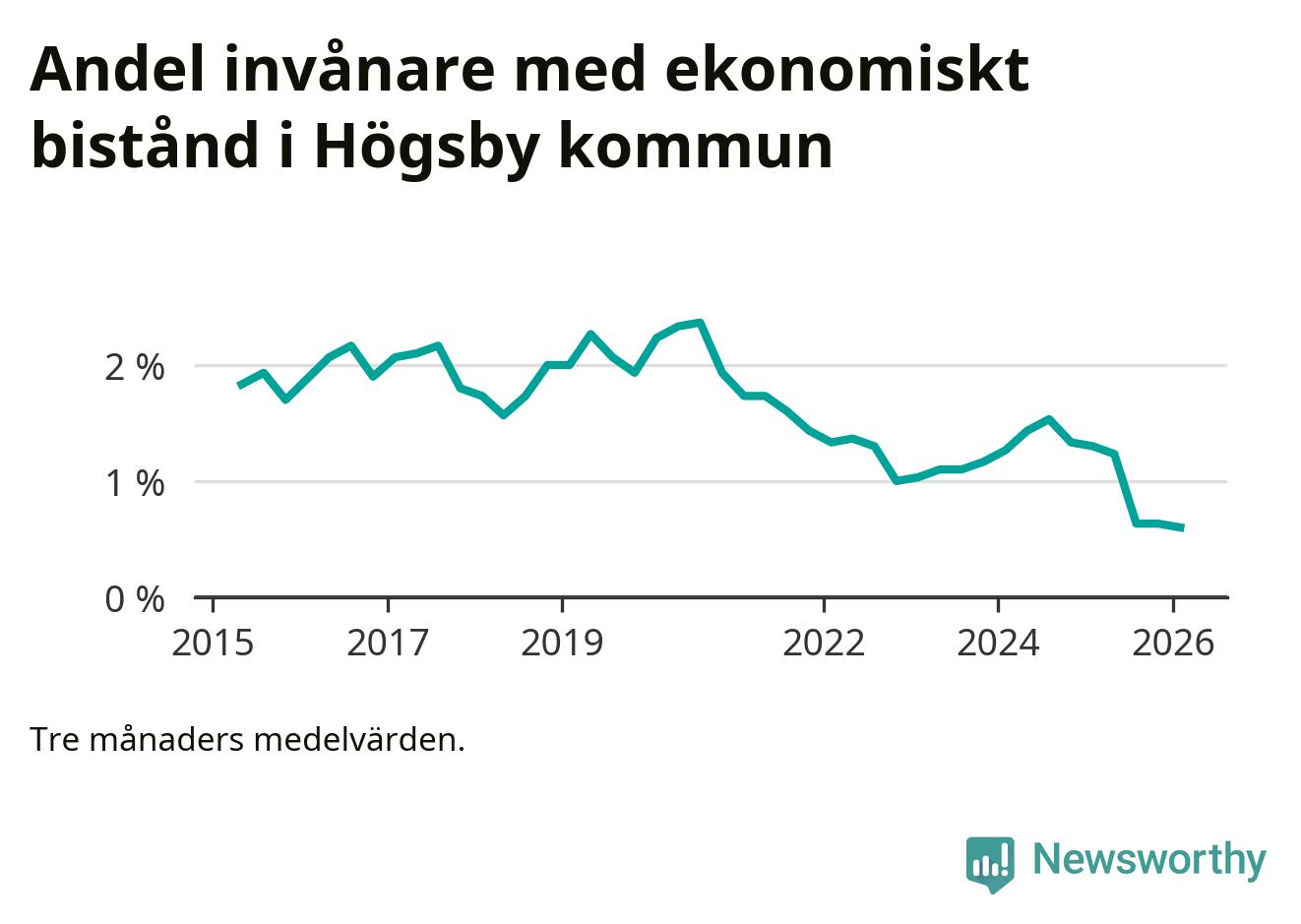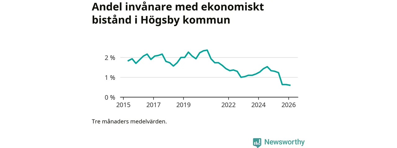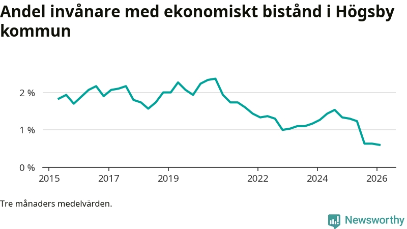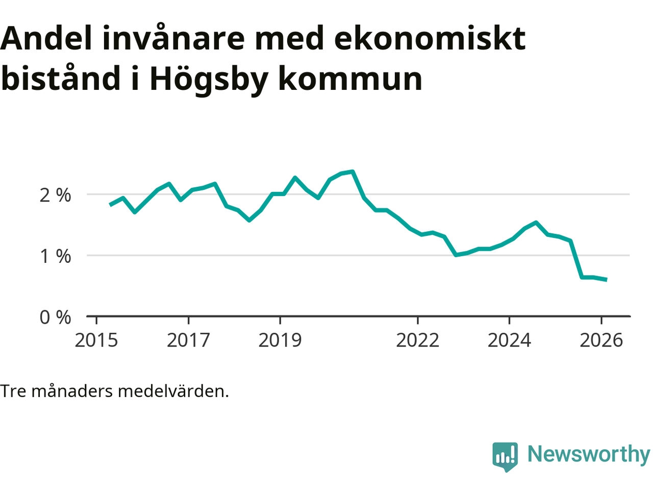 Andelen invånare med ekonomiskt bistånd i Högsby kommun