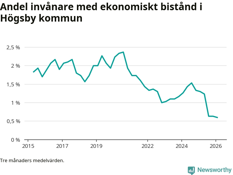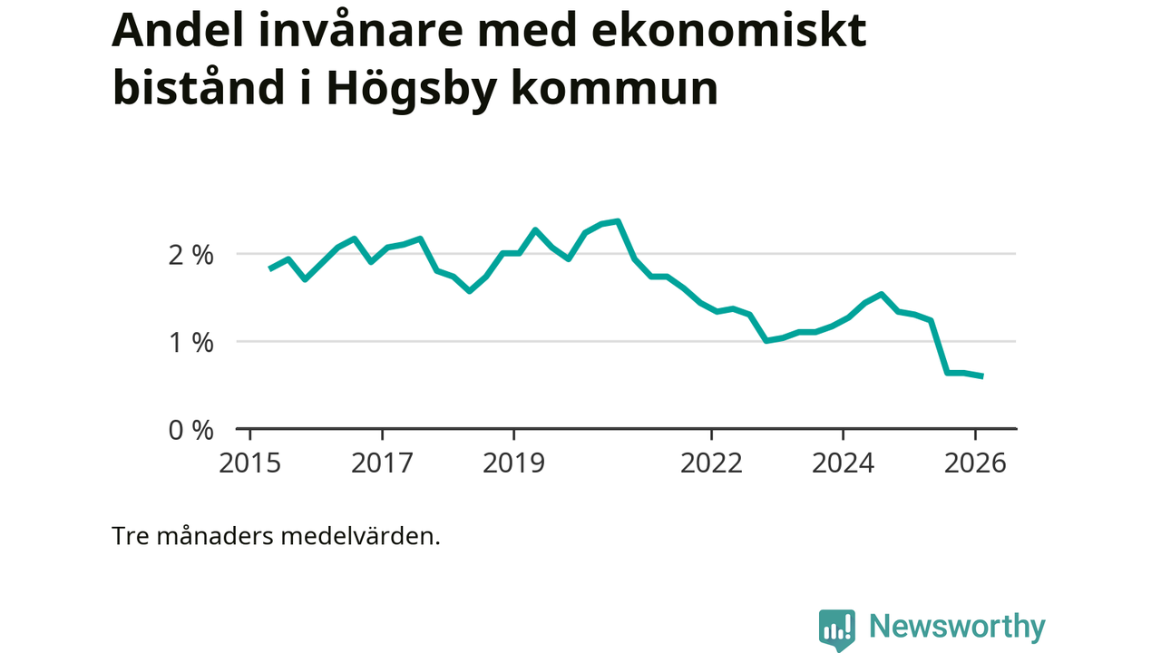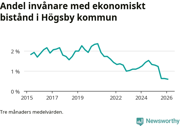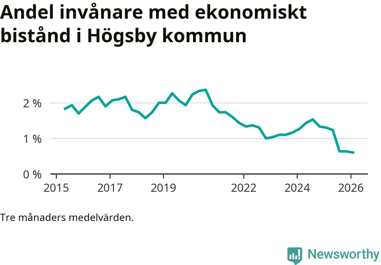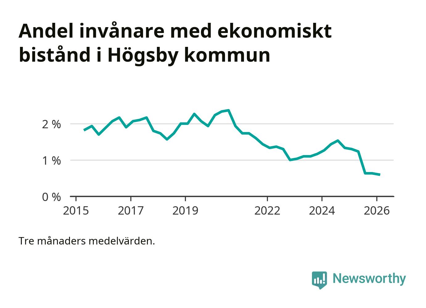 Andelen invånare med ekonomiskt bistånd i Högsby kommun
