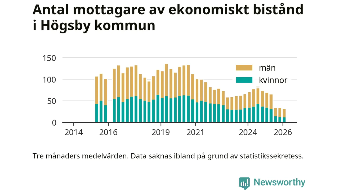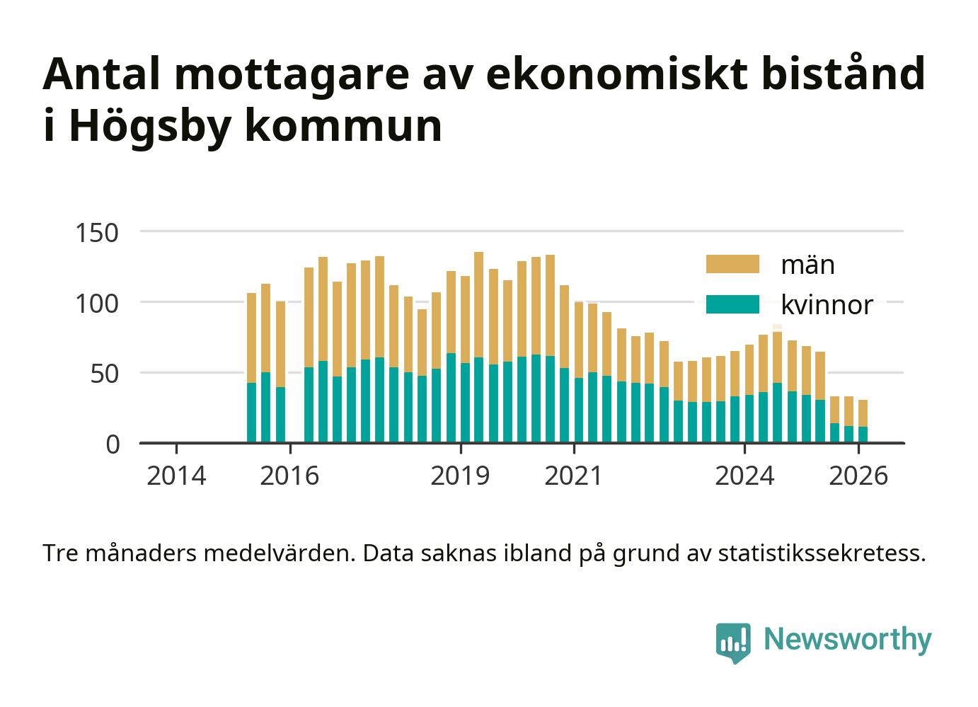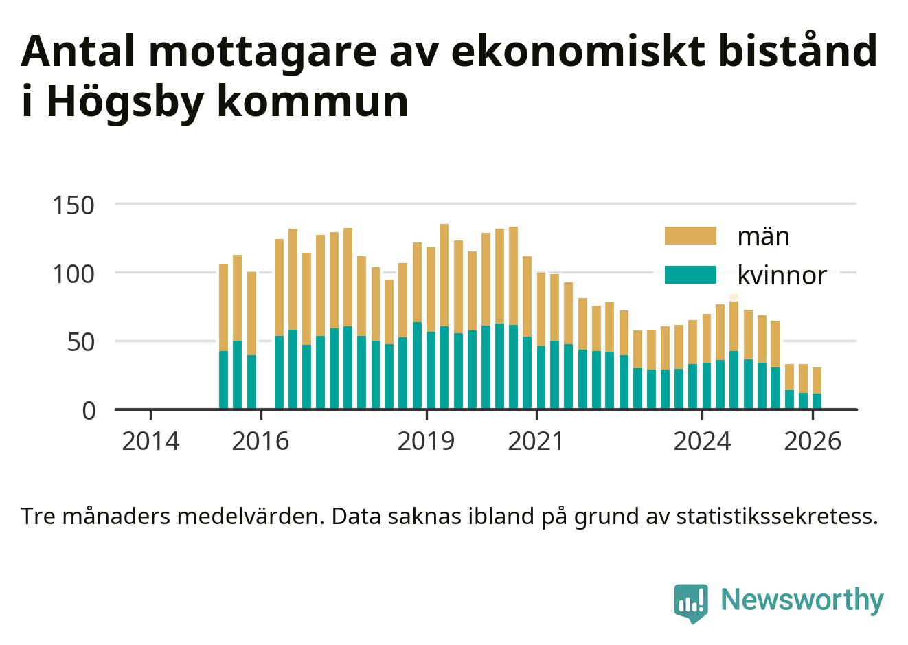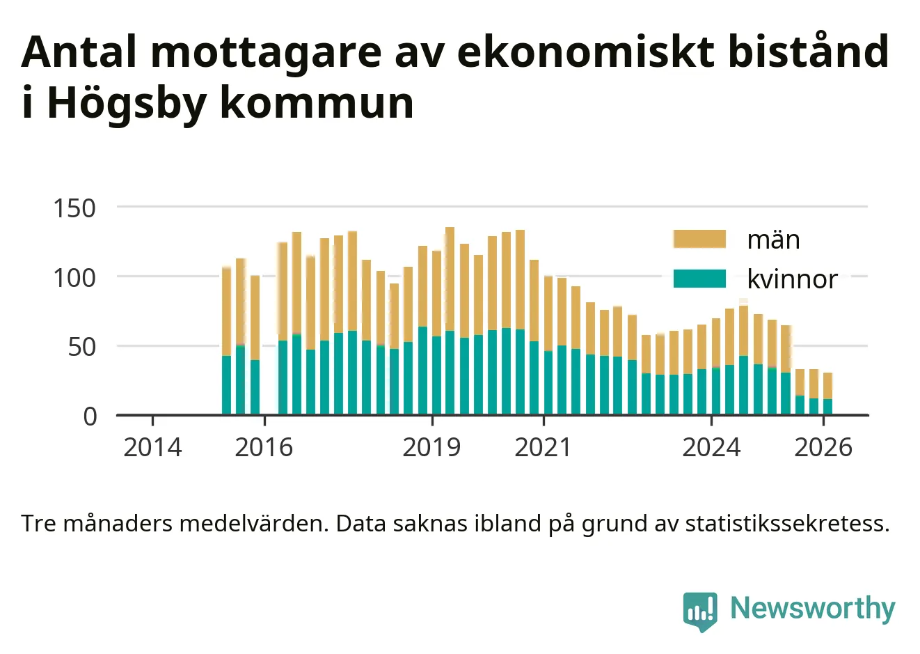 I genomsnitt 30 personer per månad fick ekonomiskt bistånd i Högsby kommun
