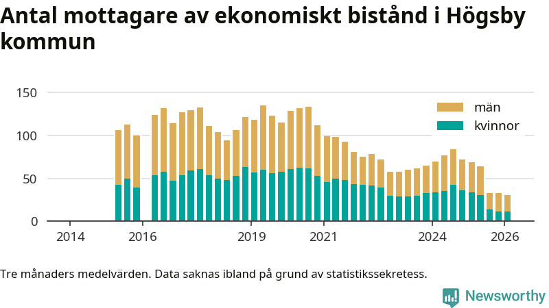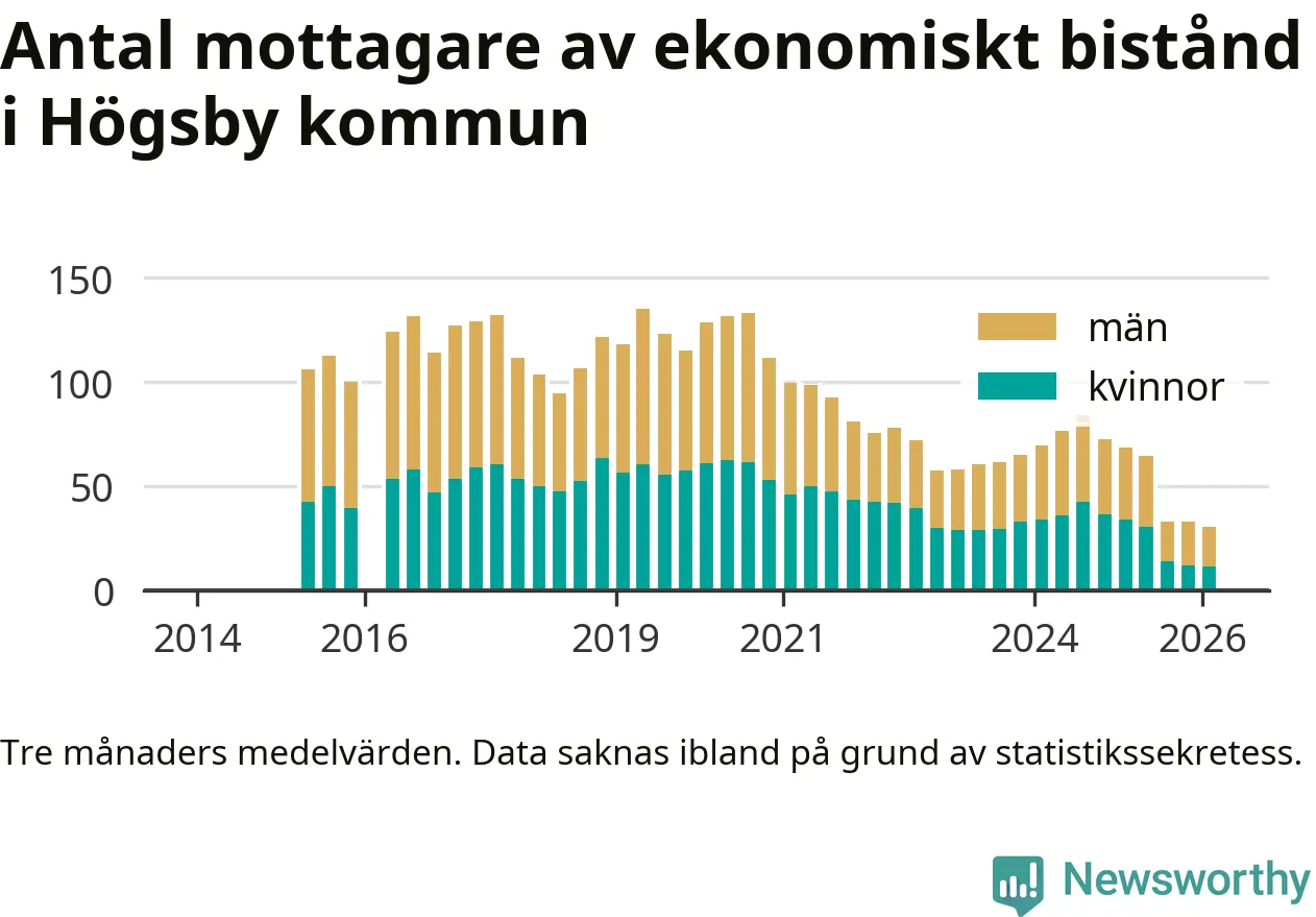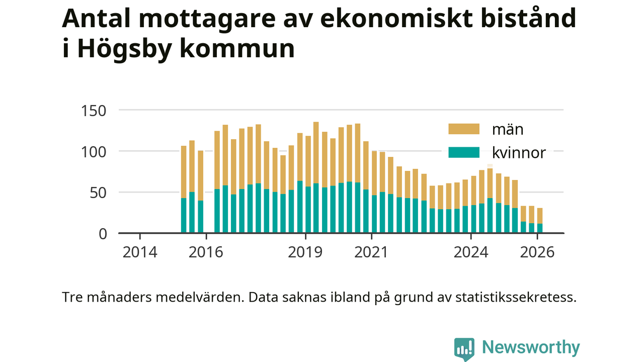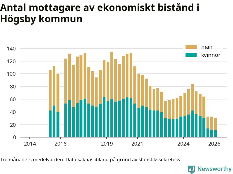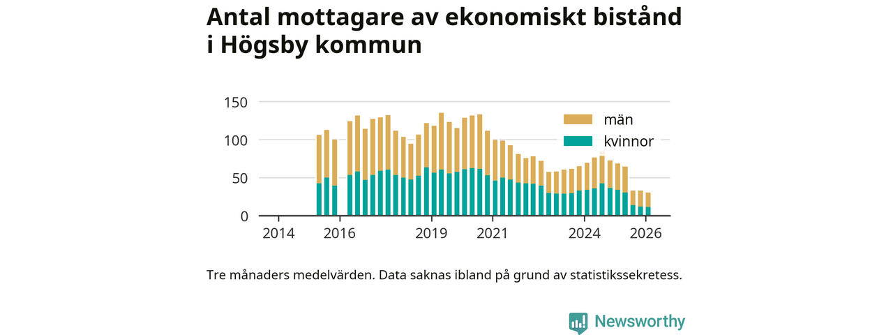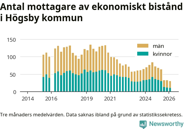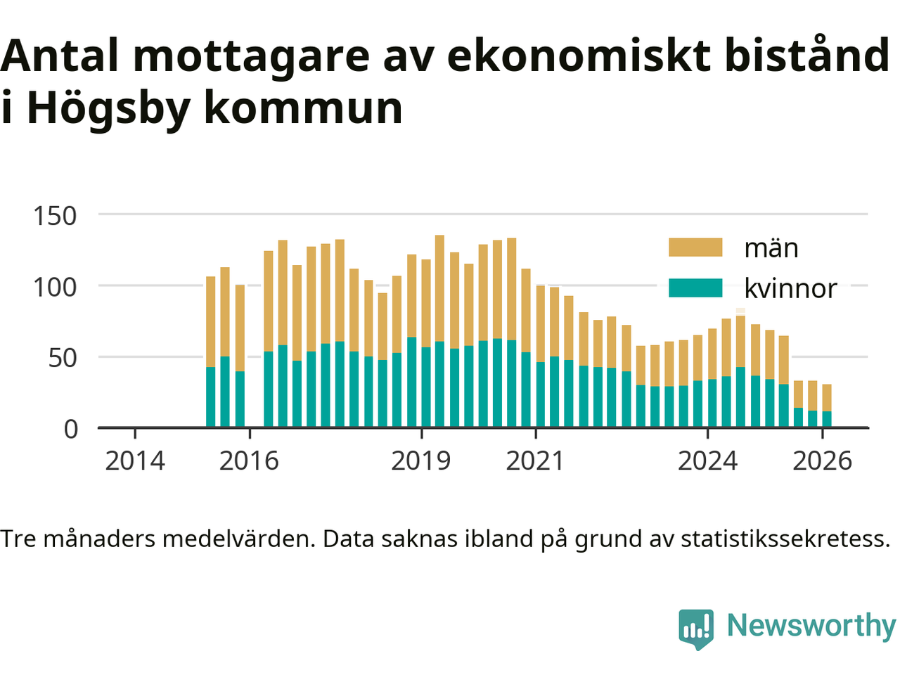 I genomsnitt 30 personer per månad fick ekonomiskt bistånd i Högsby kommun