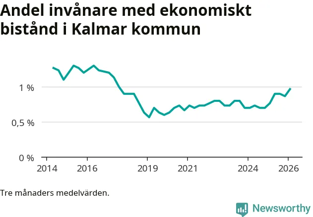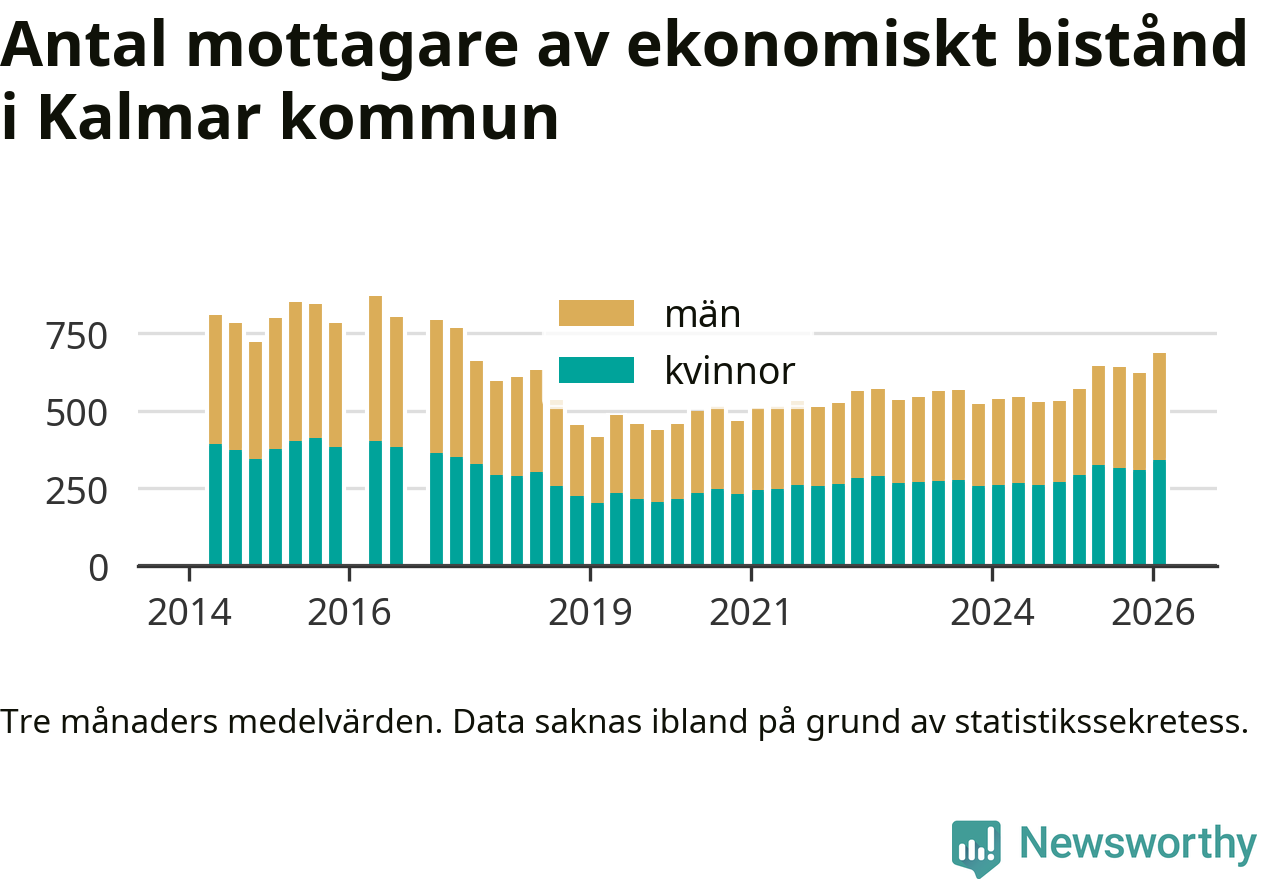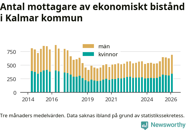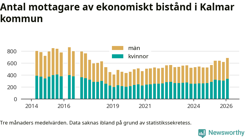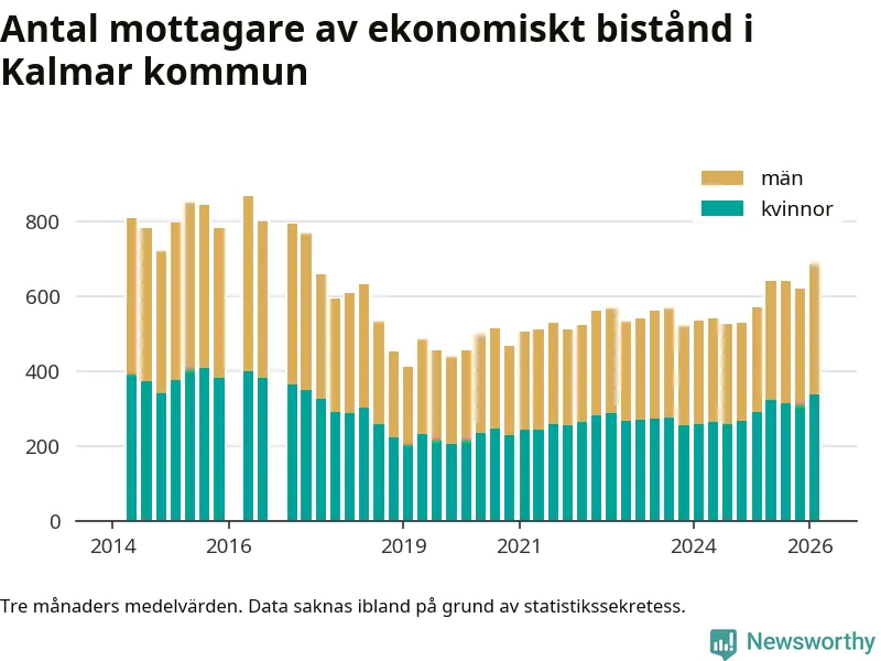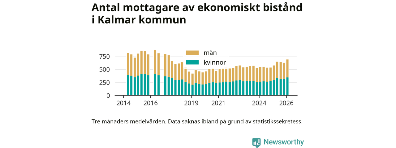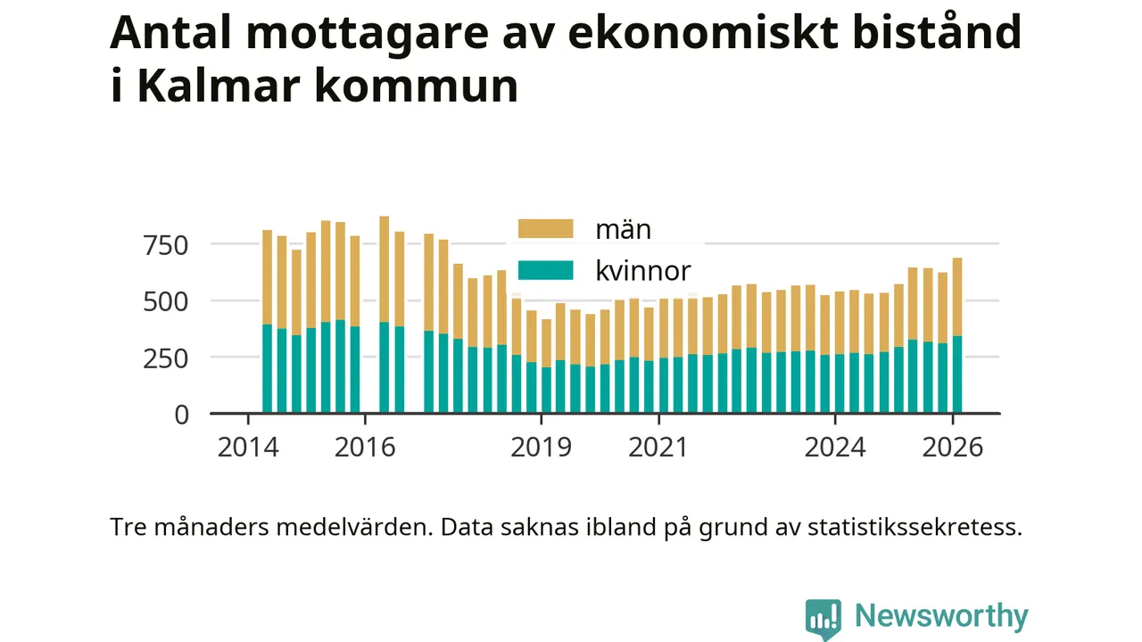 I genomsnitt 687 personer per månad fick ekonomiskt bistånd i Kalmar kommun