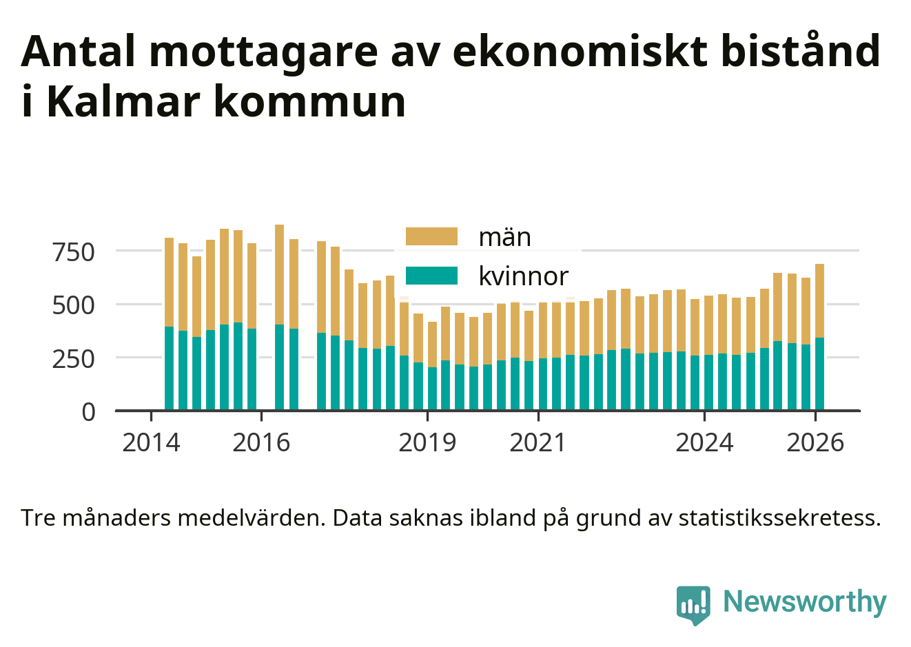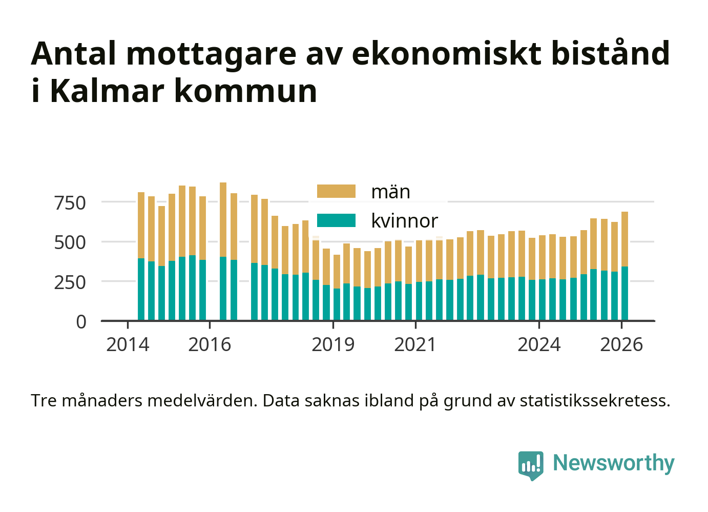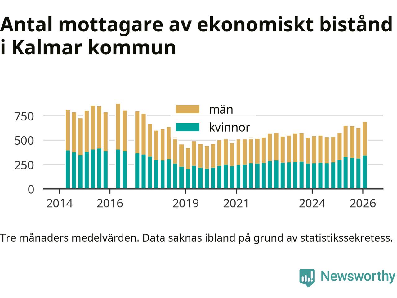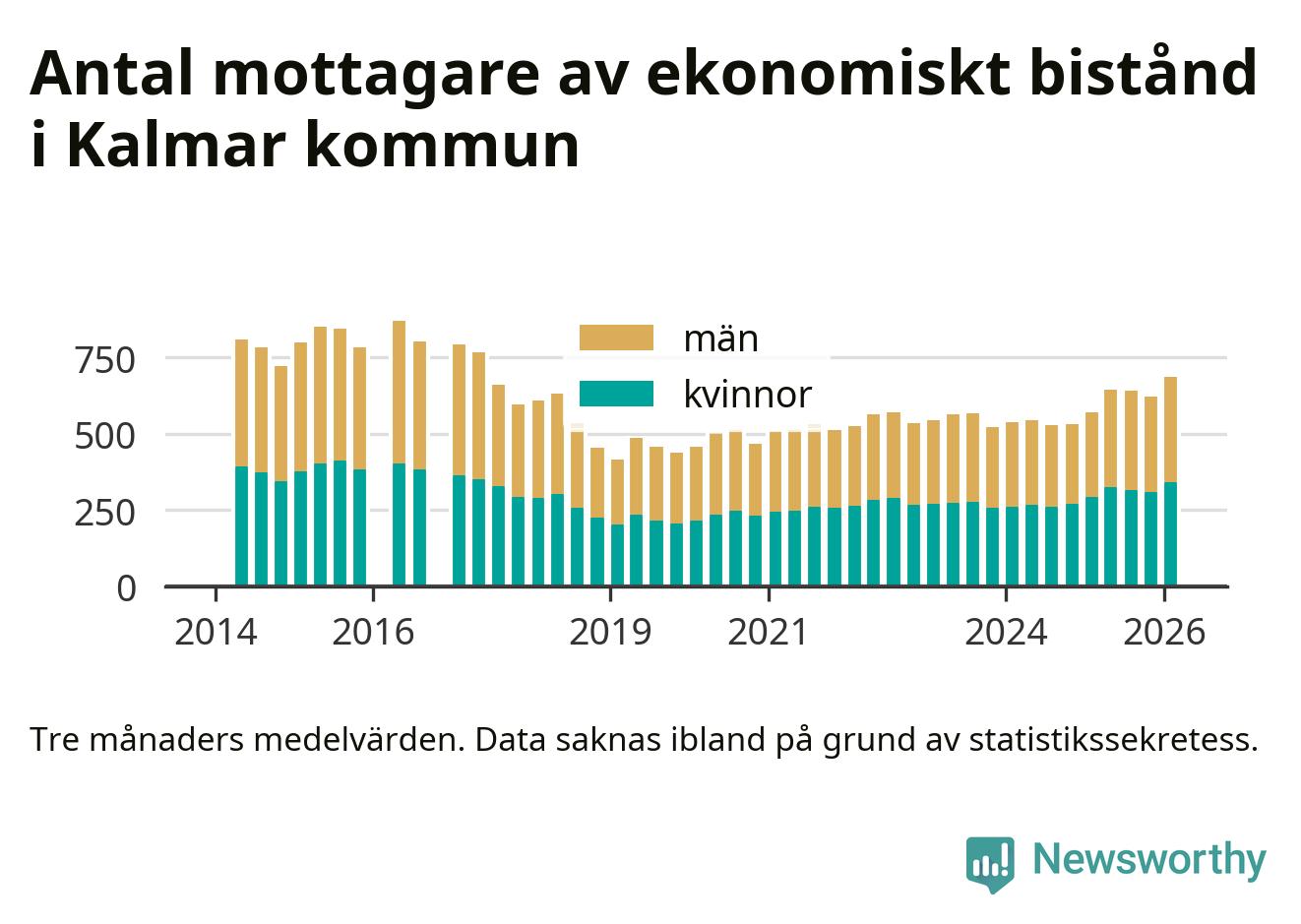 I genomsnitt 687 personer per månad fick ekonomiskt bistånd i Kalmar kommun