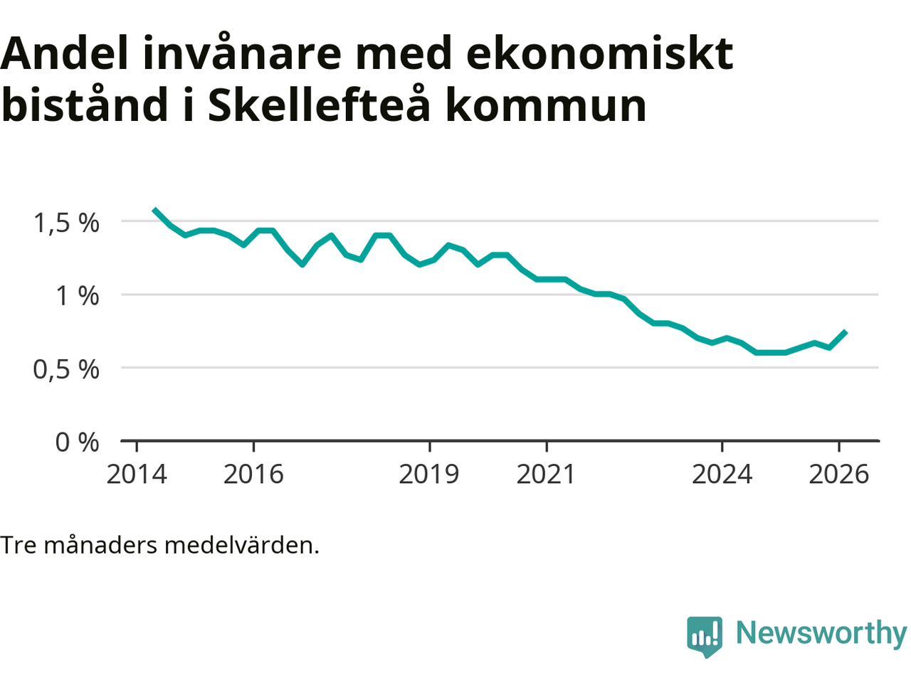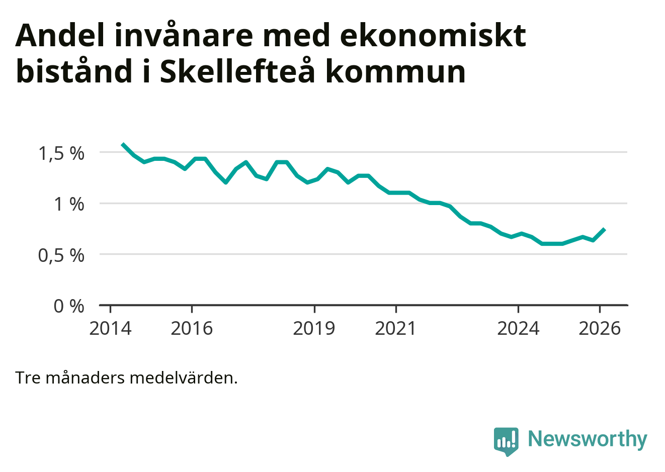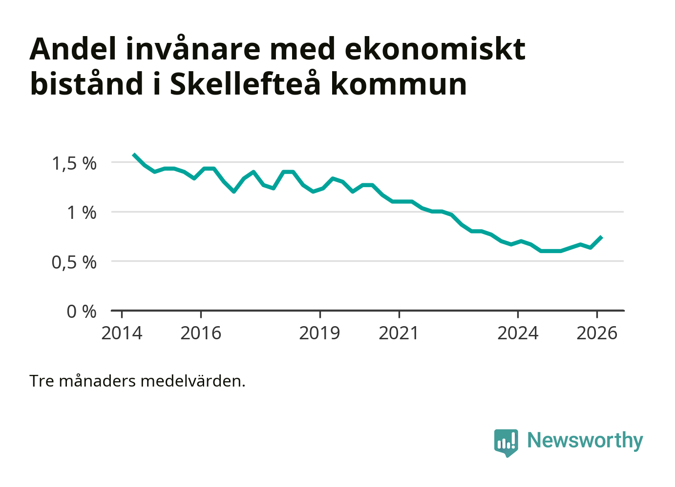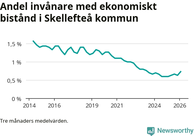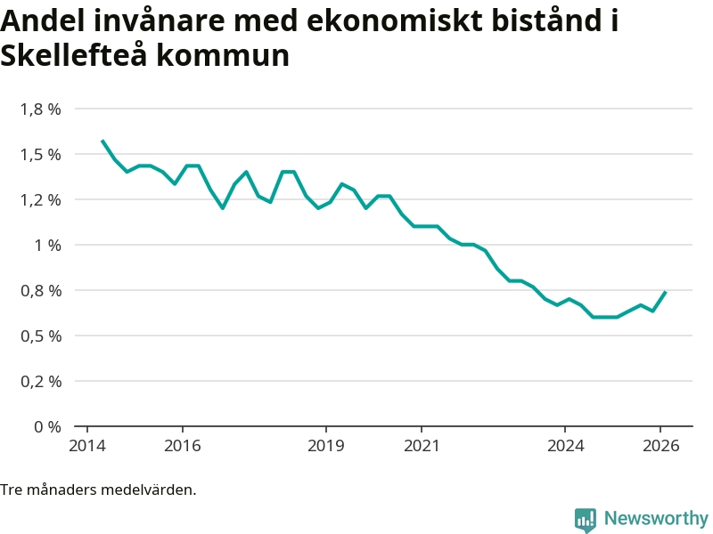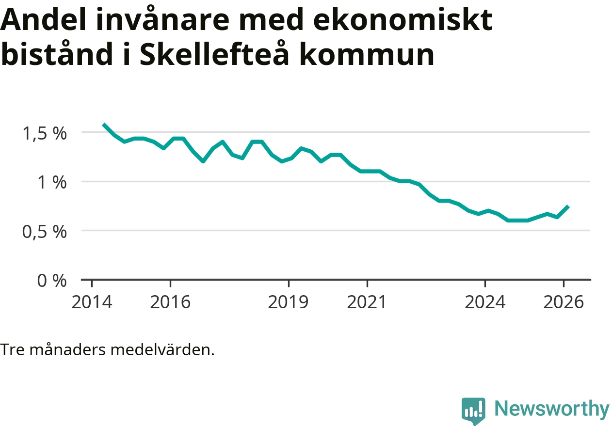 Andelen invånare med ekonomiskt bistånd i Skellefteå kommun
