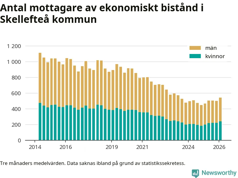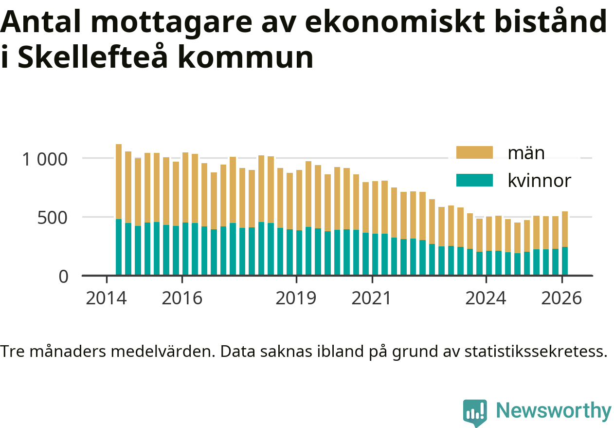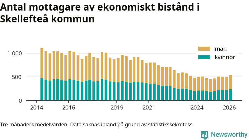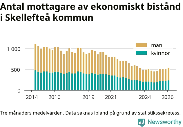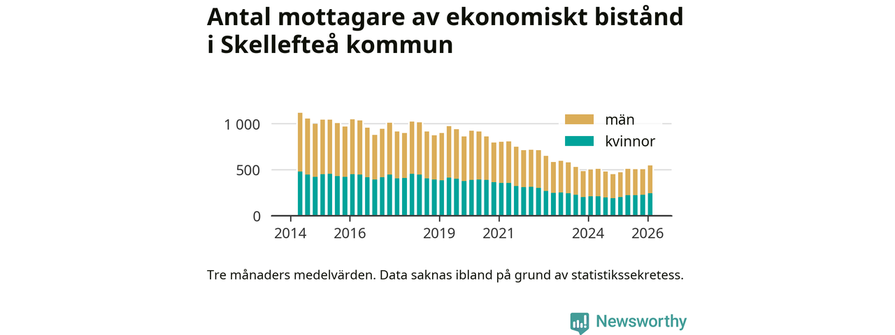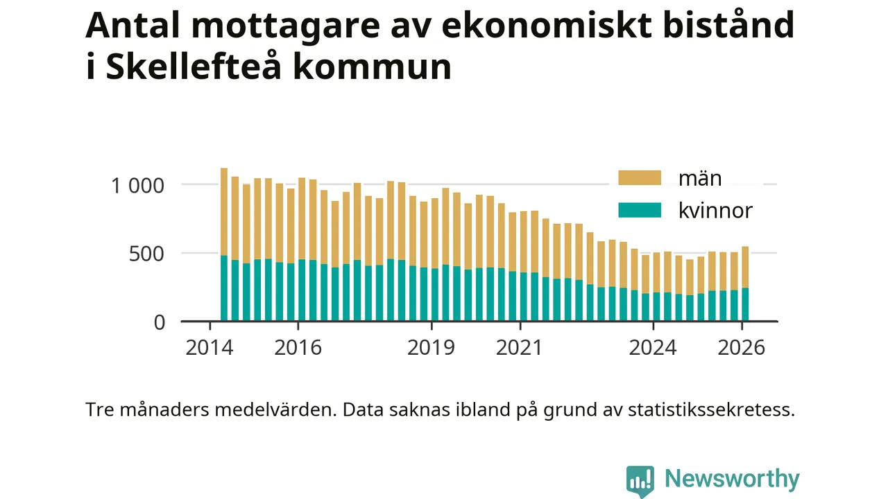 I genomsnitt 545 personer per månad fick ekonomiskt bistånd i Skellefteå kommun