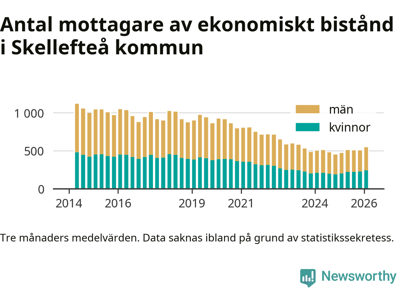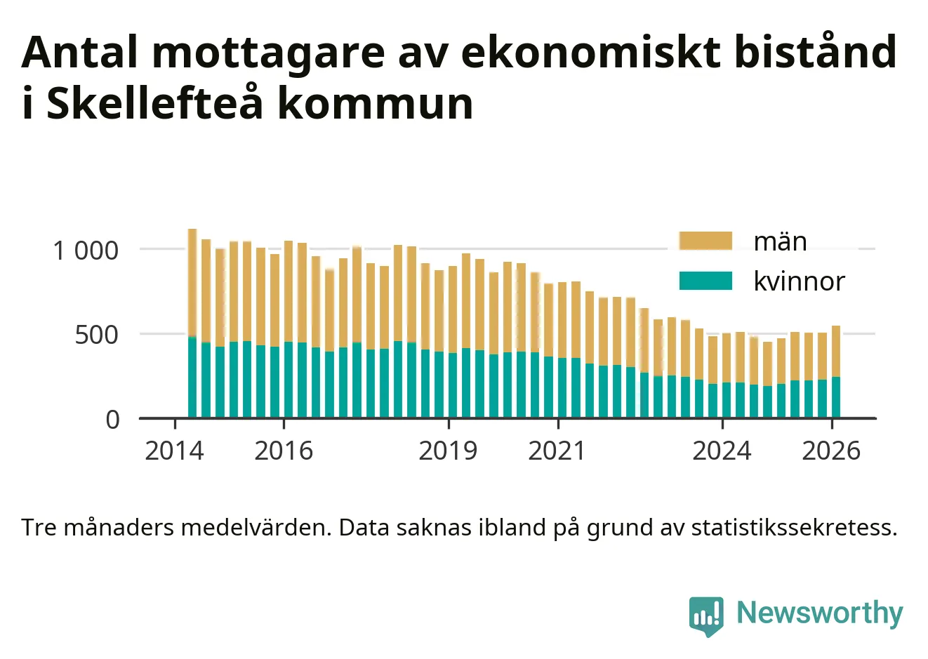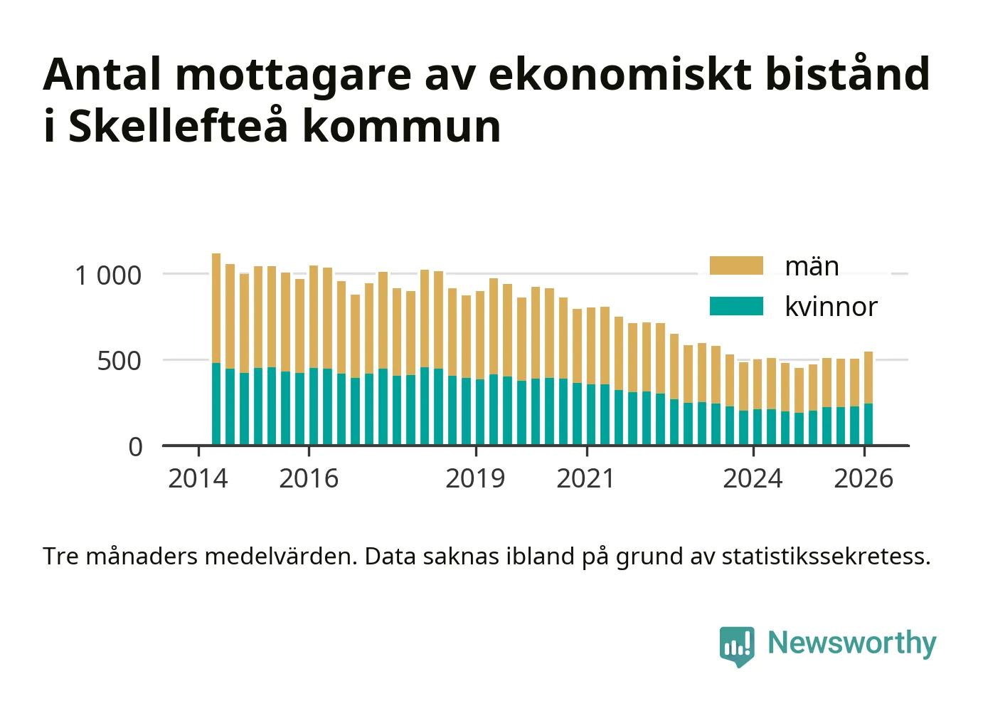 I genomsnitt 545 personer per månad fick ekonomiskt bistånd i Skellefteå kommun