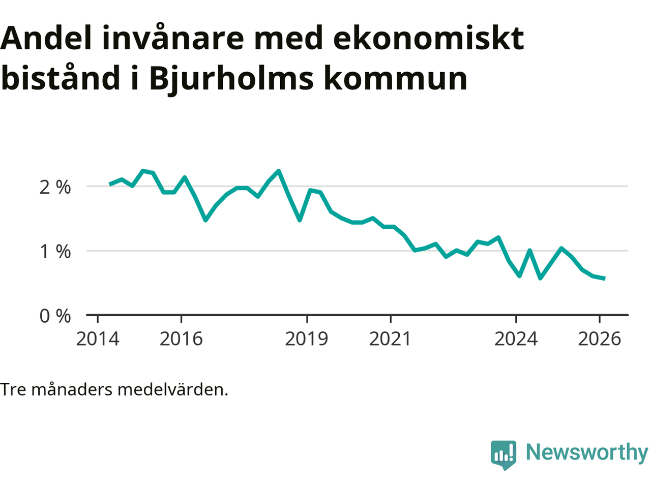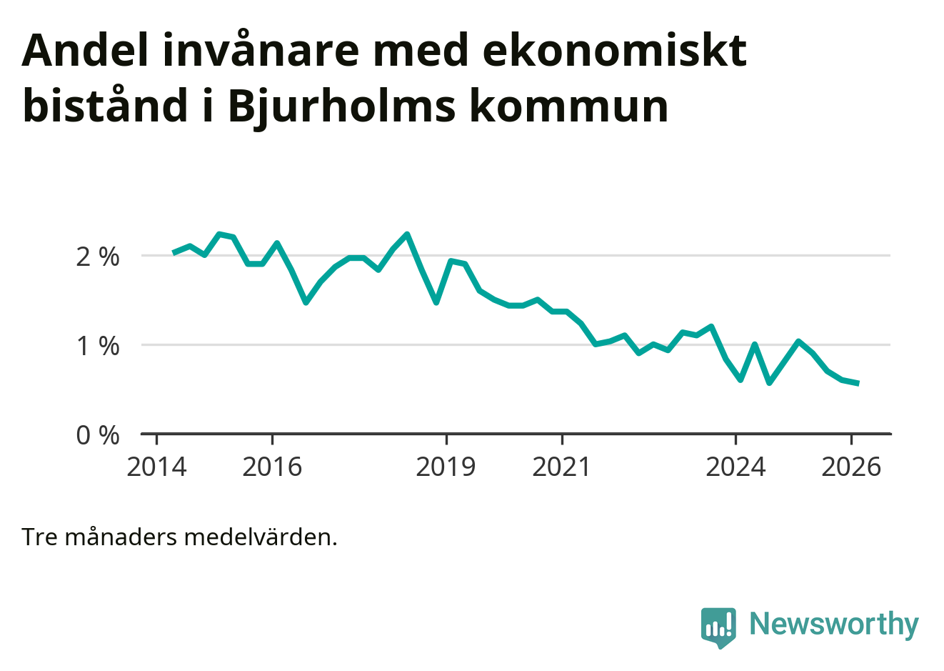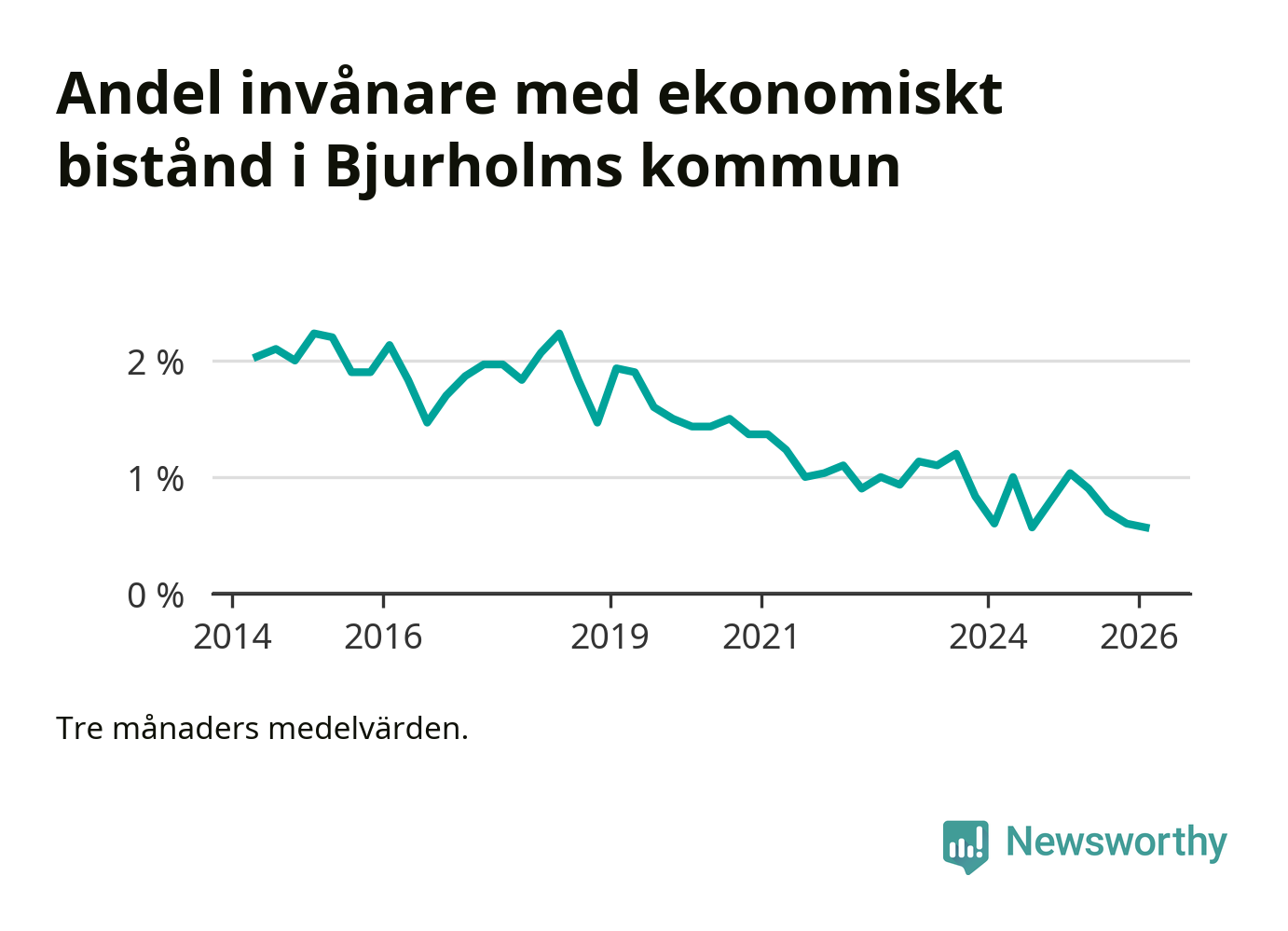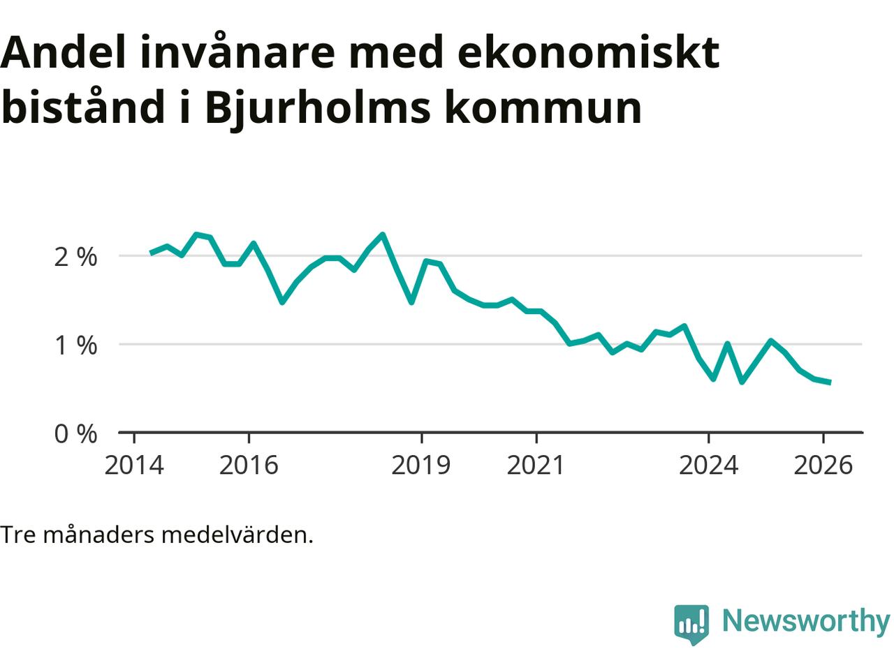 Vinterns 0,6 procent är bland de lägsta nivåerna i kommunen under det senaste decenniet. Högst var andelen under vintern 2015 (2,2 procent).