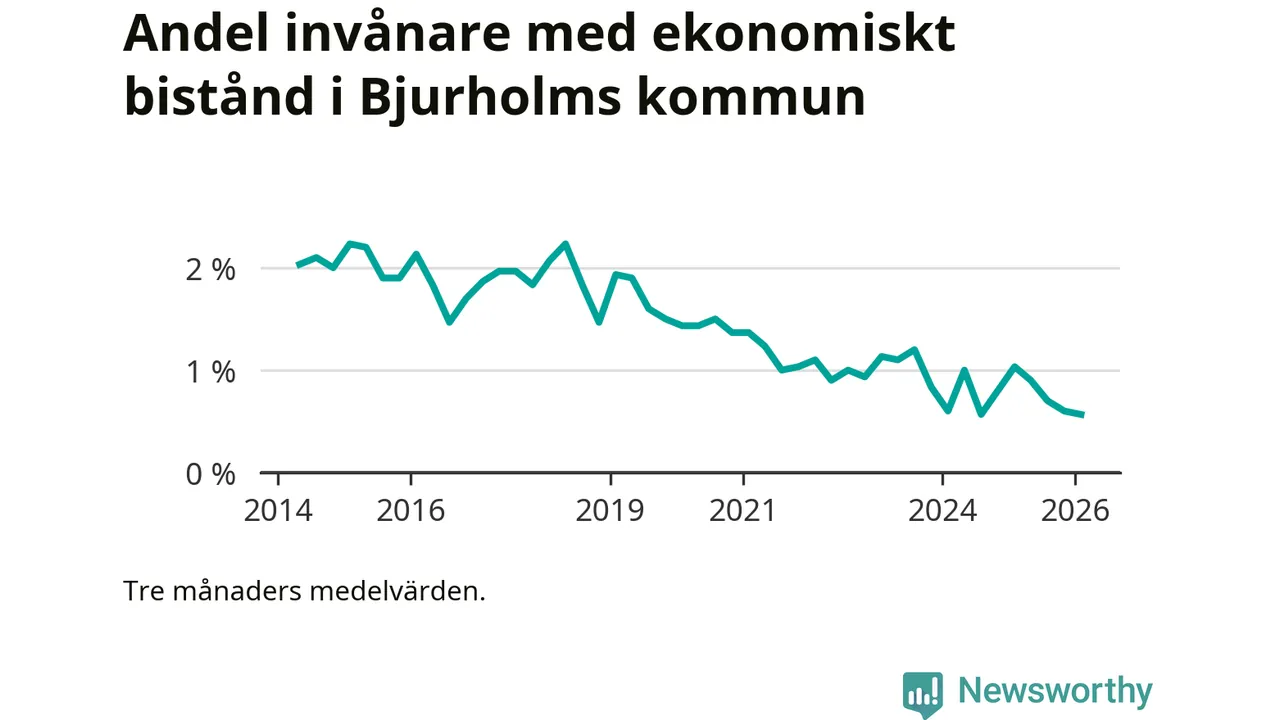 Andelen invånare med ekonomiskt bistånd i Bjurholms kommun var lägre under vintern jämfört med motsvarande period året innan. Det visar den senaste, preliminära statistiken från Socialstyrelsen.