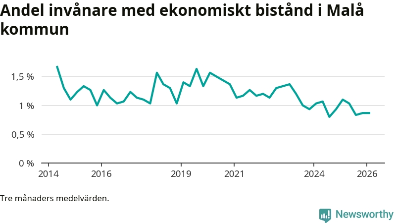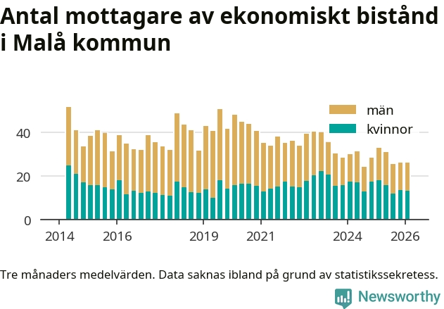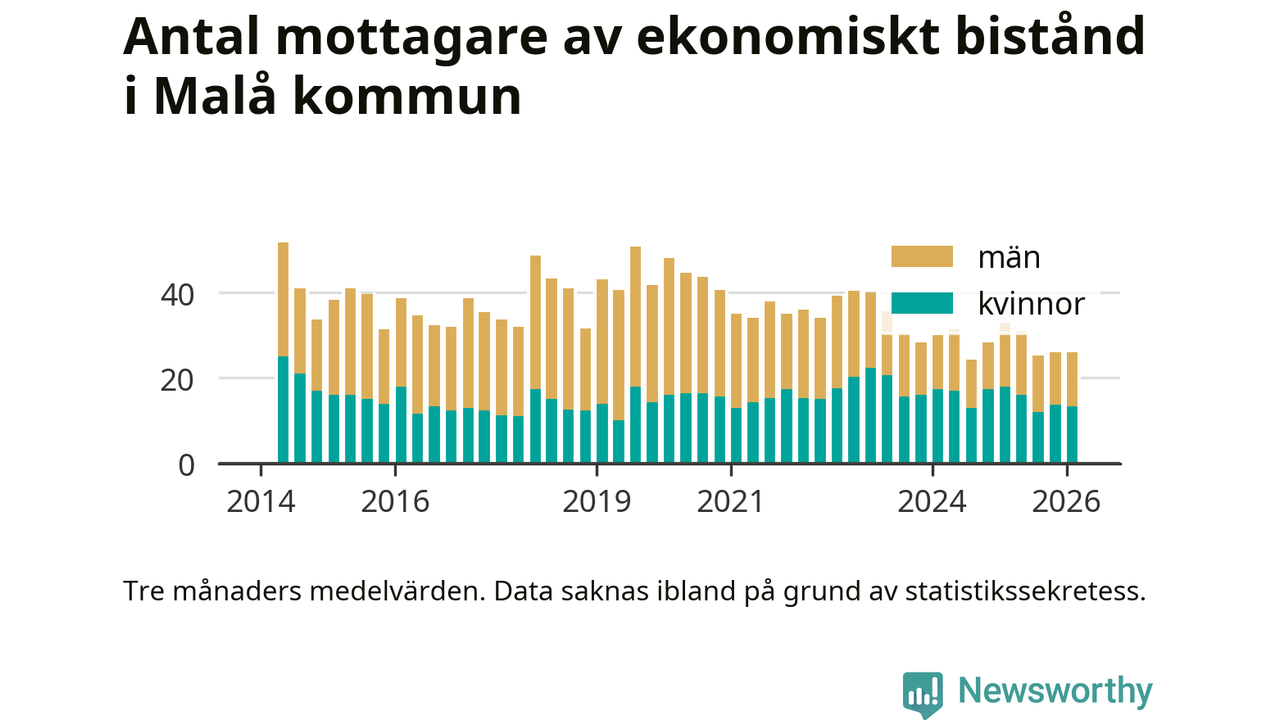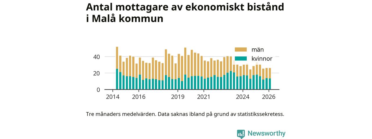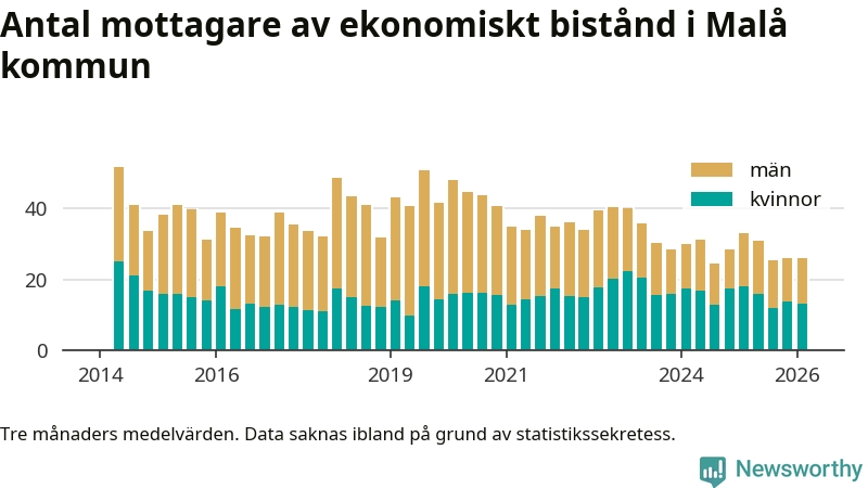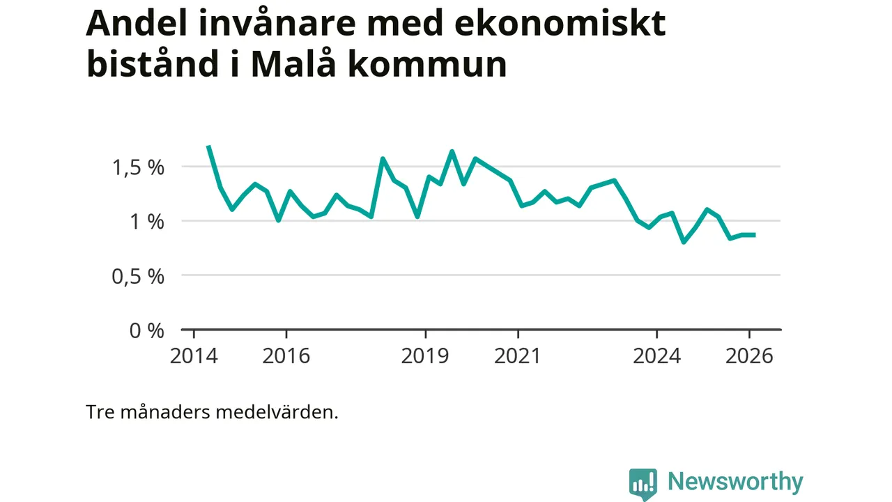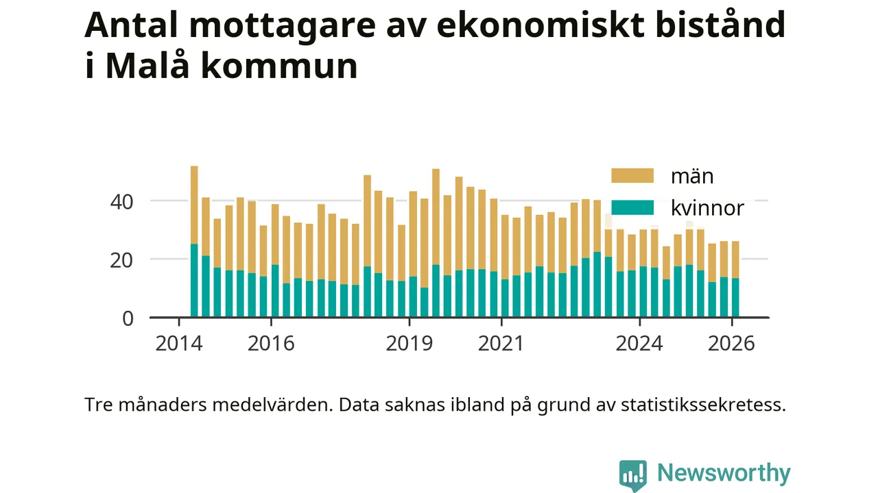 I genomsnitt 26 personer per månad fick ekonomiskt bistånd i Malå kommun