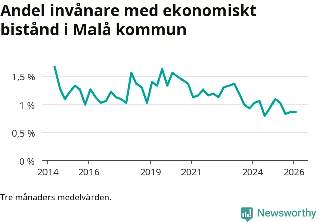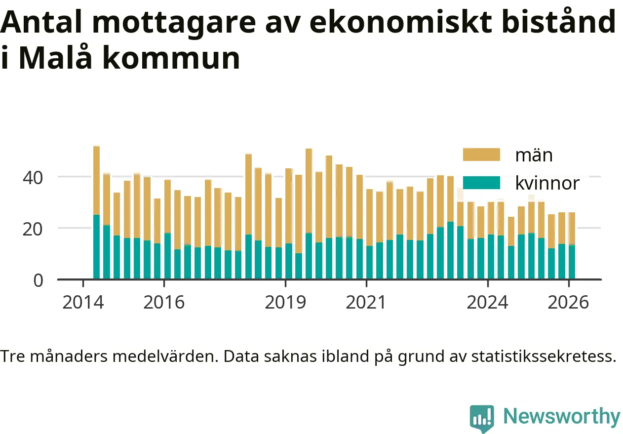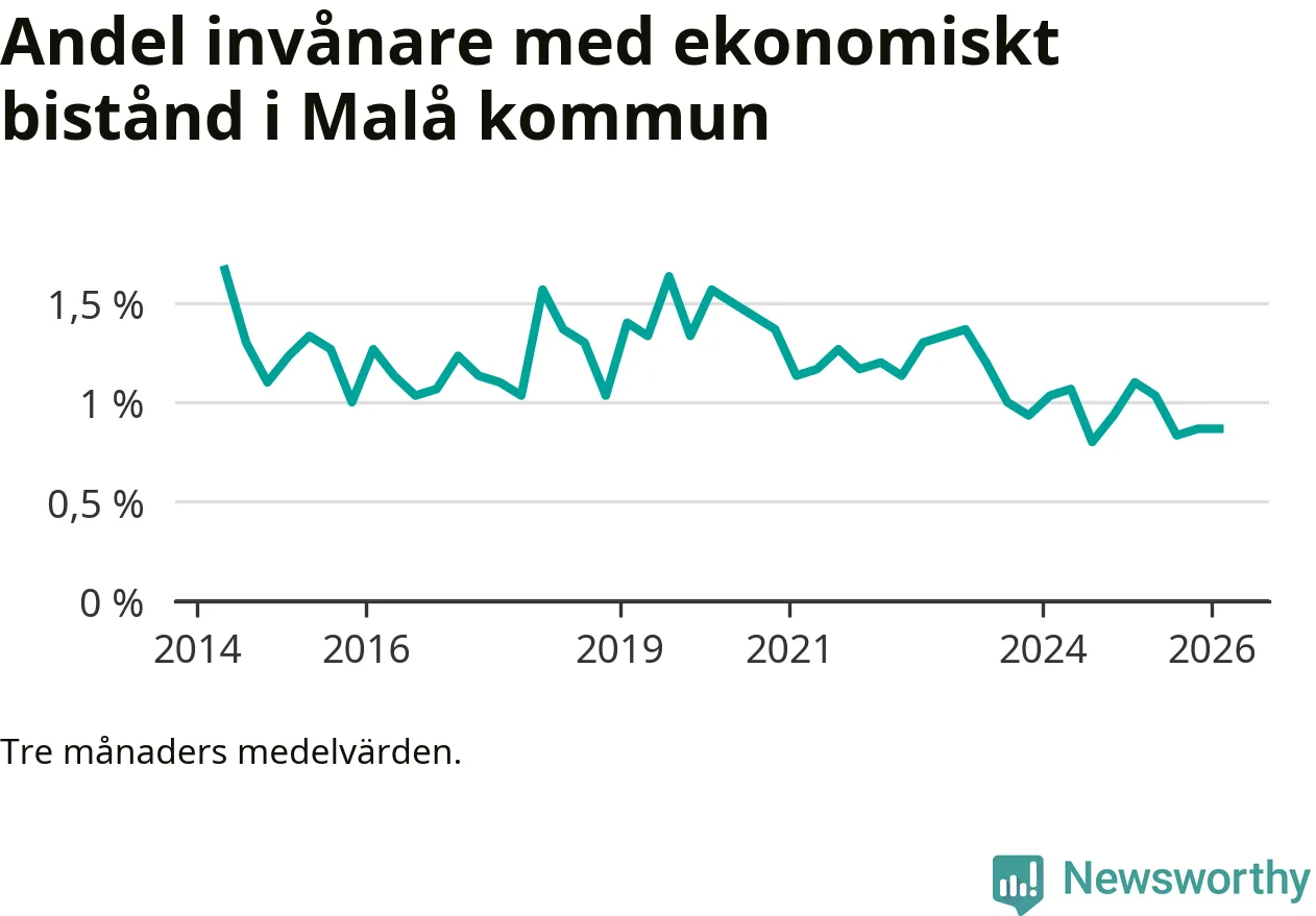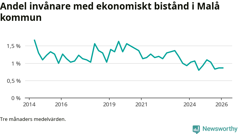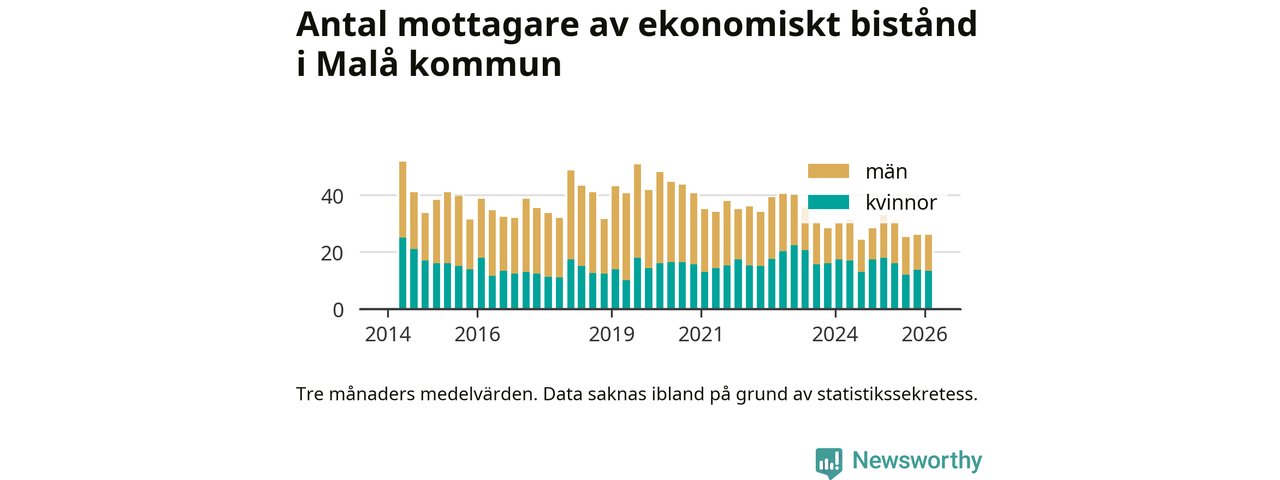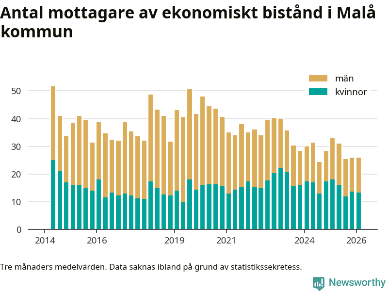 I genomsnitt 26 personer per månad fick ekonomiskt bistånd i Malå kommun
