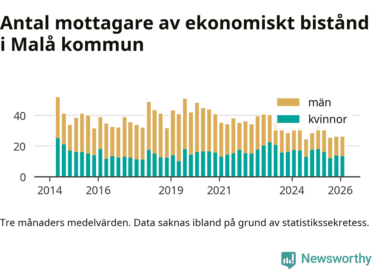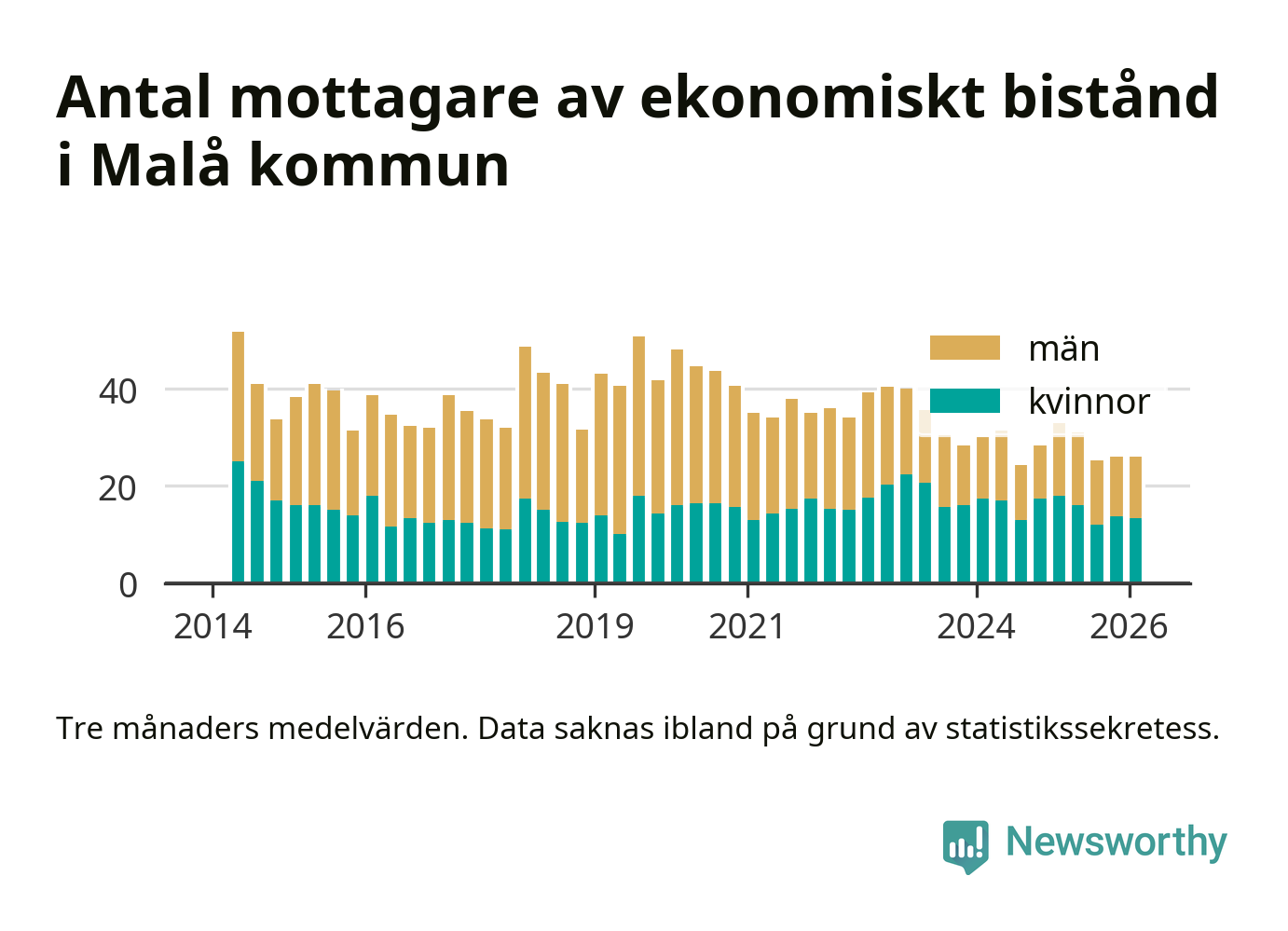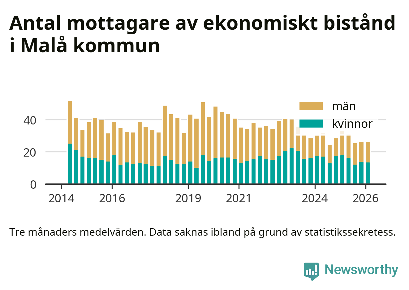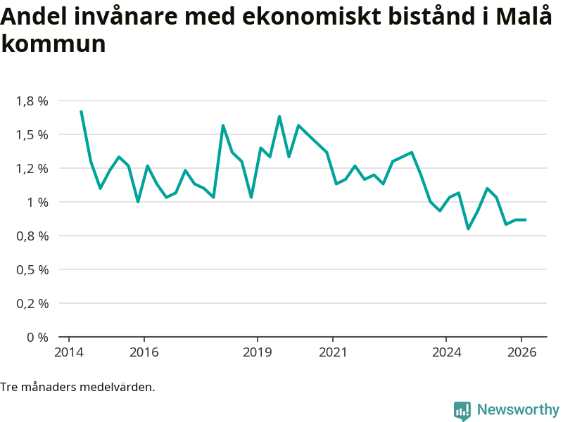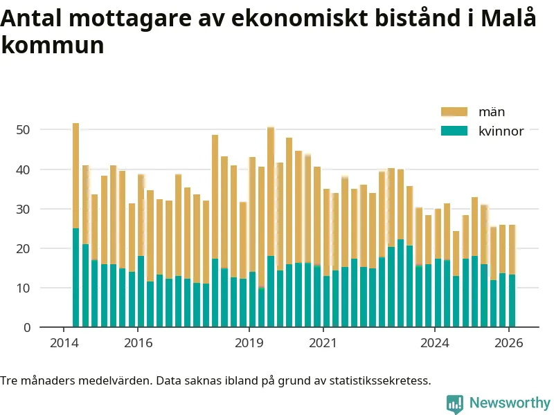 I genomsnitt 26 personer per månad fick ekonomiskt bistånd i Malå kommun