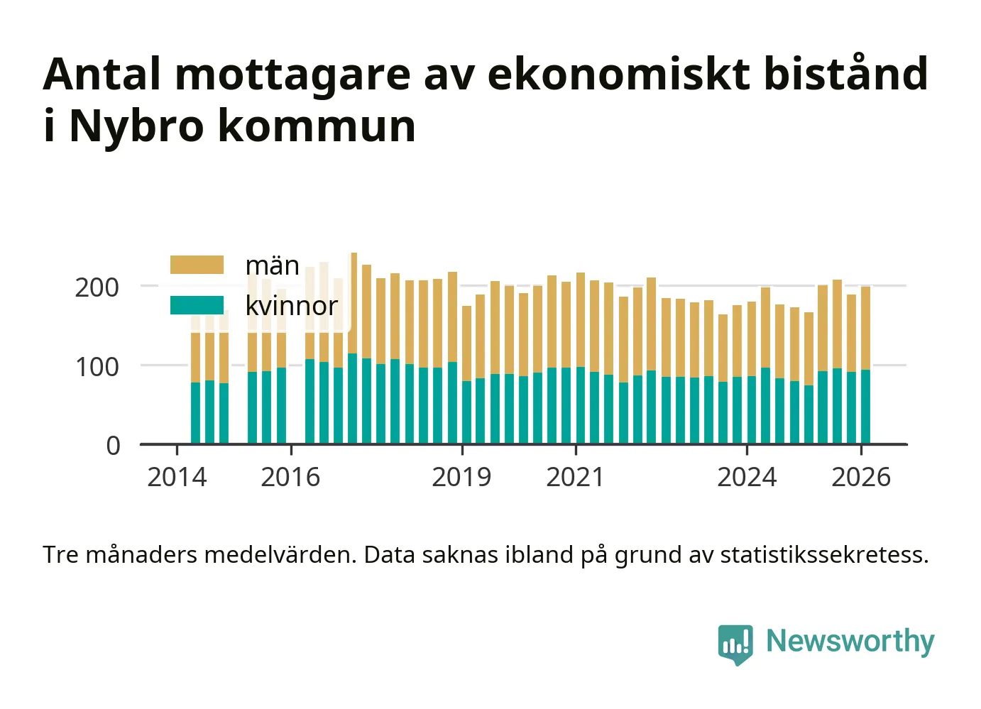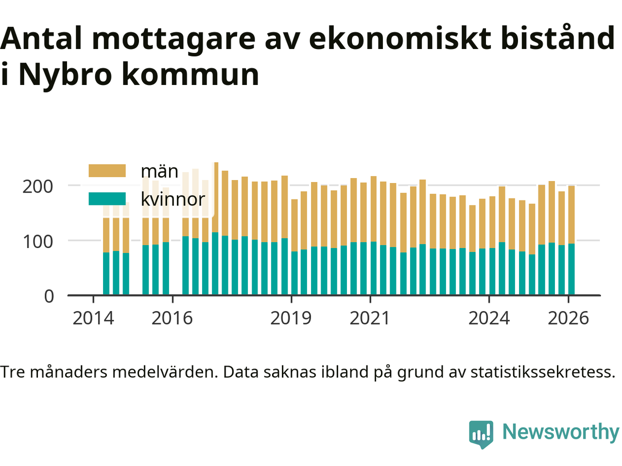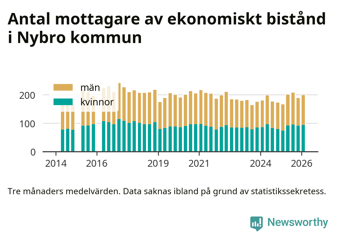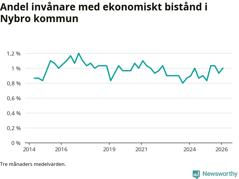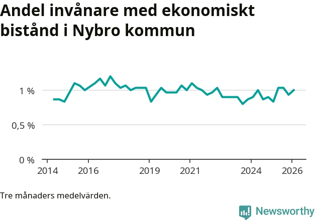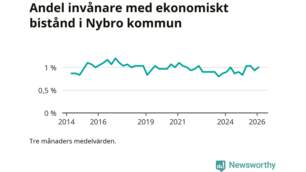 I genomsnitt 199 personer per månad fick ekonomiskt bistånd i Nybro kommun
