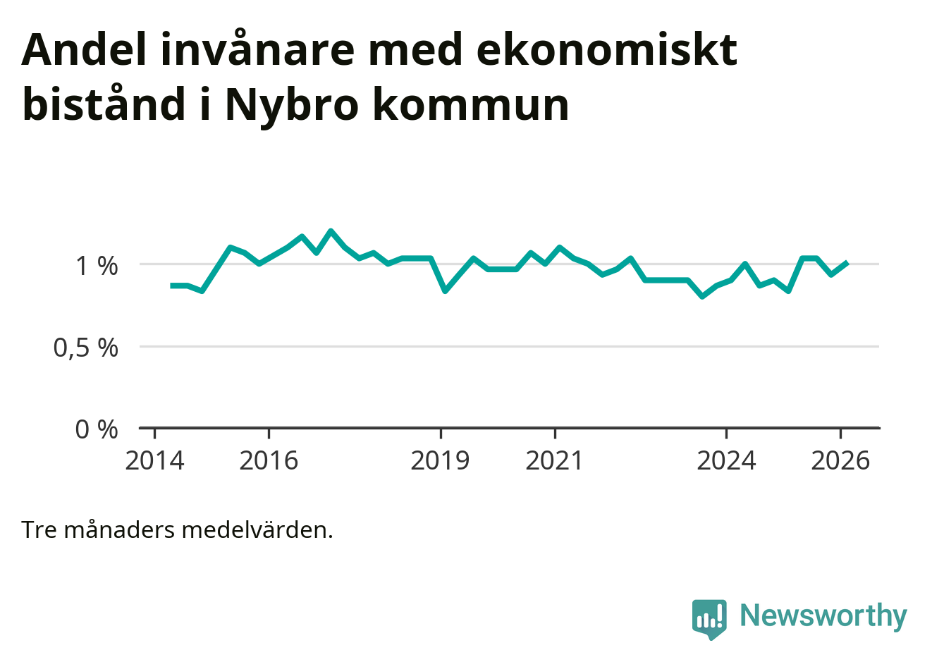 Andelen invånare med ekonomiskt bistånd i Nybro kommun