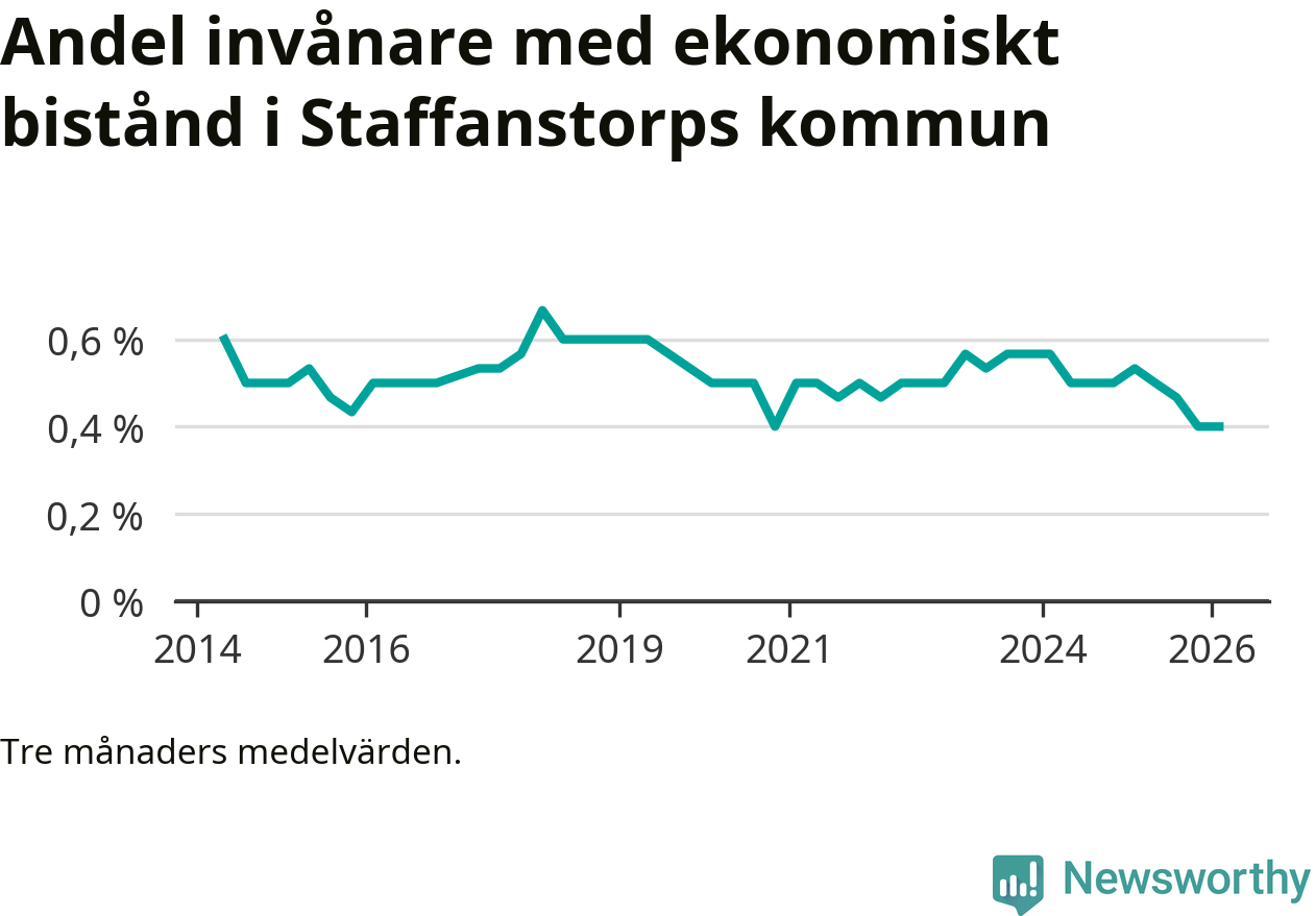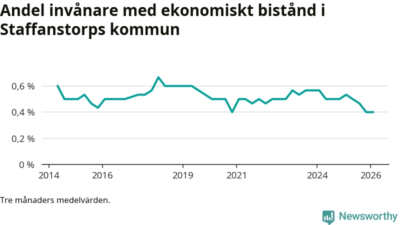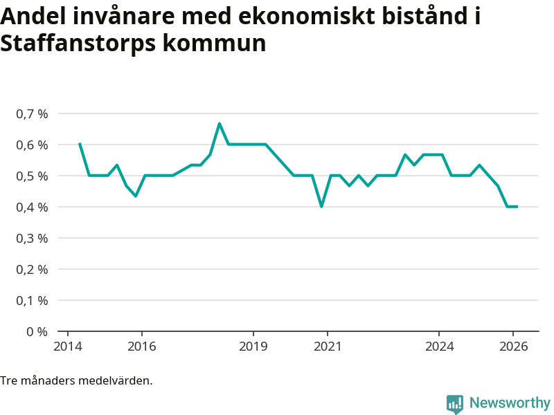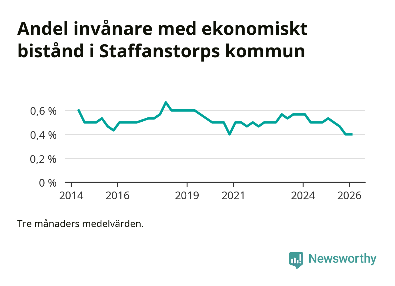 Vinterns 0,4 procent är bland de lägsta nivåerna i kommunen under det senaste decenniet. Högst var andelen under vintern 2018 (0,7 procent).