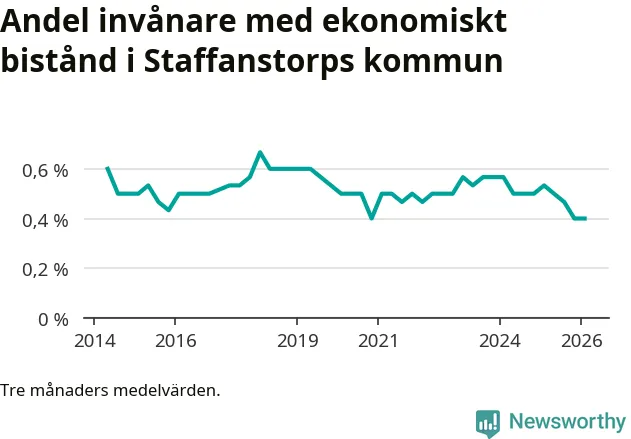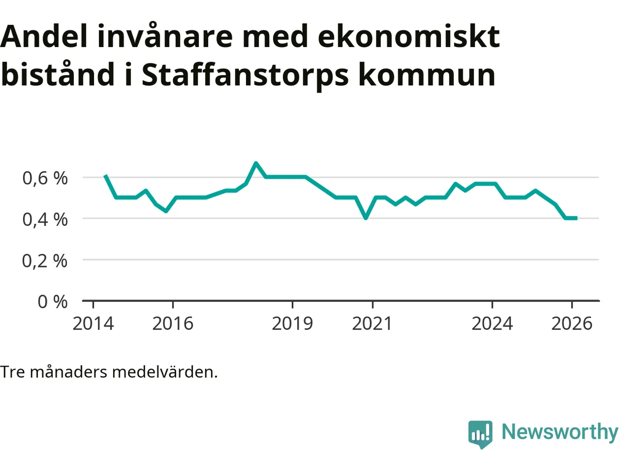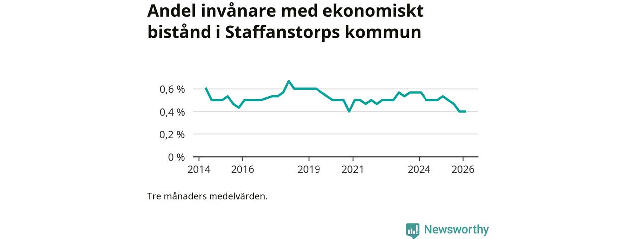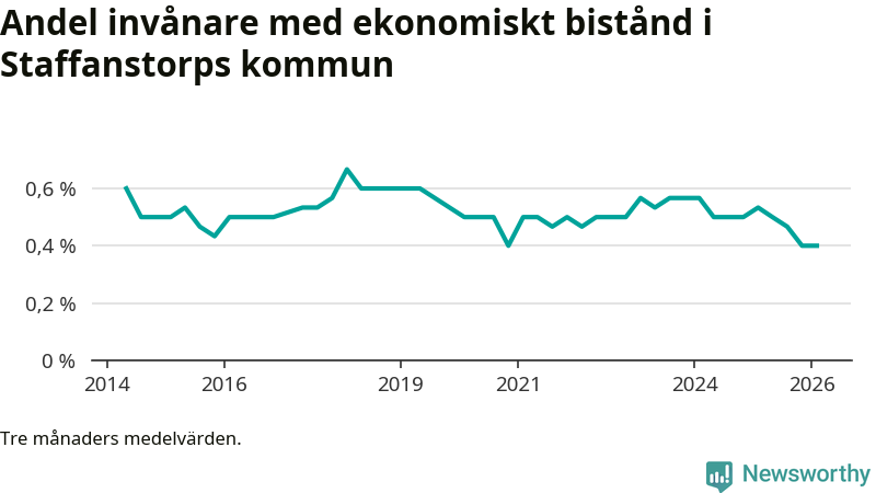 Andelen invånare med ekonomiskt bistånd i Staffanstorps kommun var lägre under vintern jämfört med motsvarande period året innan. Det visar den senaste, preliminära statistiken från Socialstyrelsen.