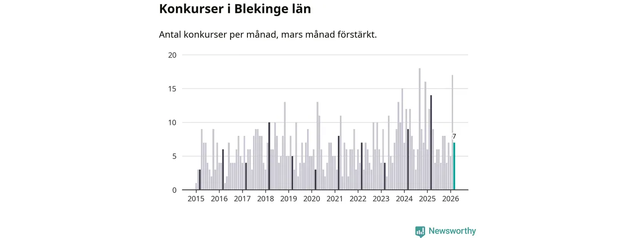 Konkurser per kommun i Blekinge län under mars 2026