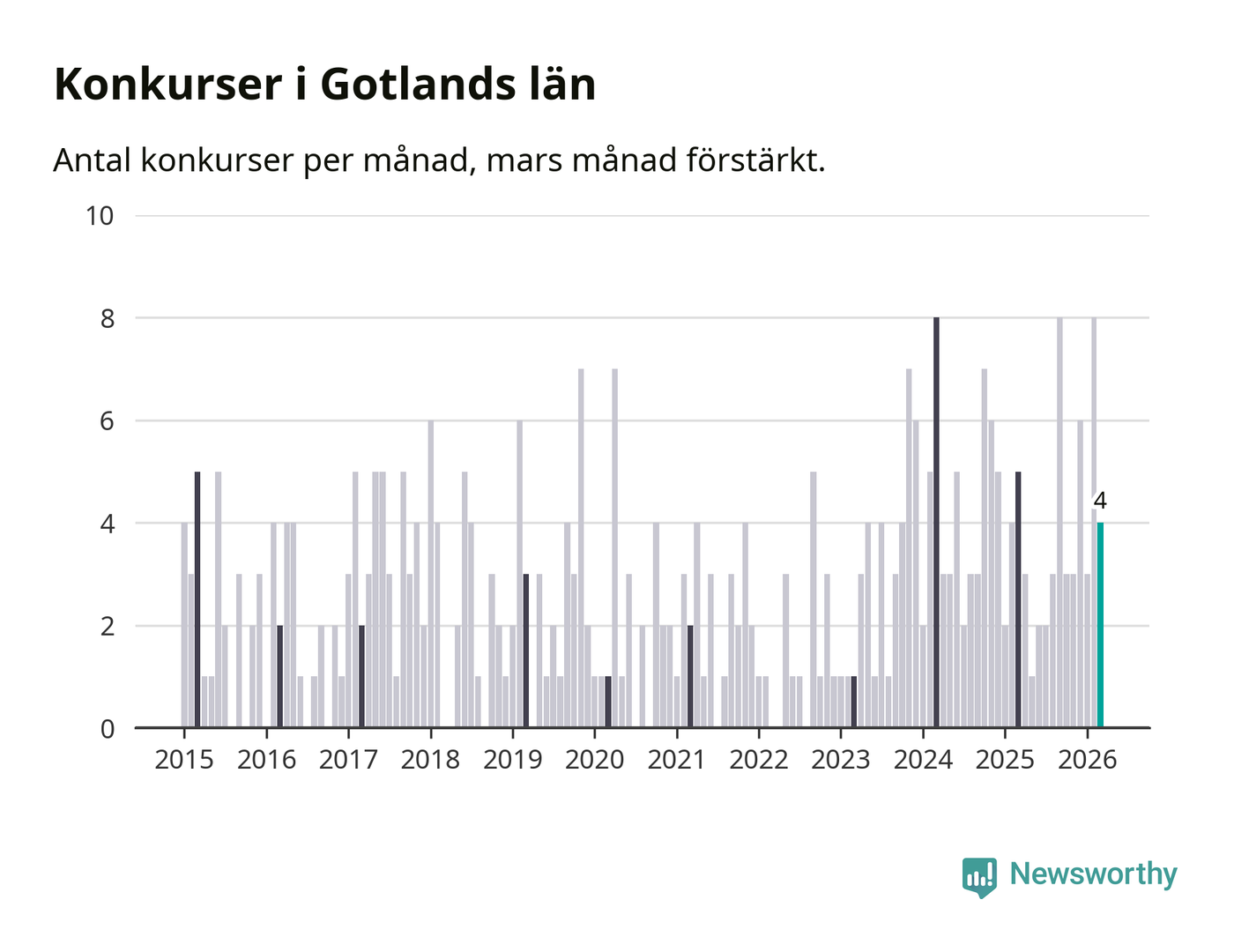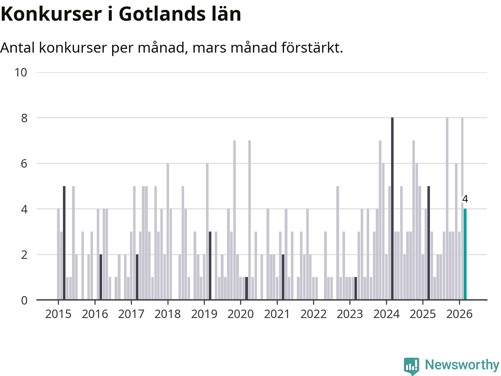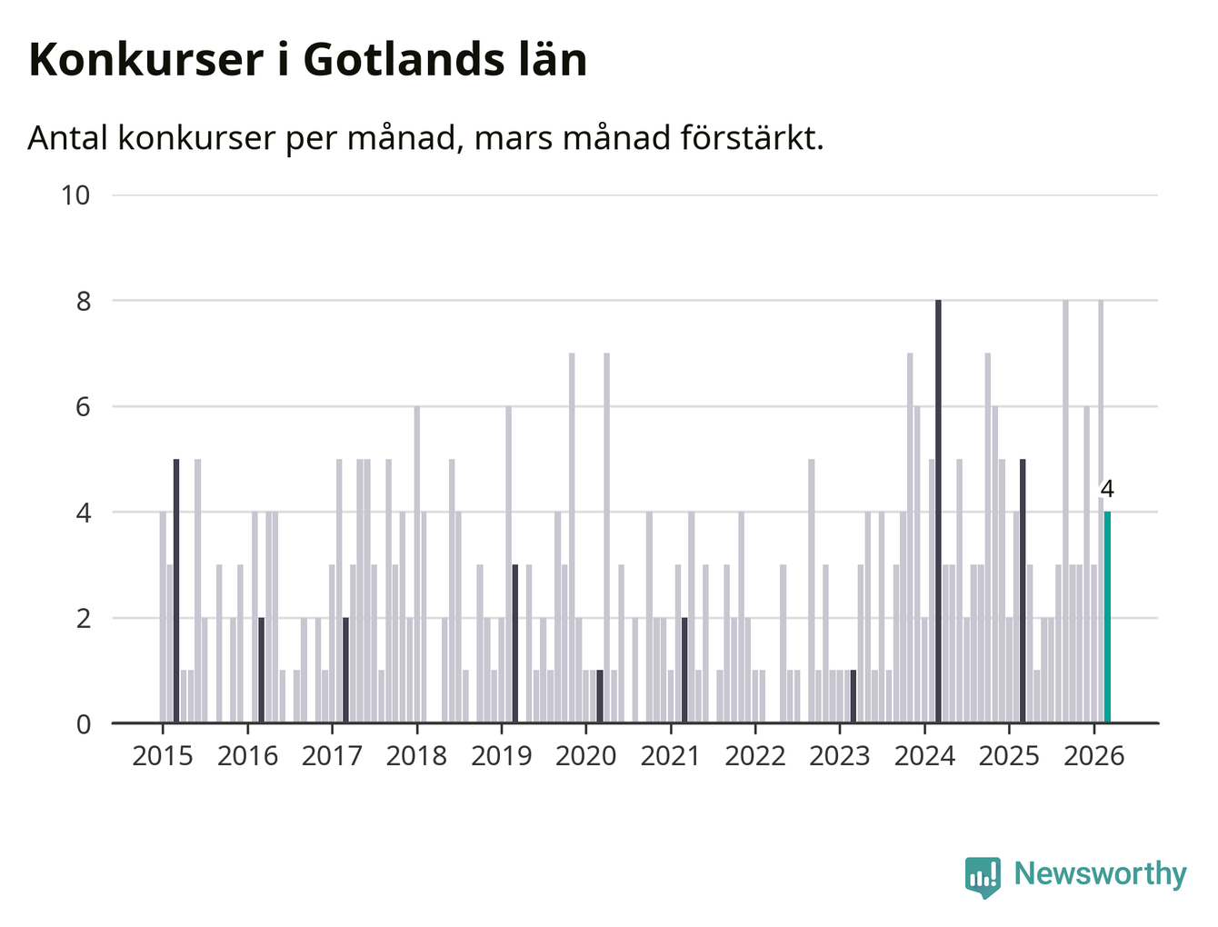 Graf: Antal konkurser per månad i Gotlands län