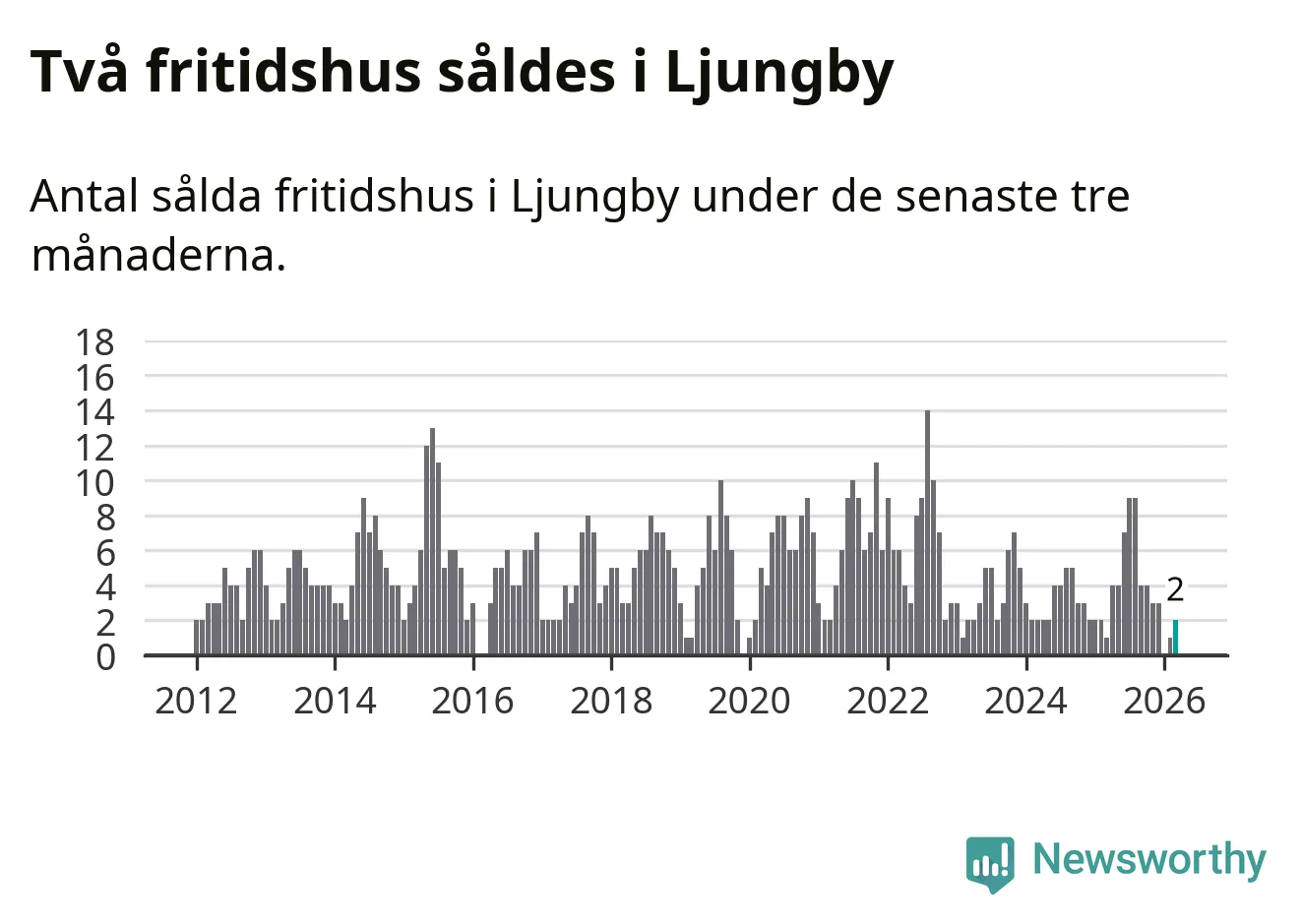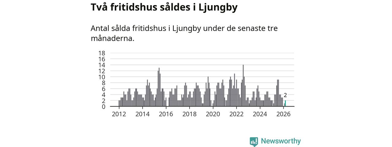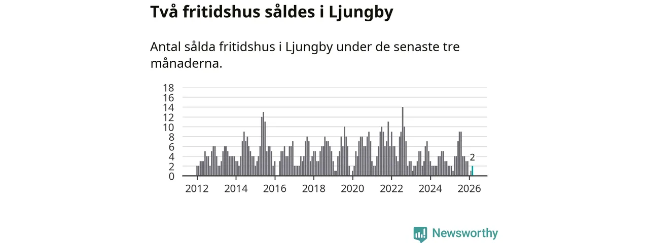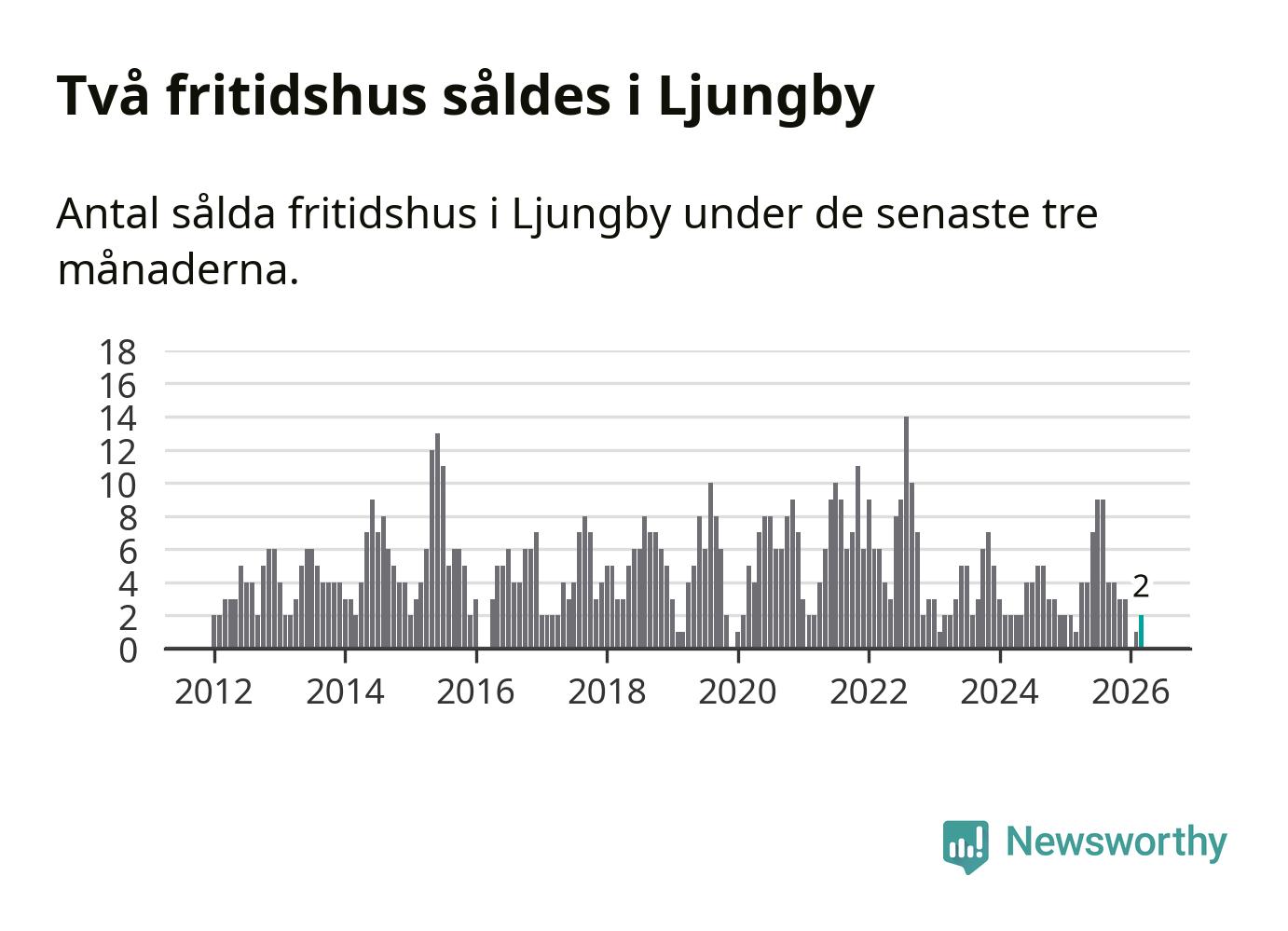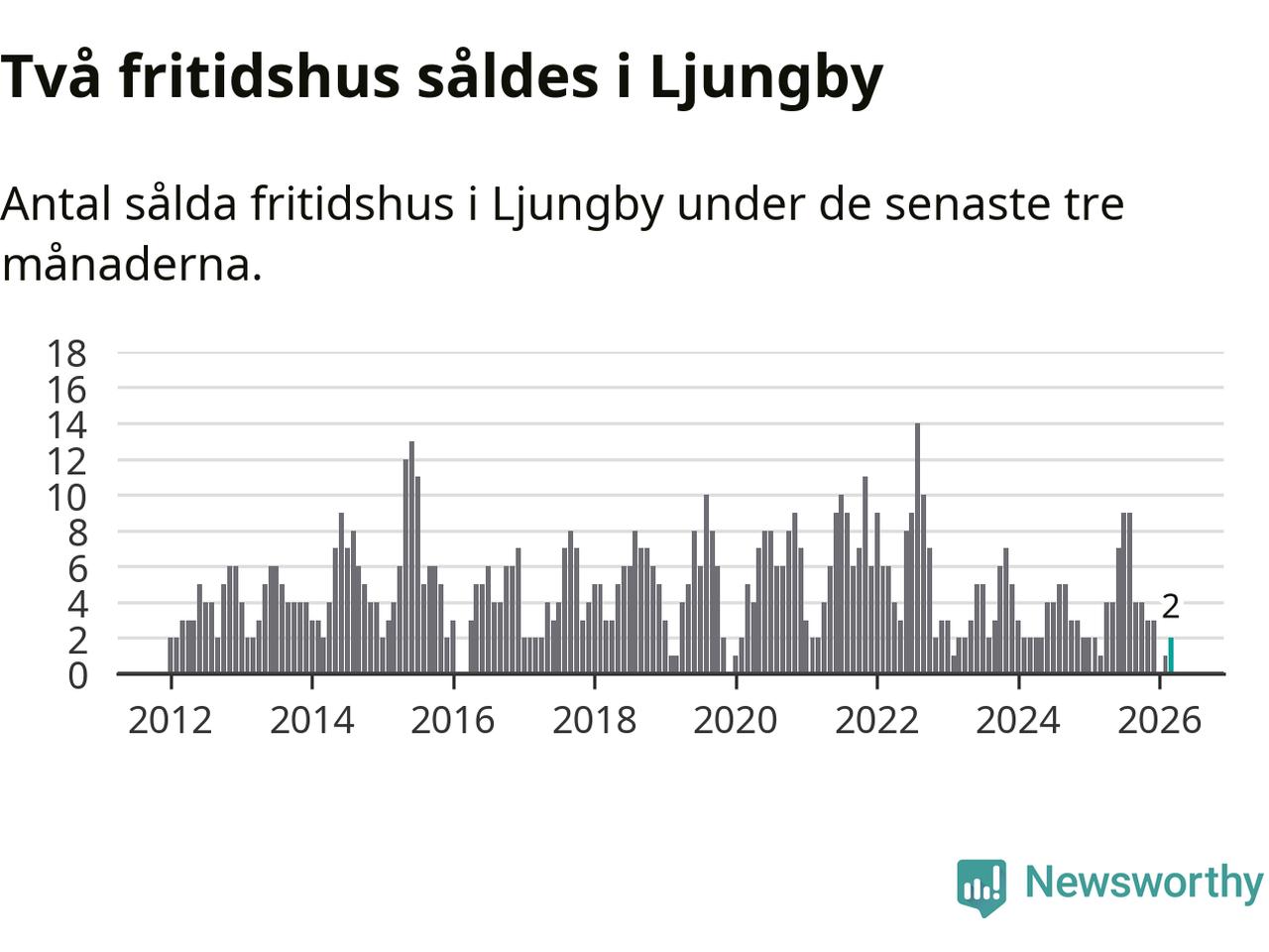 Mellan januari och mars gjordes sammanlagt två affärer med fritidshus i Ljungby kommun. Det kan jämföras med ett vid motsvarande tid i fjol.