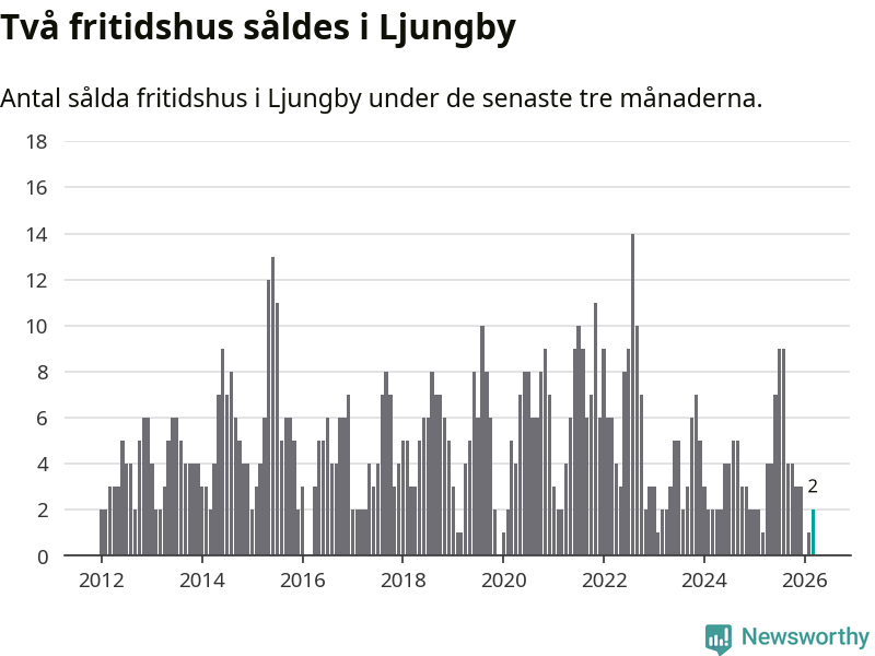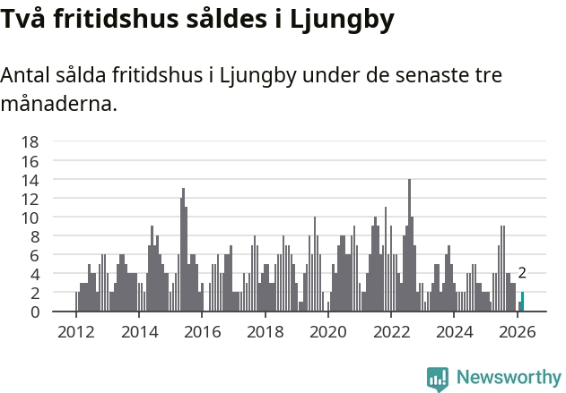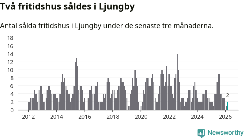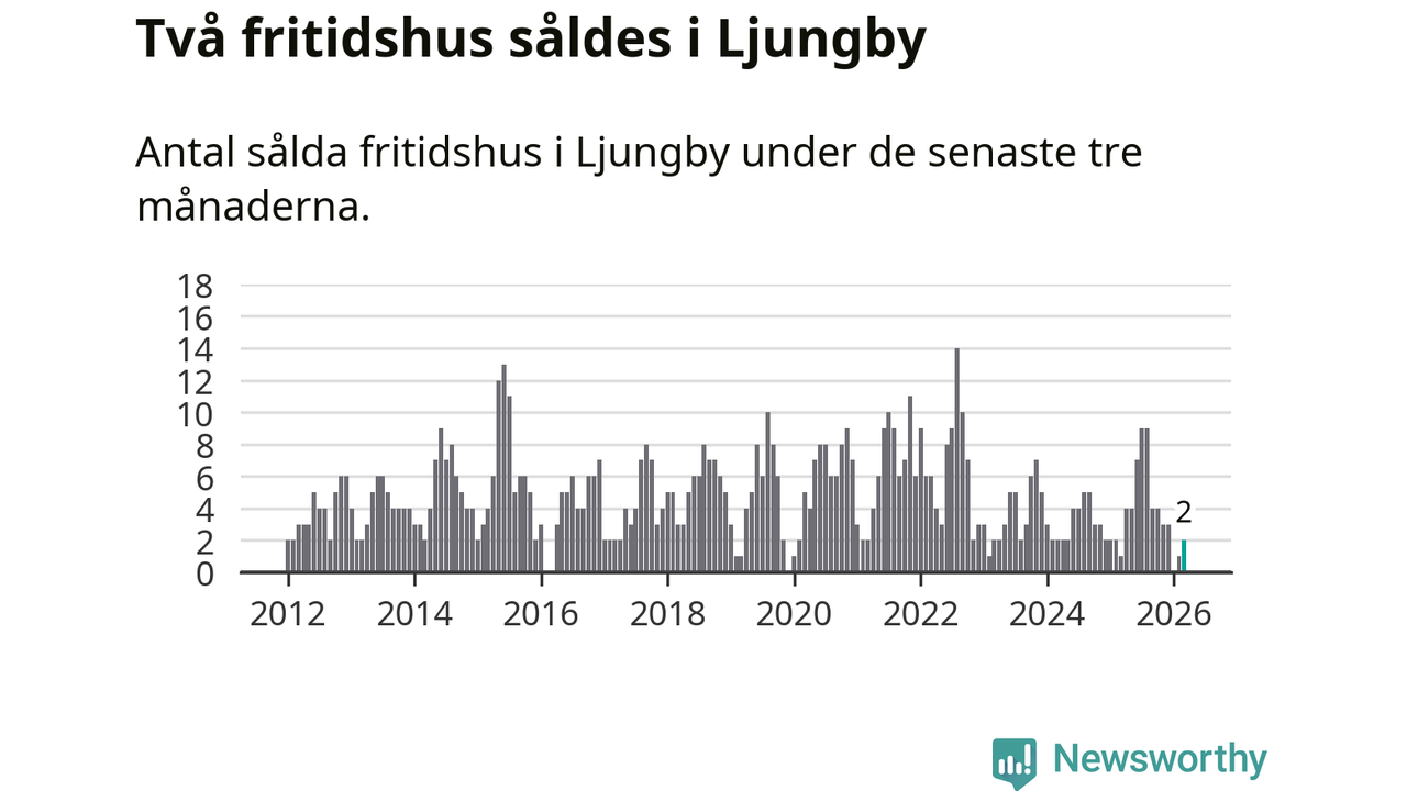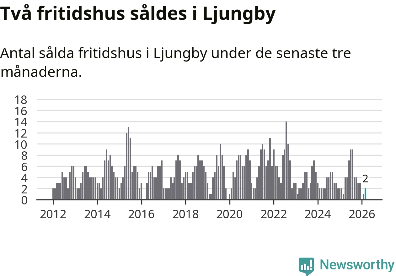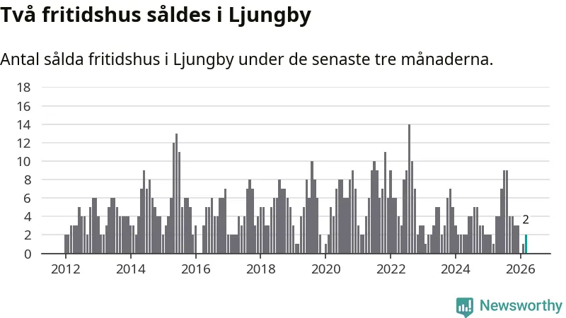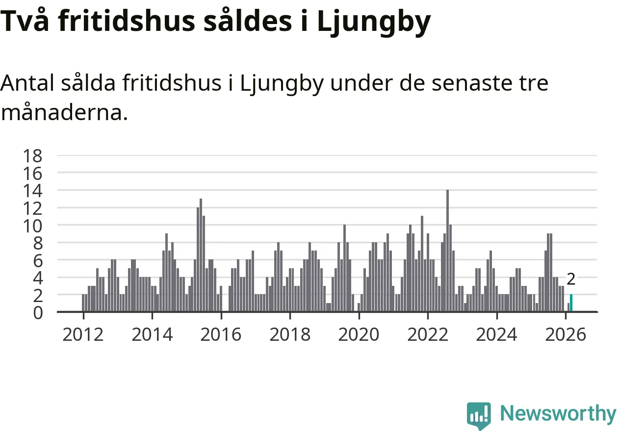 Mellan januari och mars gjordes sammanlagt två affärer med fritidshus i Ljungby kommun. Det kan jämföras med ett vid motsvarande tid i fjol.