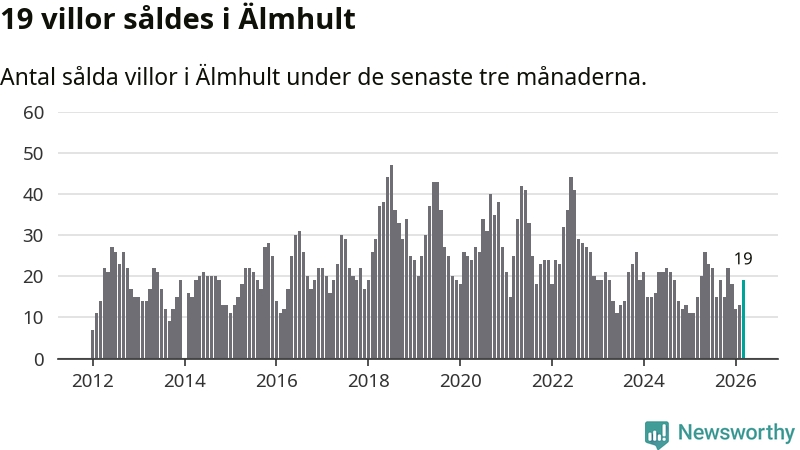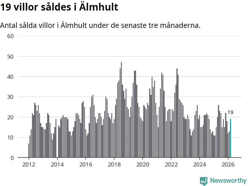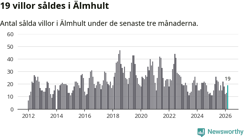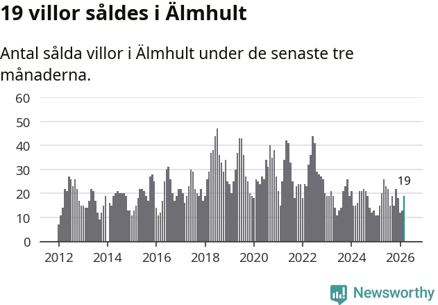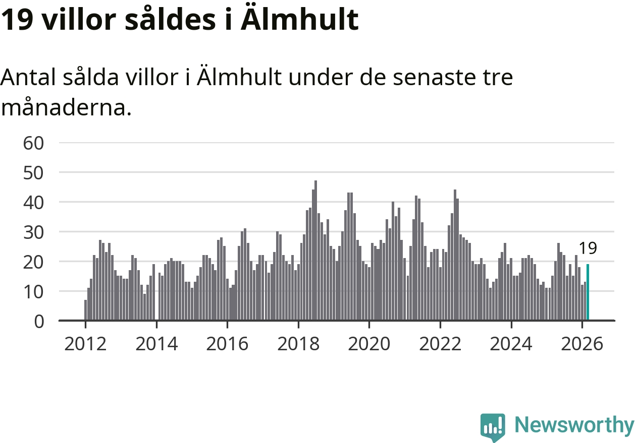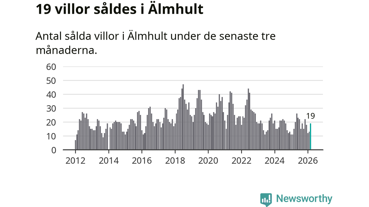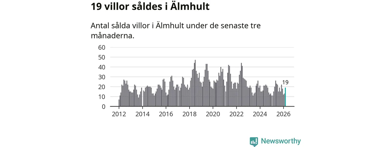 Mellan januari och mars gjordes sammanlagt 19 affärer med villor i Älmhults kommun. Det kan jämföras med 15 vid motsvarande tid i fjol.