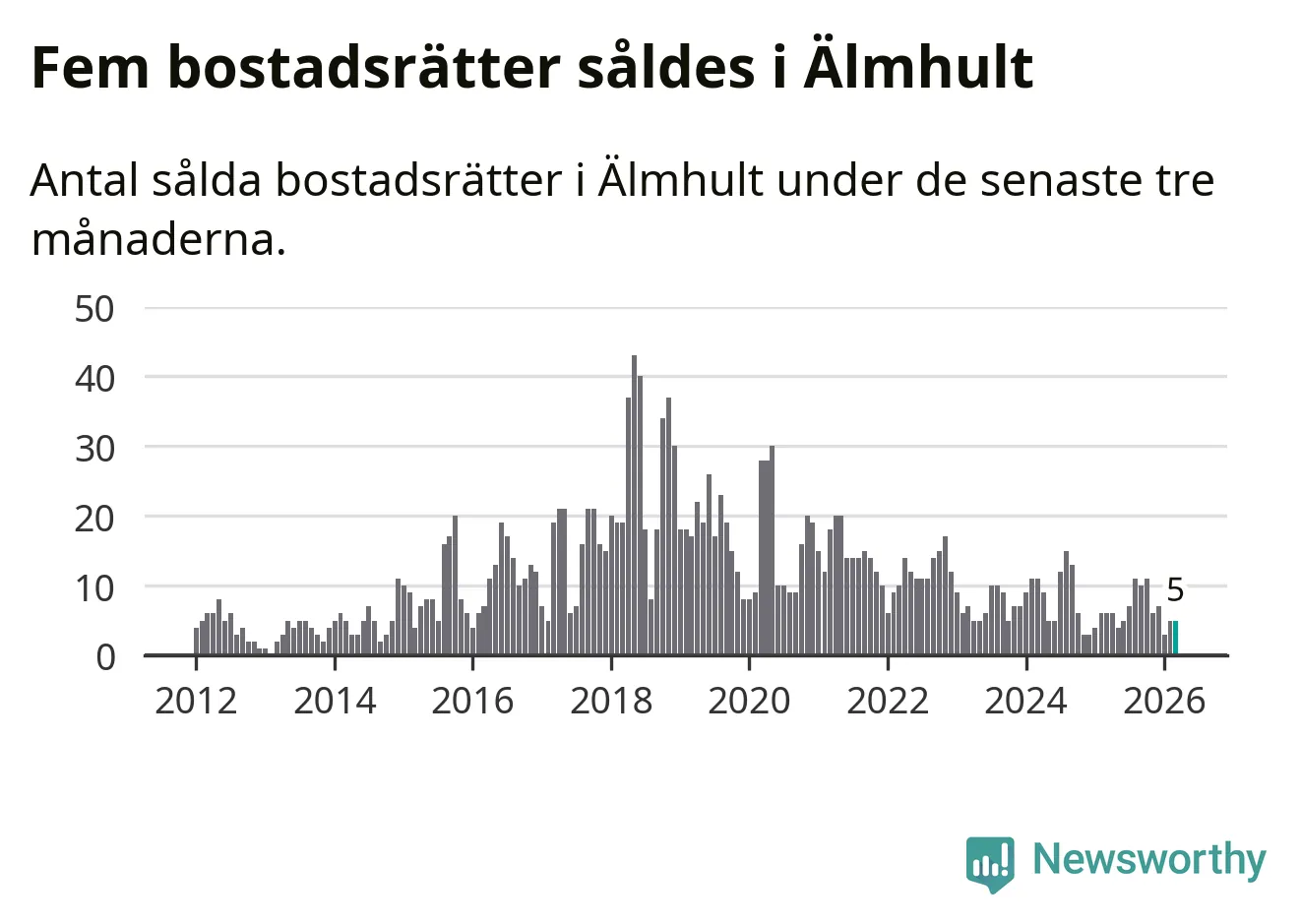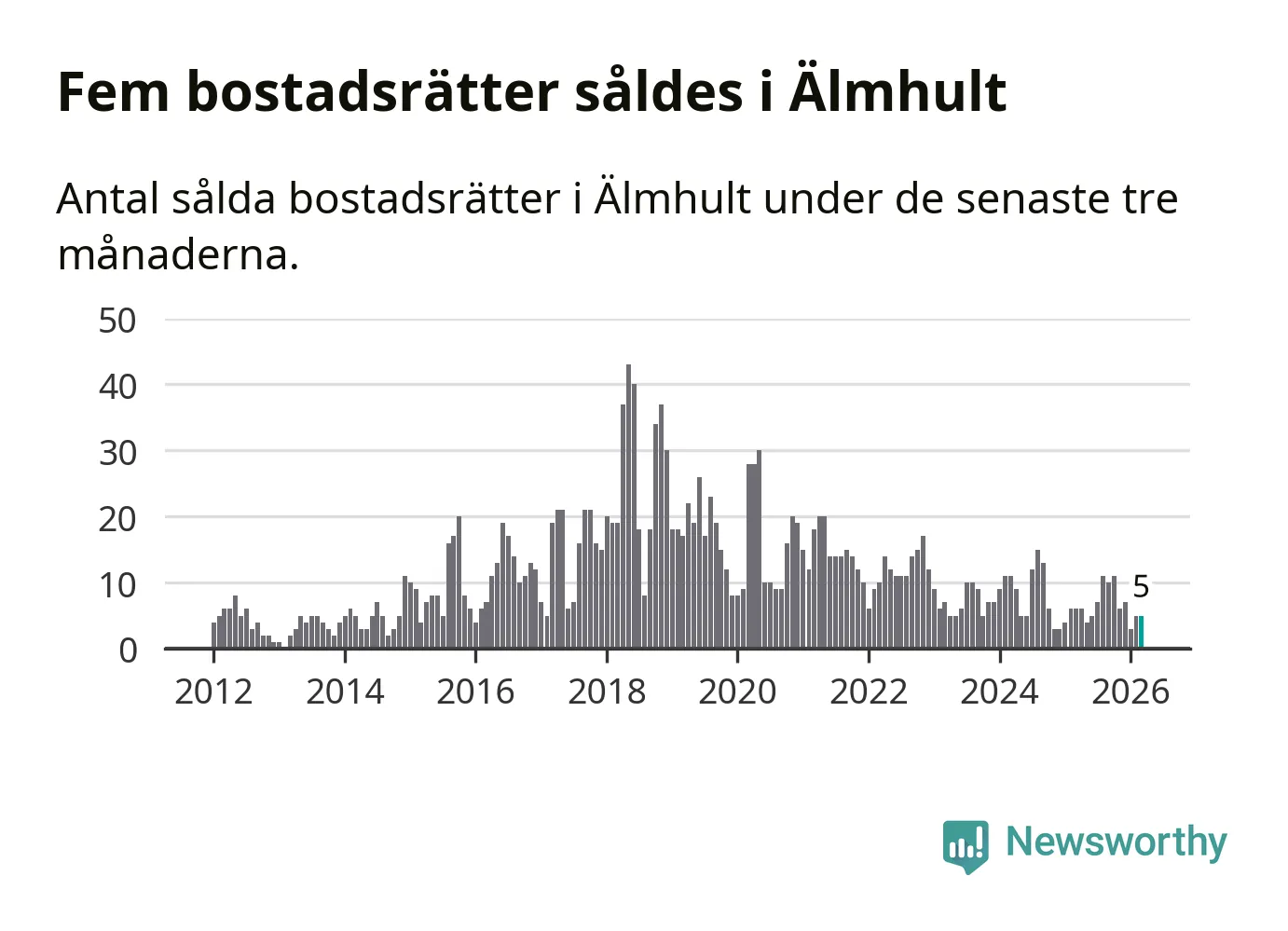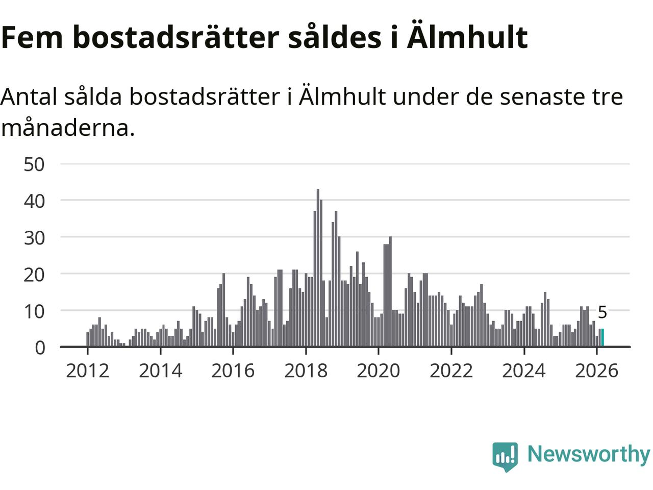 Graf: Antal sålda bostadsrätter i Älmhults kommun