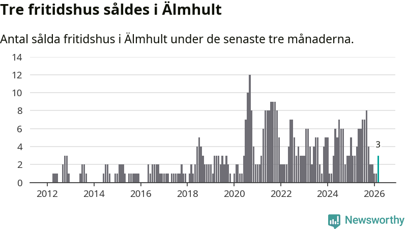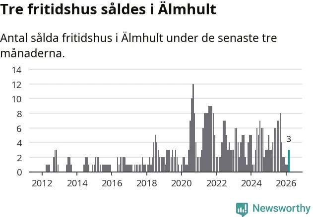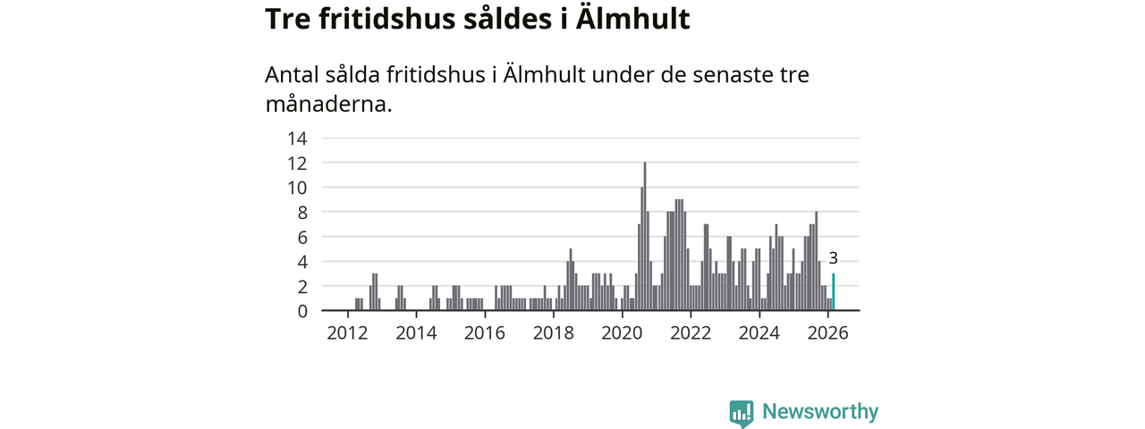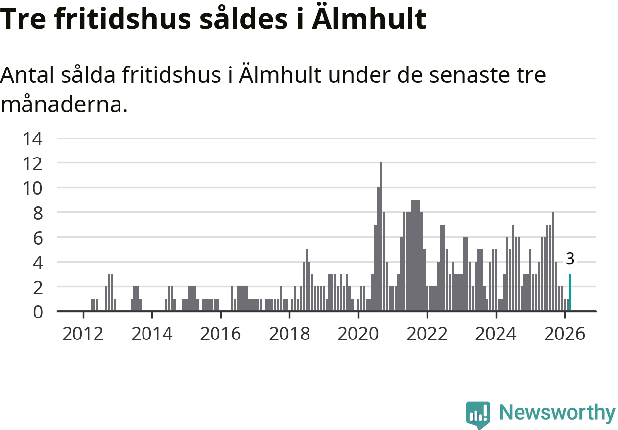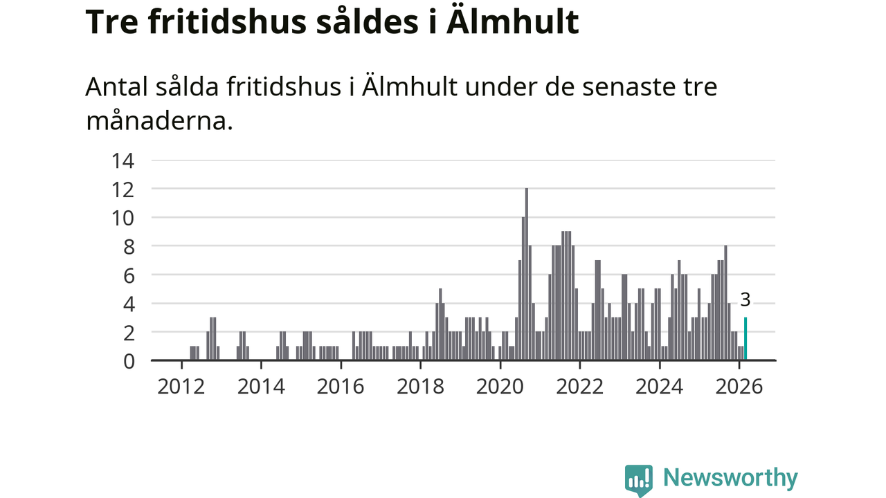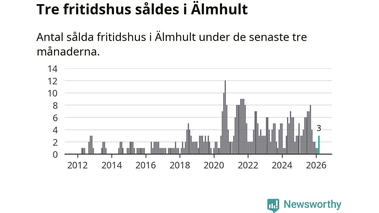 Mellan januari och mars gjordes sammanlagt tre affärer med fritidshus i Älmhults kommun. Det är lika många affärer som vid motsvarande tid i fjol.