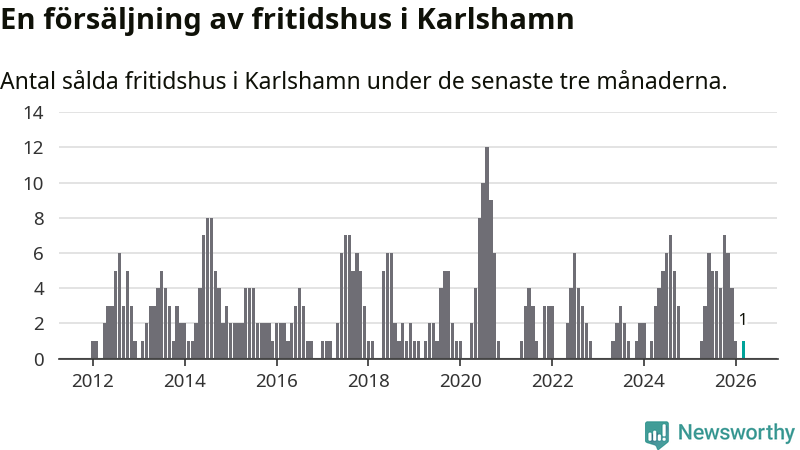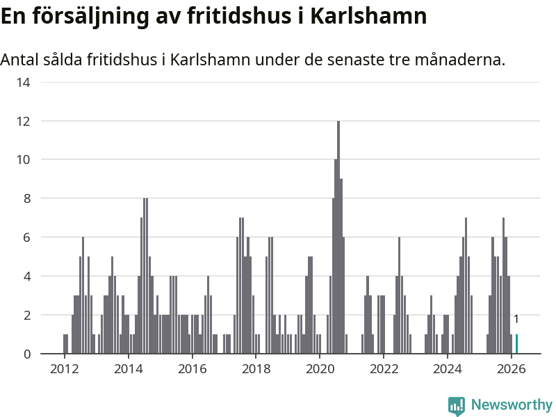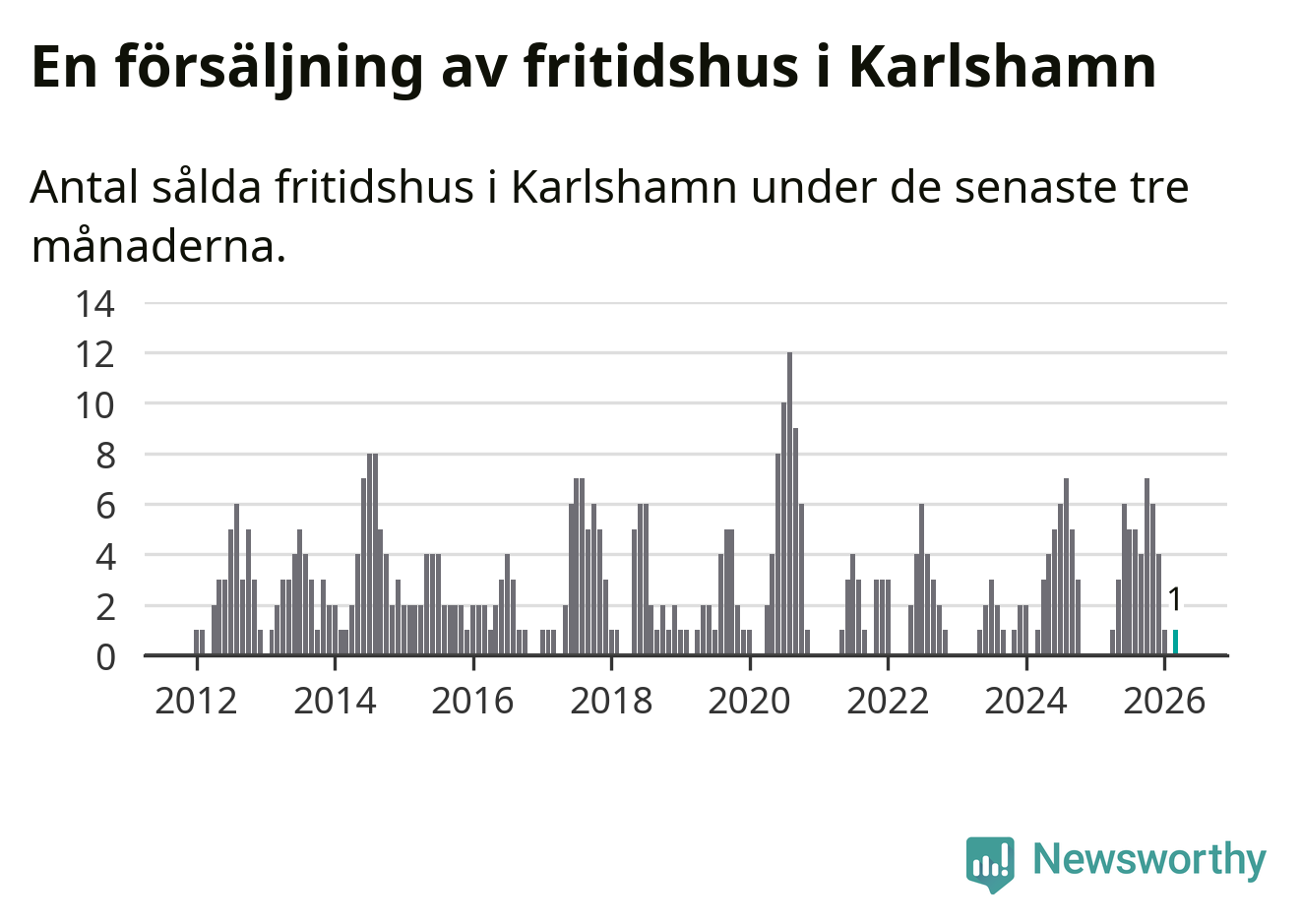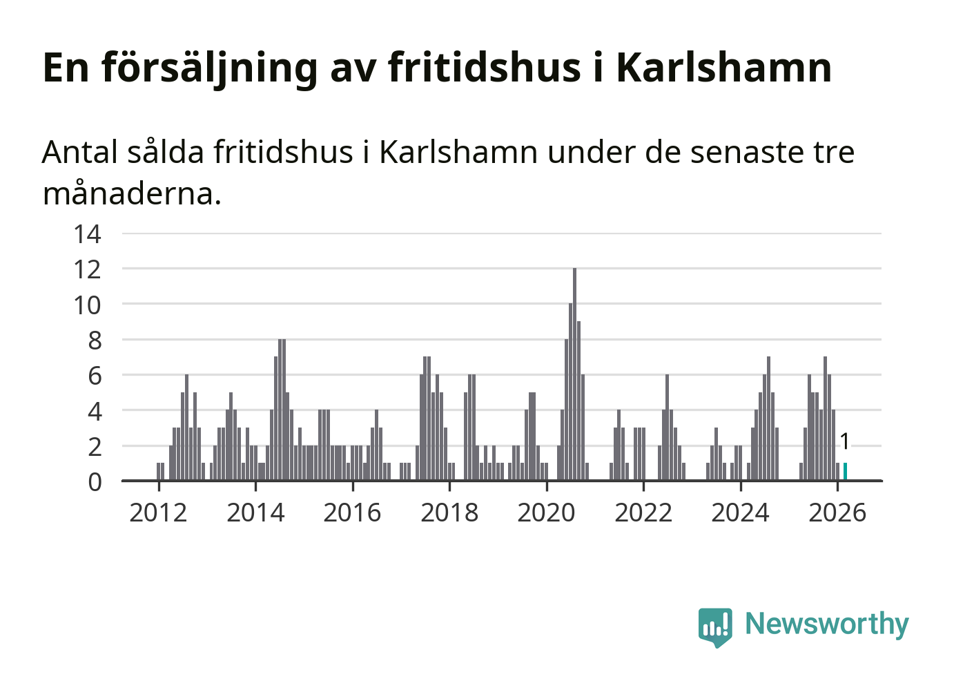 Mellan januari och mars gjordes sammanlagt en affär med fritidshus i Karlshamns kommun.