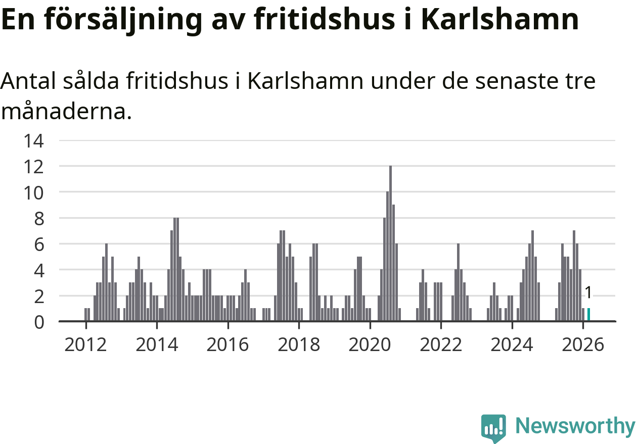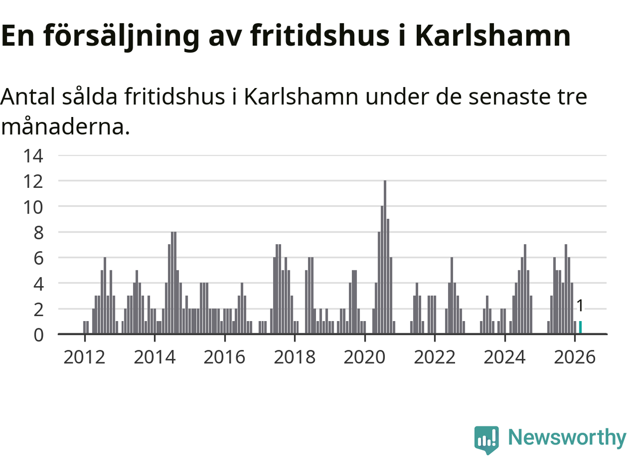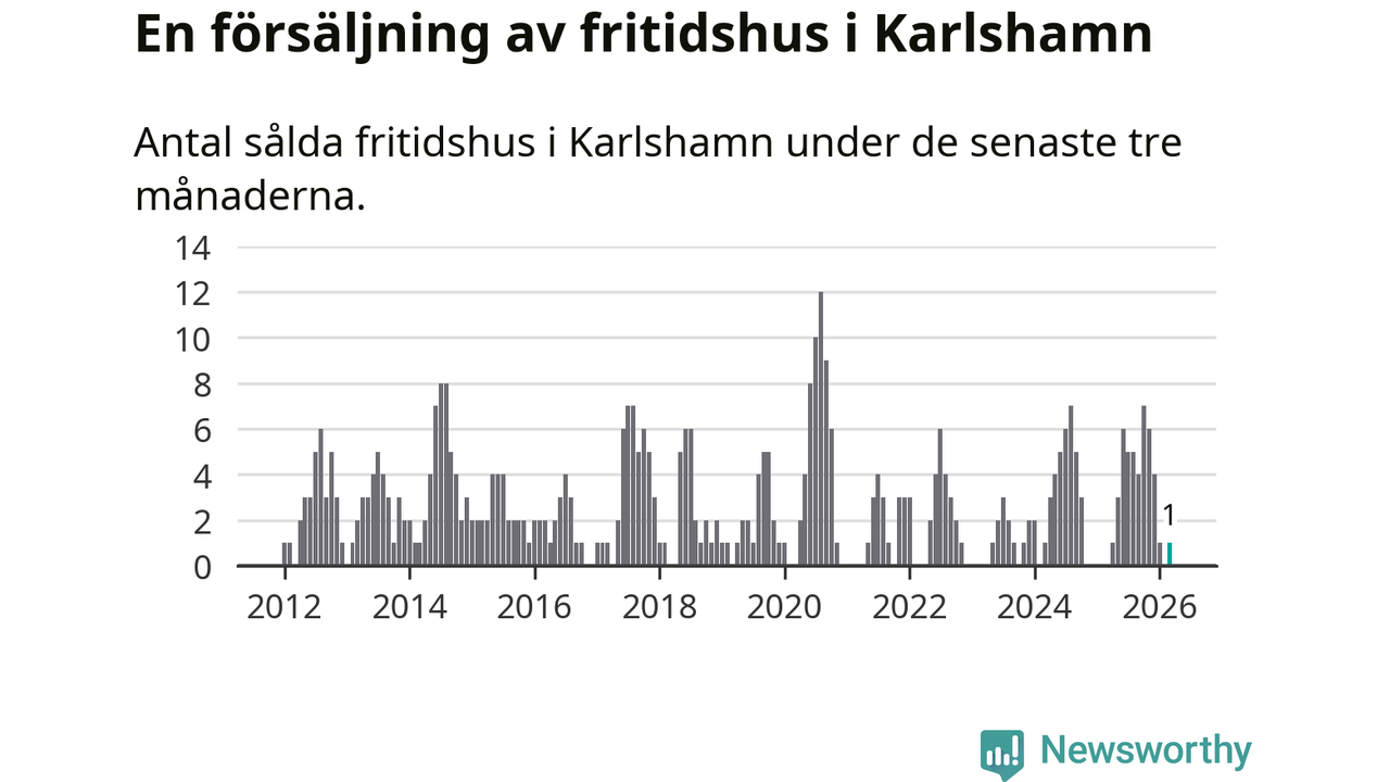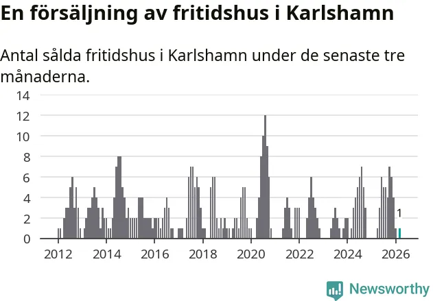Mellan januari och mars gjordes sammanlagt en affär med fritidshus i Karlshamns kommun.