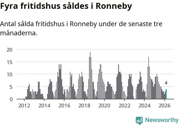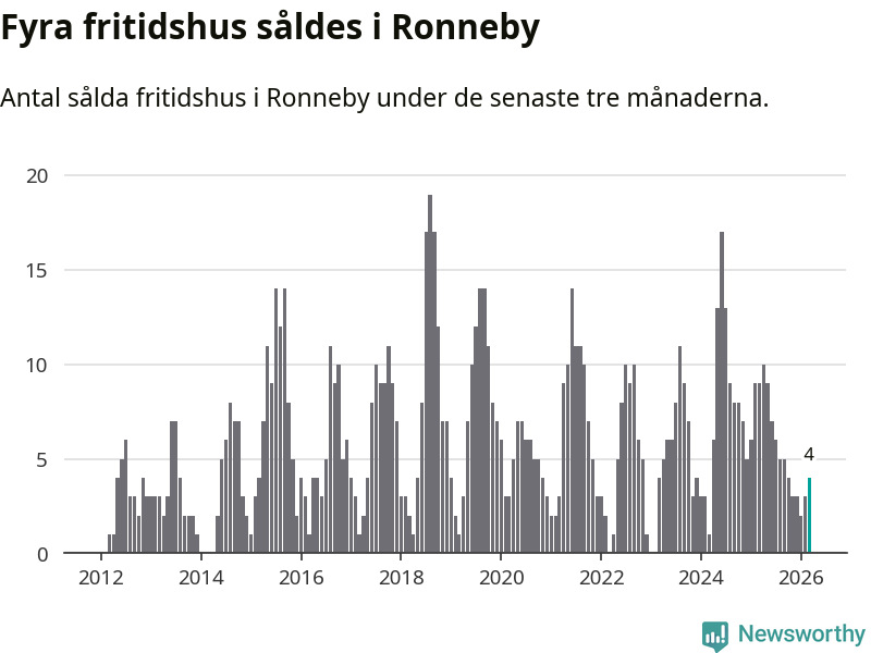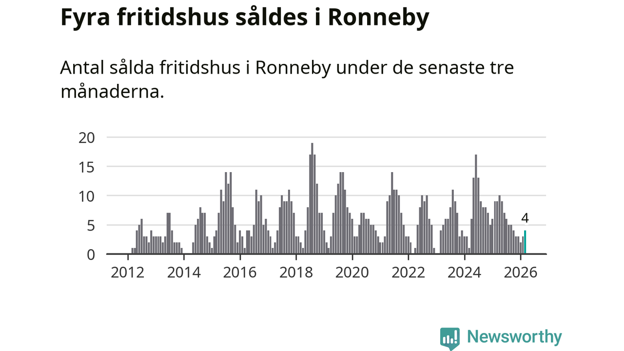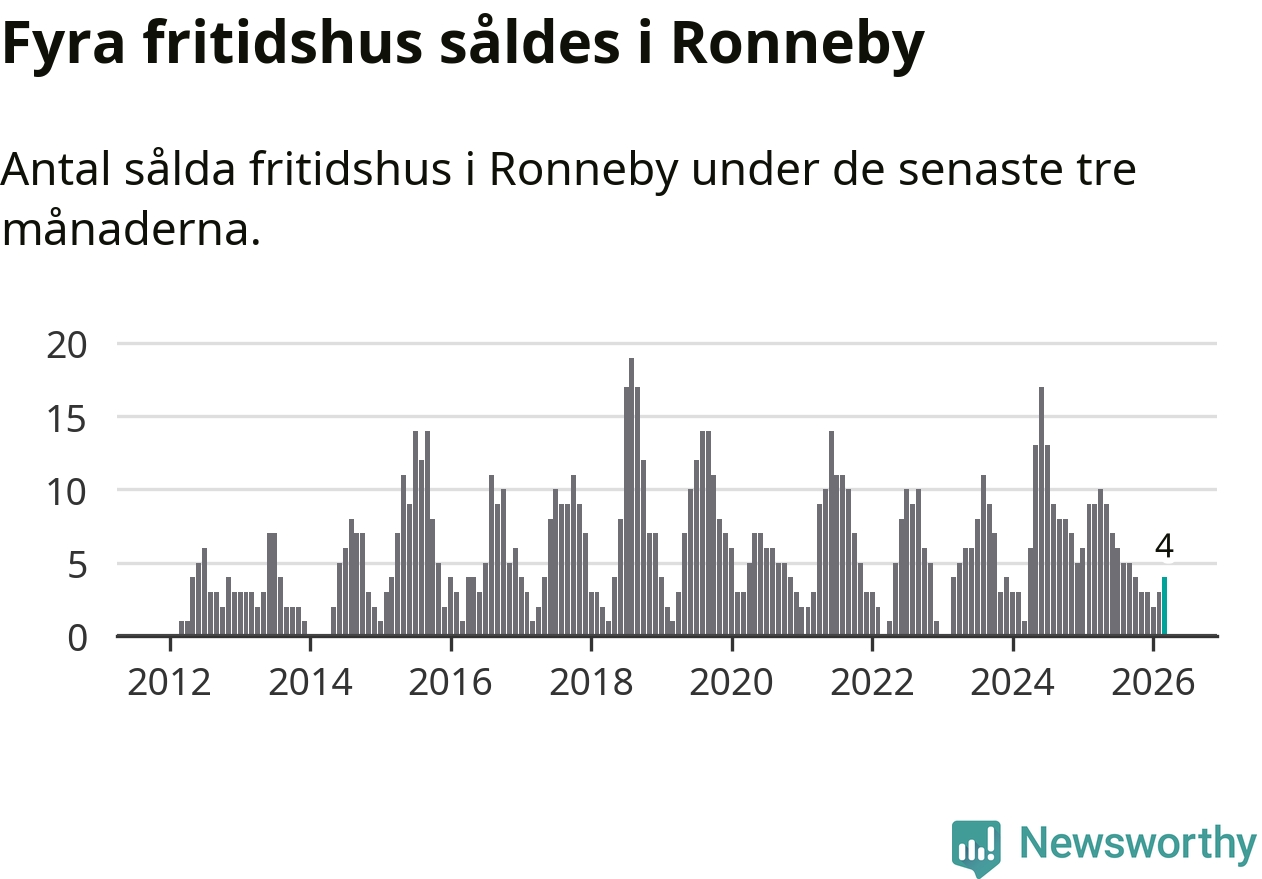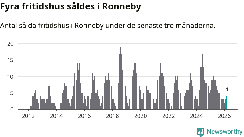 Mellan januari och mars gjordes sammanlagt fyra affärer med fritidshus i Ronneby kommun. Det kan jämföras med nio vid motsvarande tid i fjol.