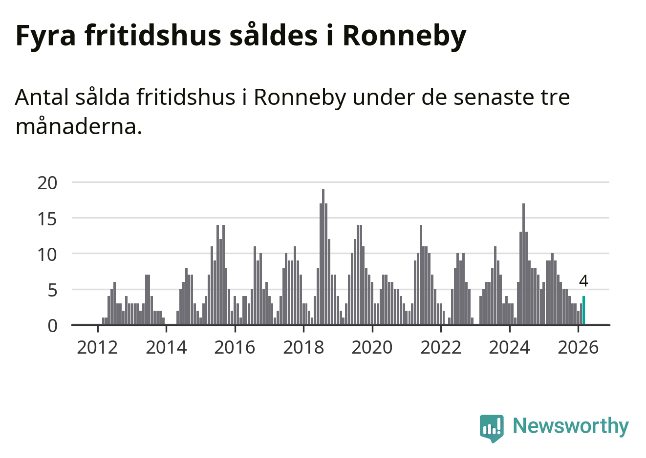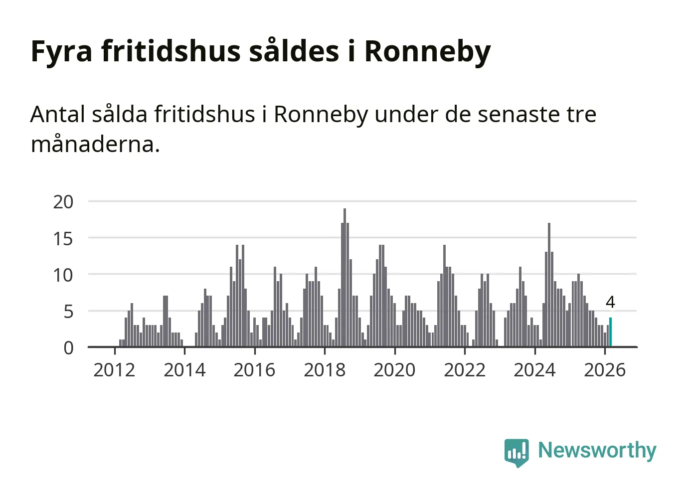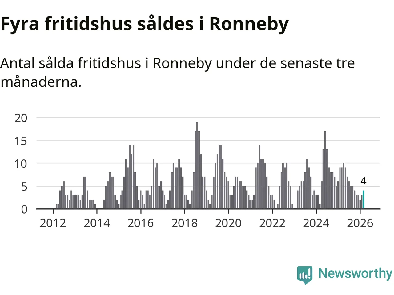Mellan januari och mars gjordes sammanlagt fyra affärer med fritidshus i Ronneby kommun. Det kan jämföras med nio vid motsvarande tid i fjol.