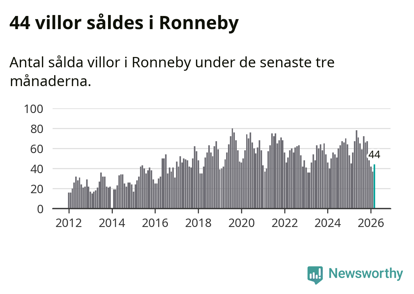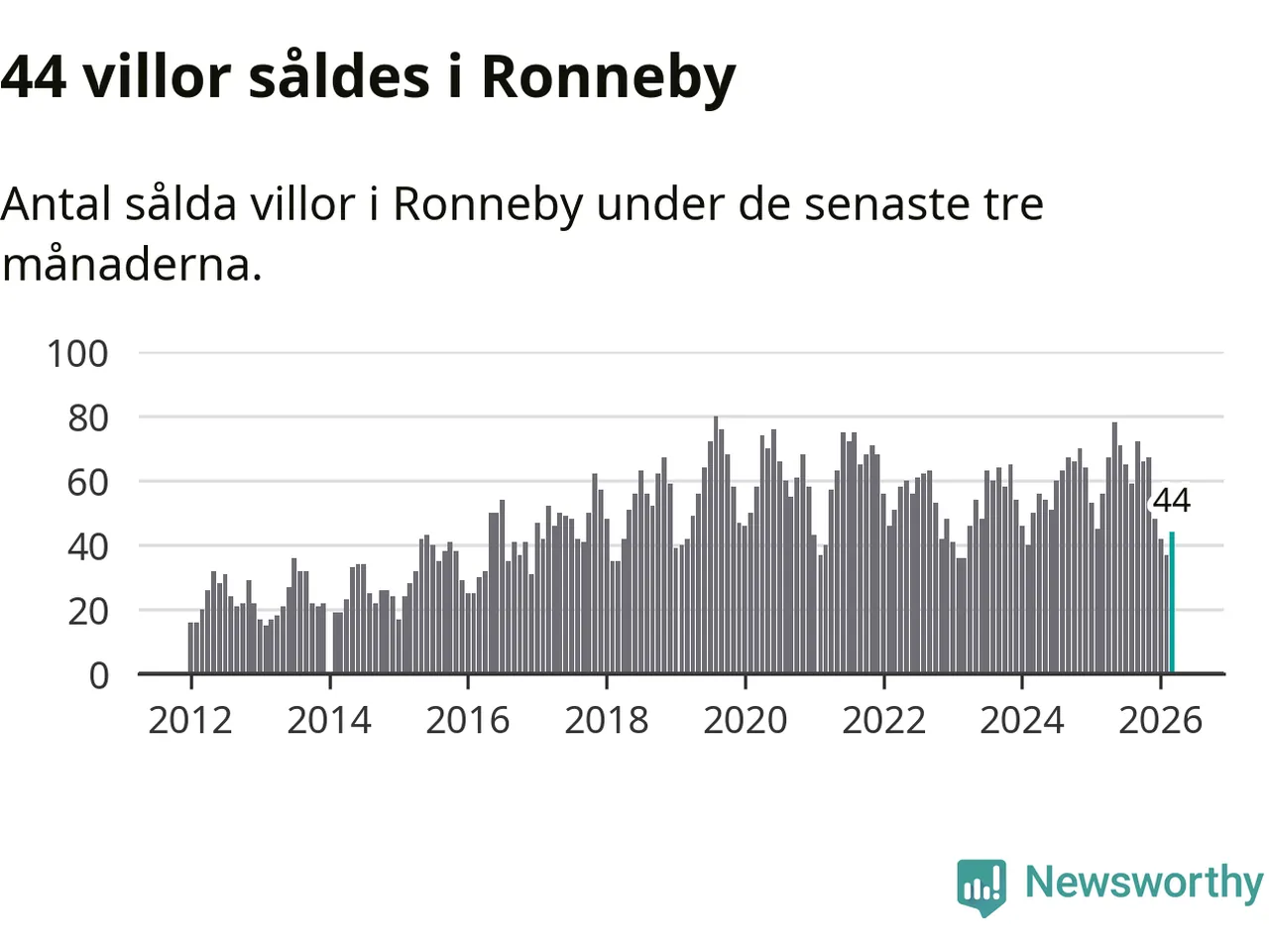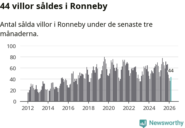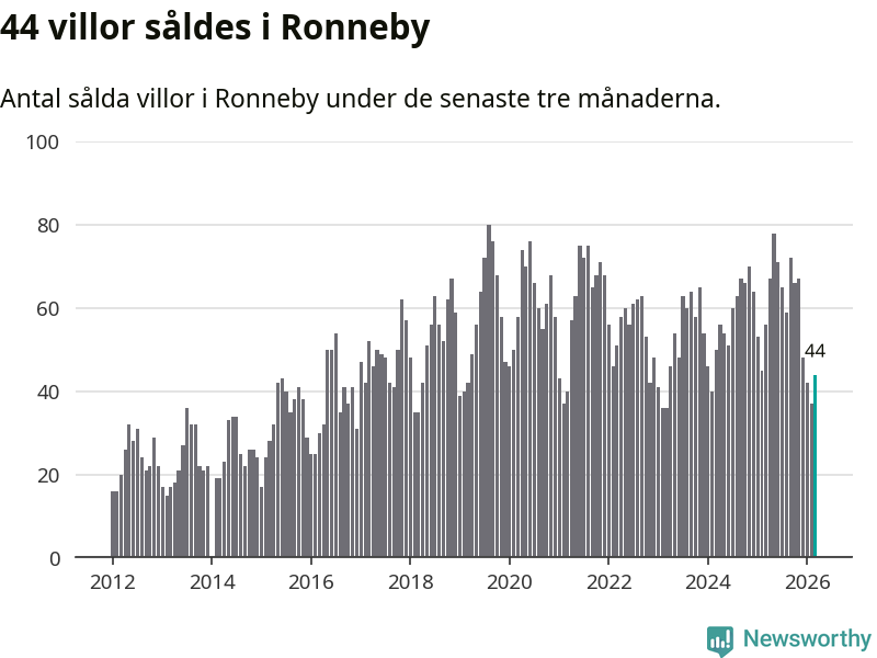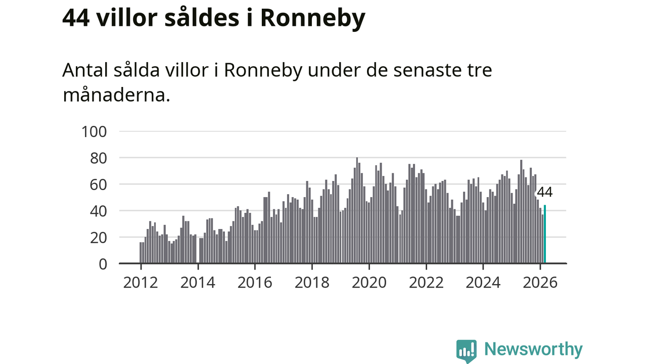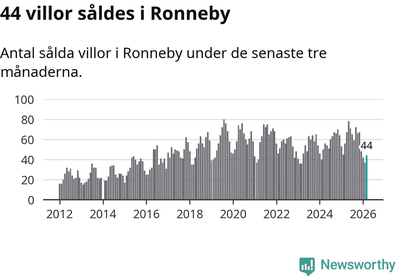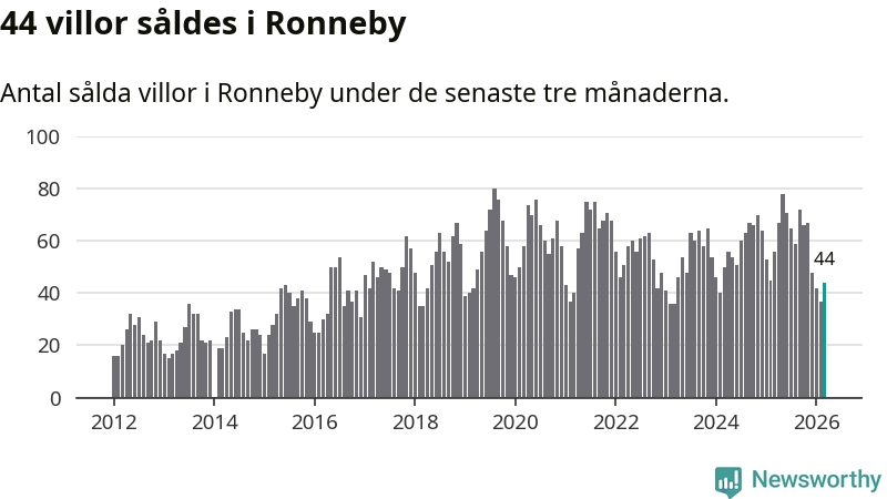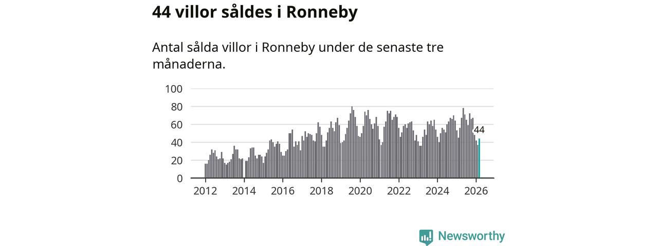 Sammanlagt såldes 44 villor i Ronneby kommun mellan januari och mars till ett genomsnittligt pris på 1,6 miljoner kronor. I fjol gjordes 56 affärer vid den här tiden på året.