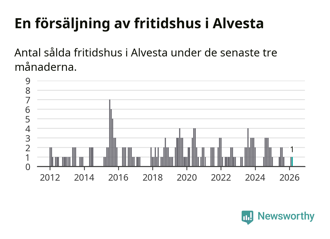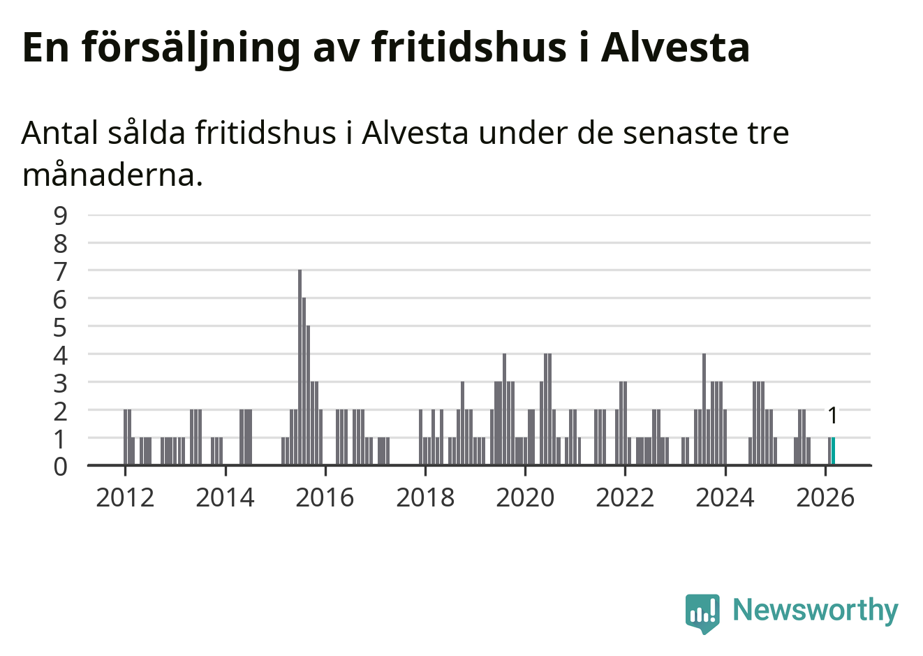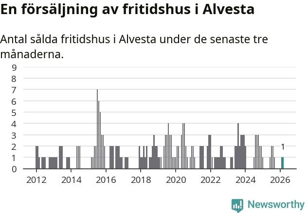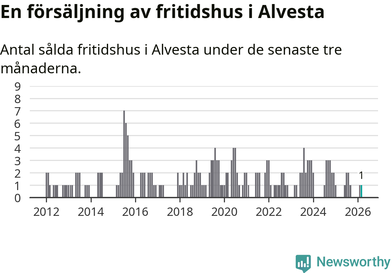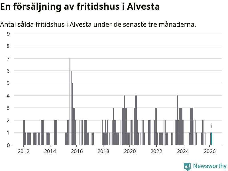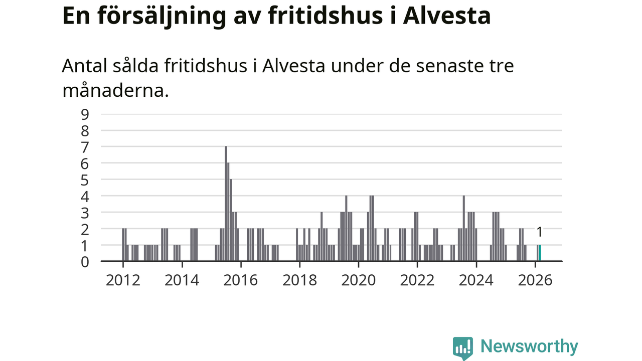 Mellan januari och mars gjordes sammanlagt en affär med fritidshus i Alvesta kommun.