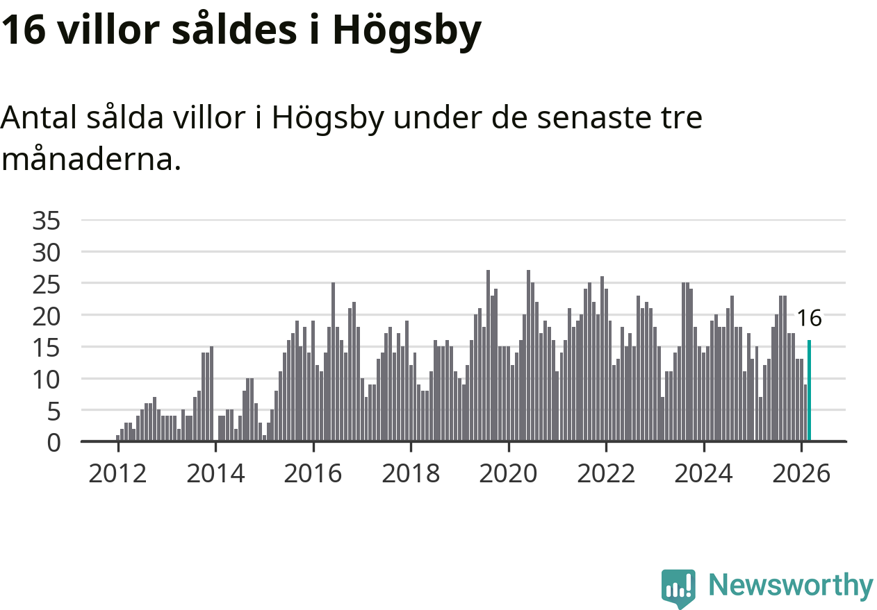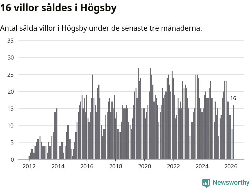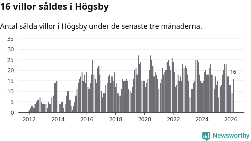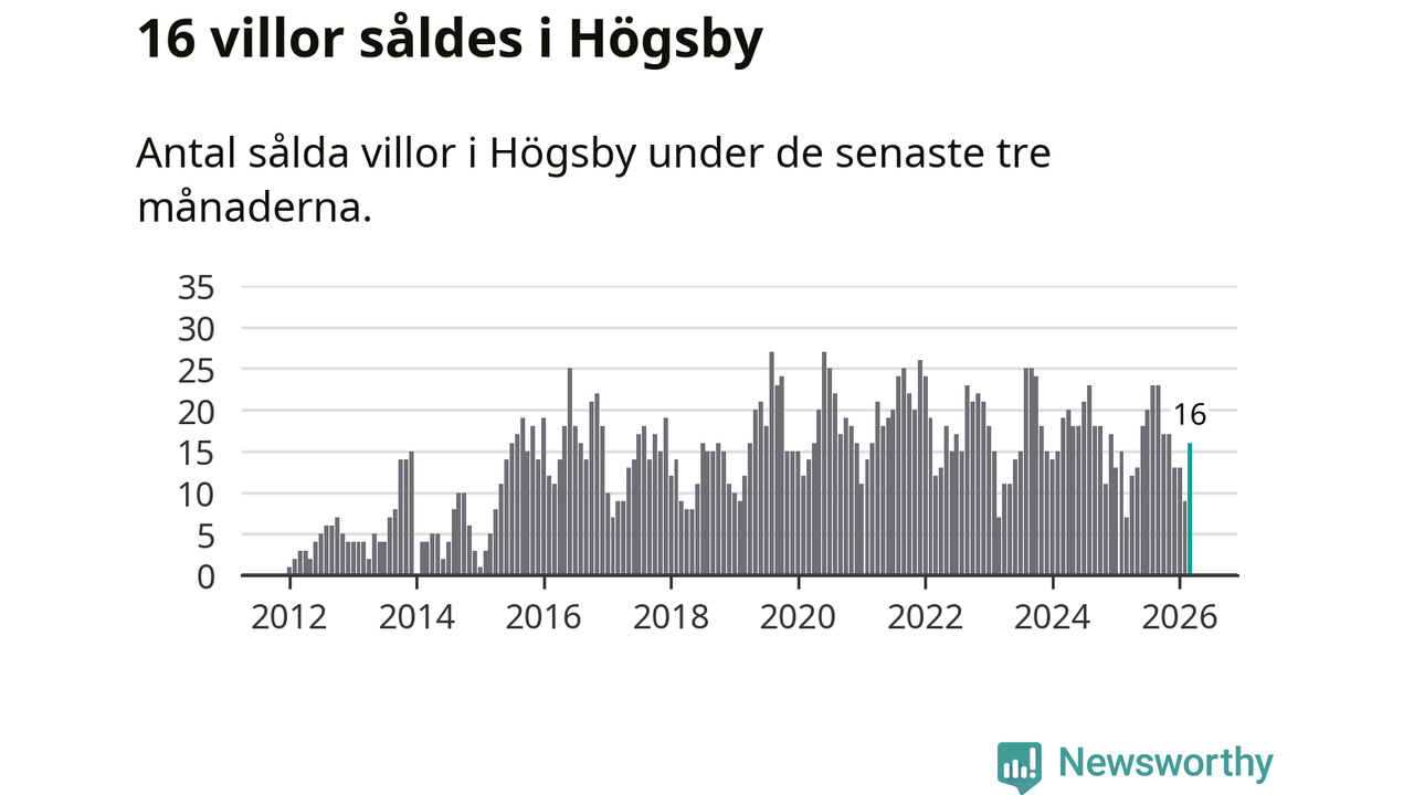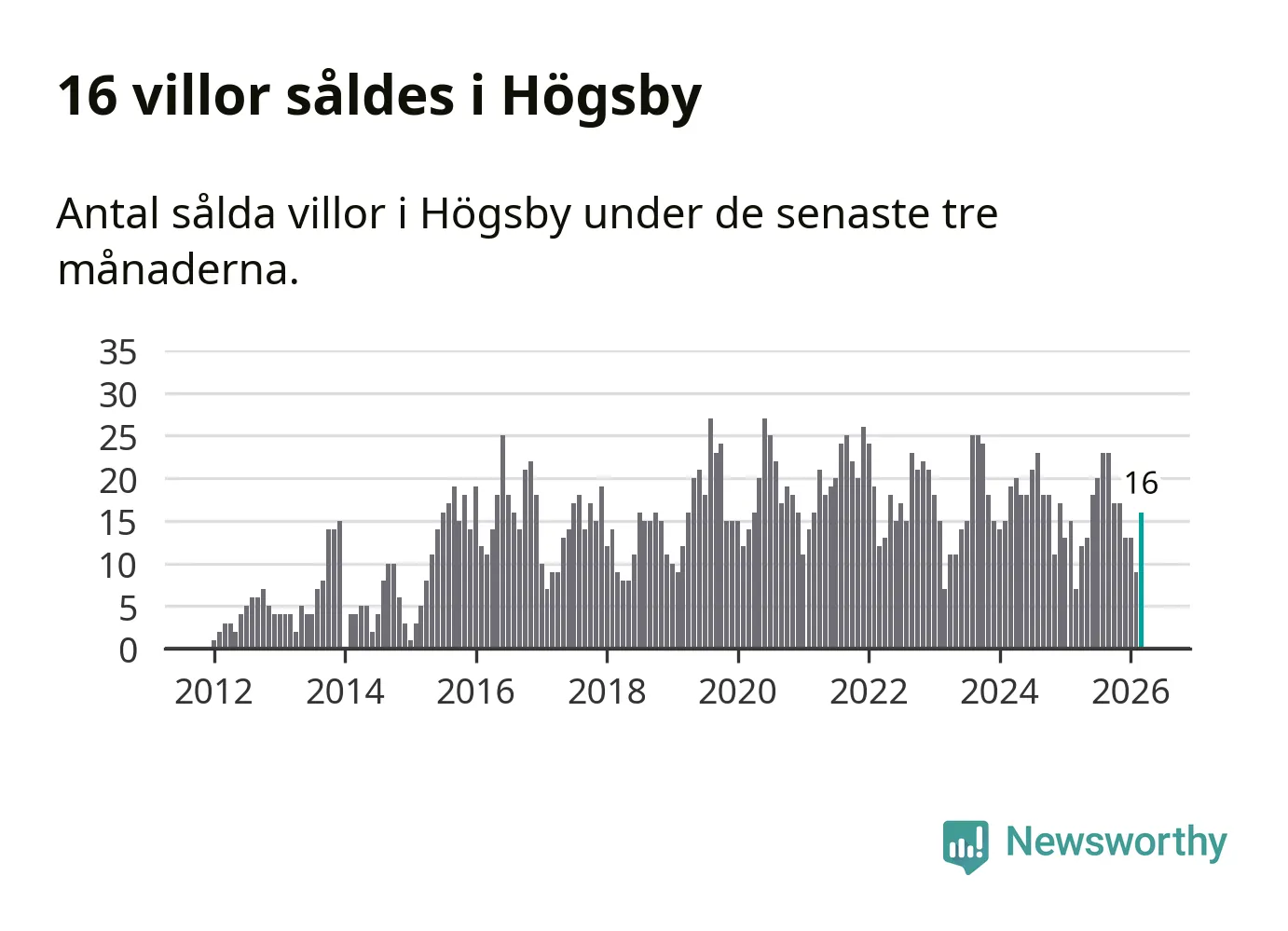 Mellan januari och mars gjordes sammanlagt 16 affärer med villor i Högsby kommun. Det kan jämföras med sju vid motsvarande tid i fjol.