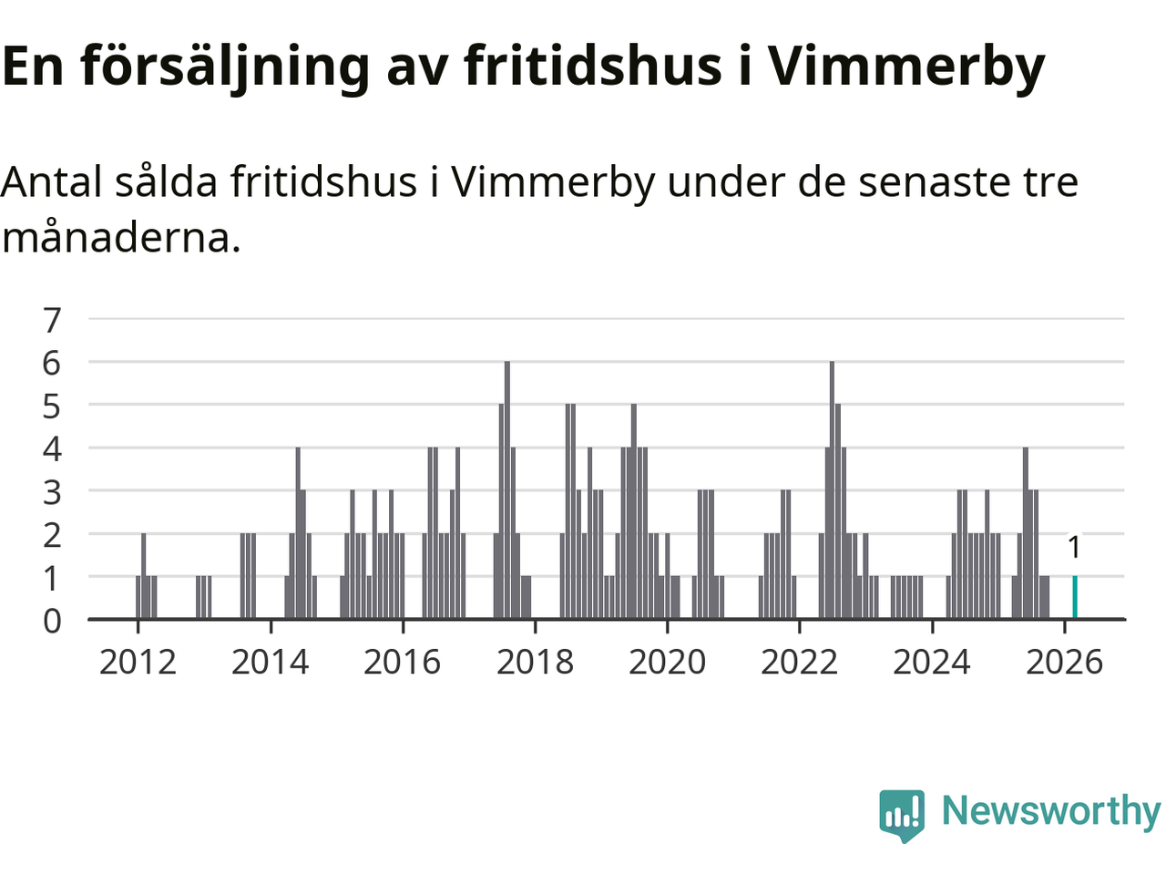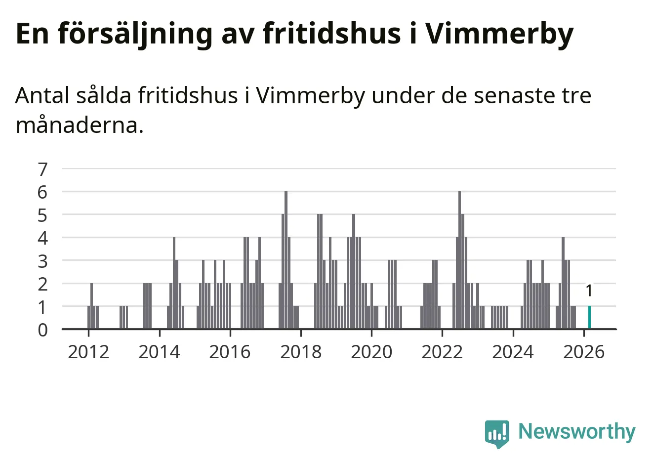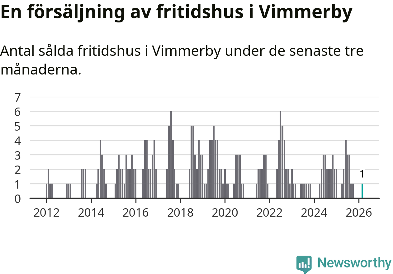 Mellan januari och mars gjordes sammanlagt en affär med fritidshus i Vimmerby kommun.