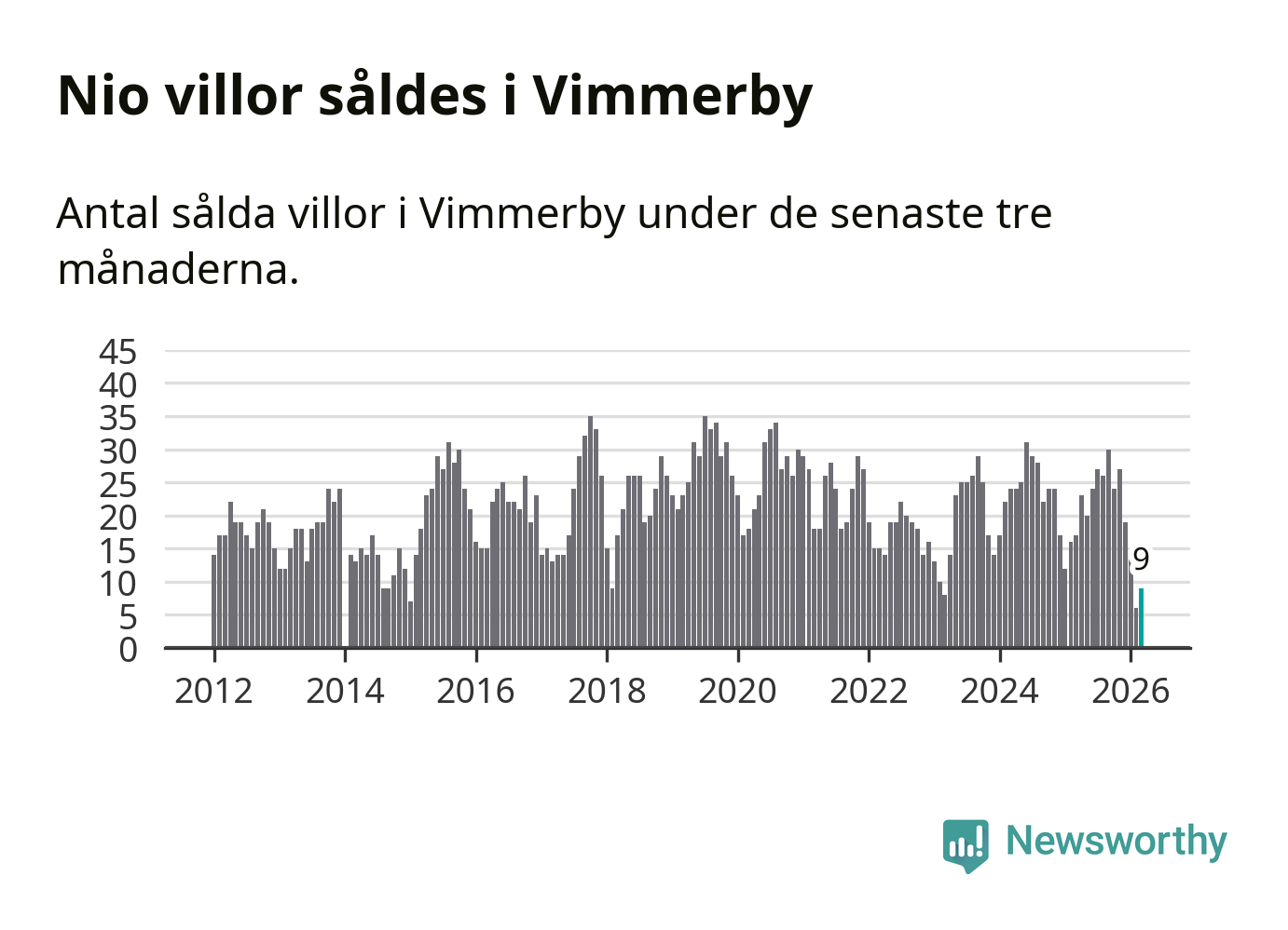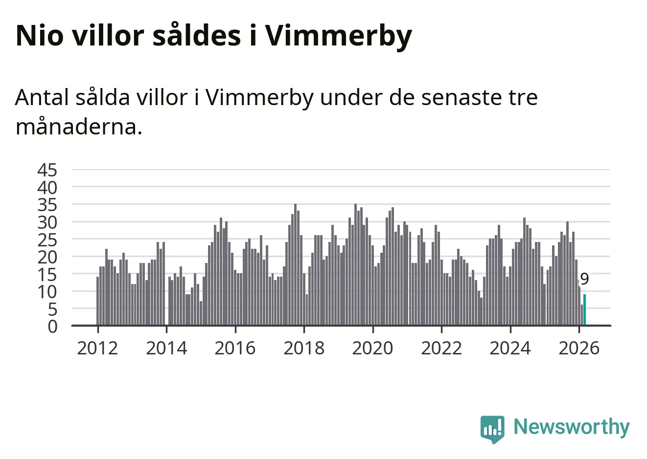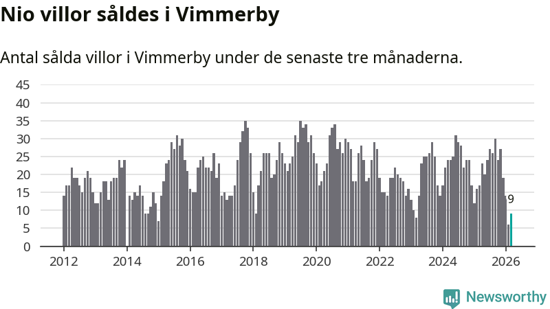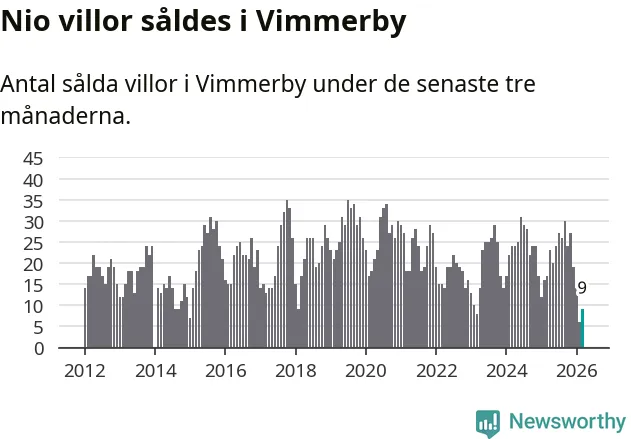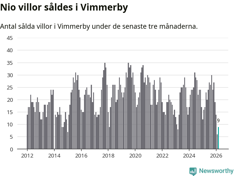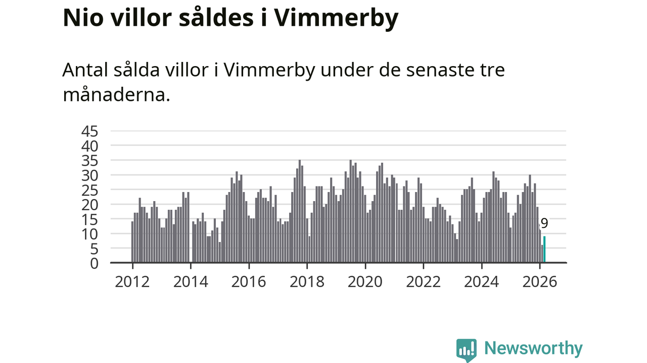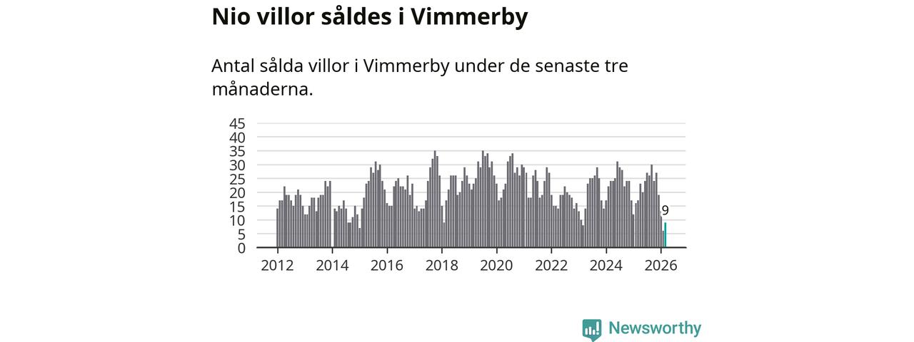 Mellan januari och mars gjordes sammanlagt nio affärer med villor i Vimmerby kommun. Det kan jämföras med 17 vid motsvarande tid i fjol.