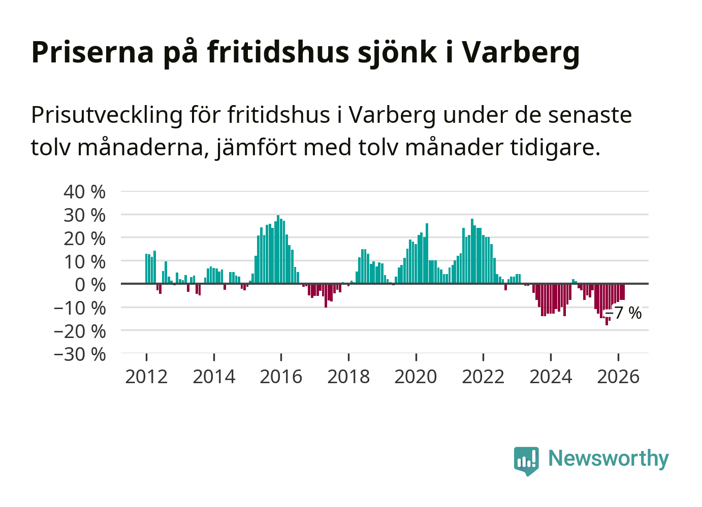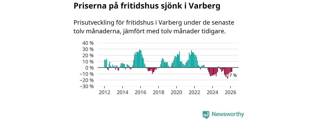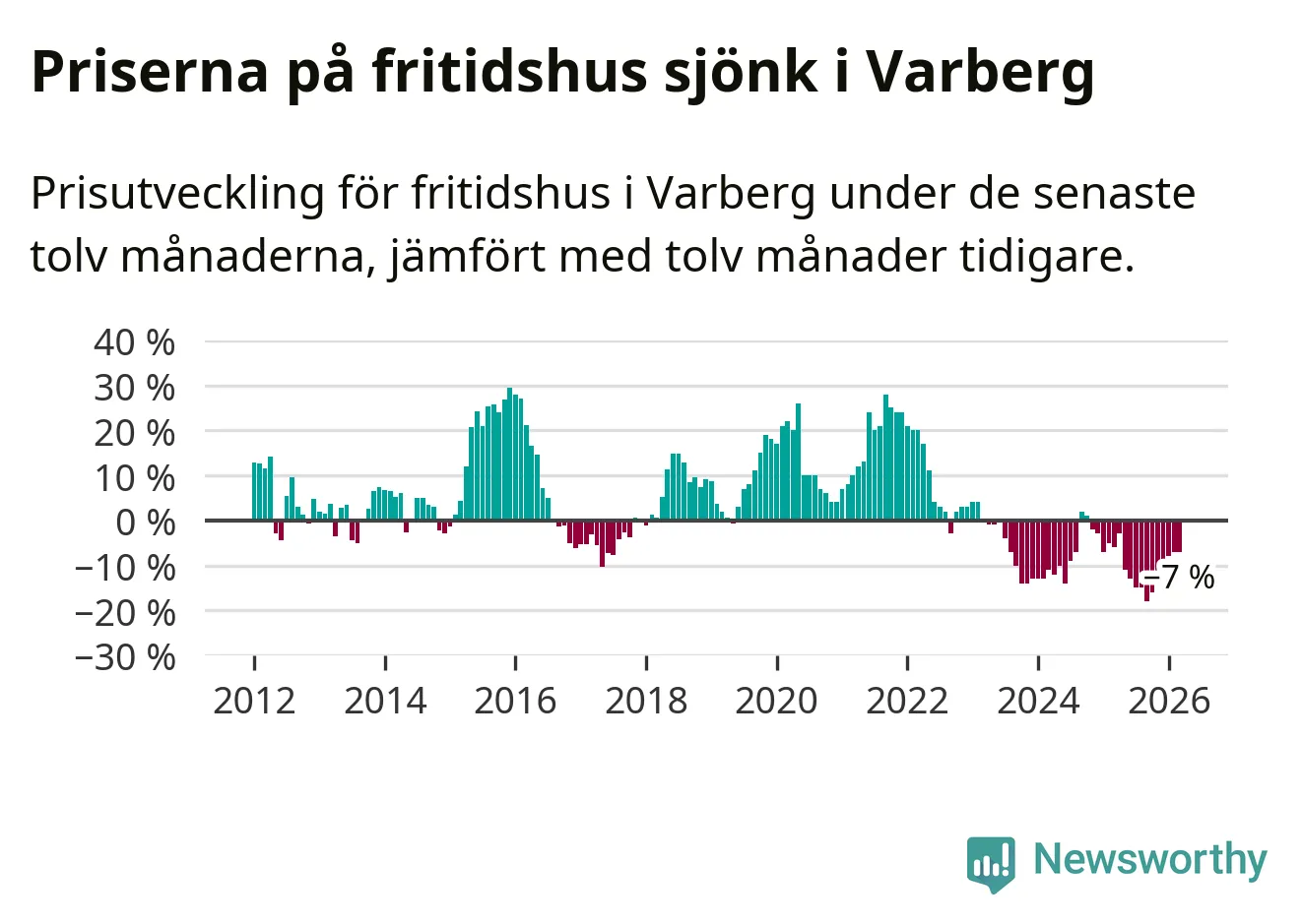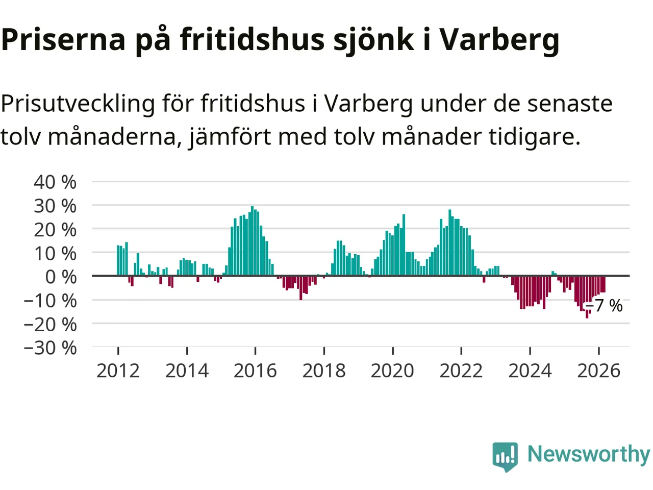 Priserna på fritidshus har gått ner i Varbergs kommun. Medelpriset på försäljningarna under de senaste tolv månaderna visar på en nedgång med 7 procent.