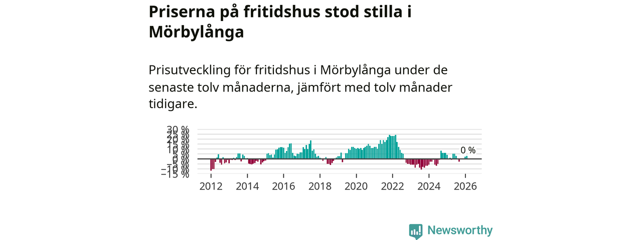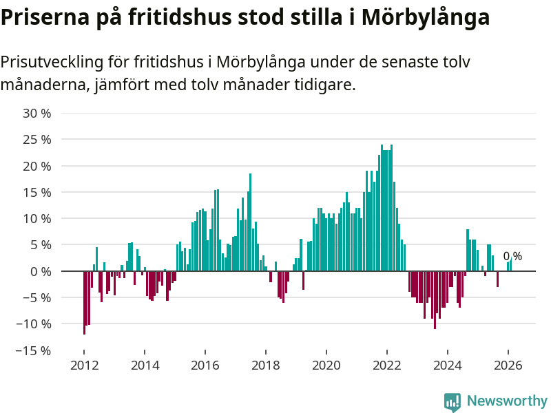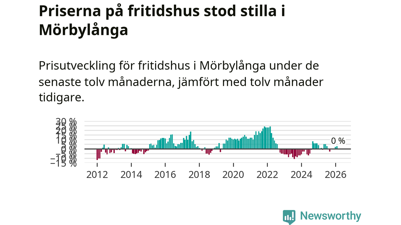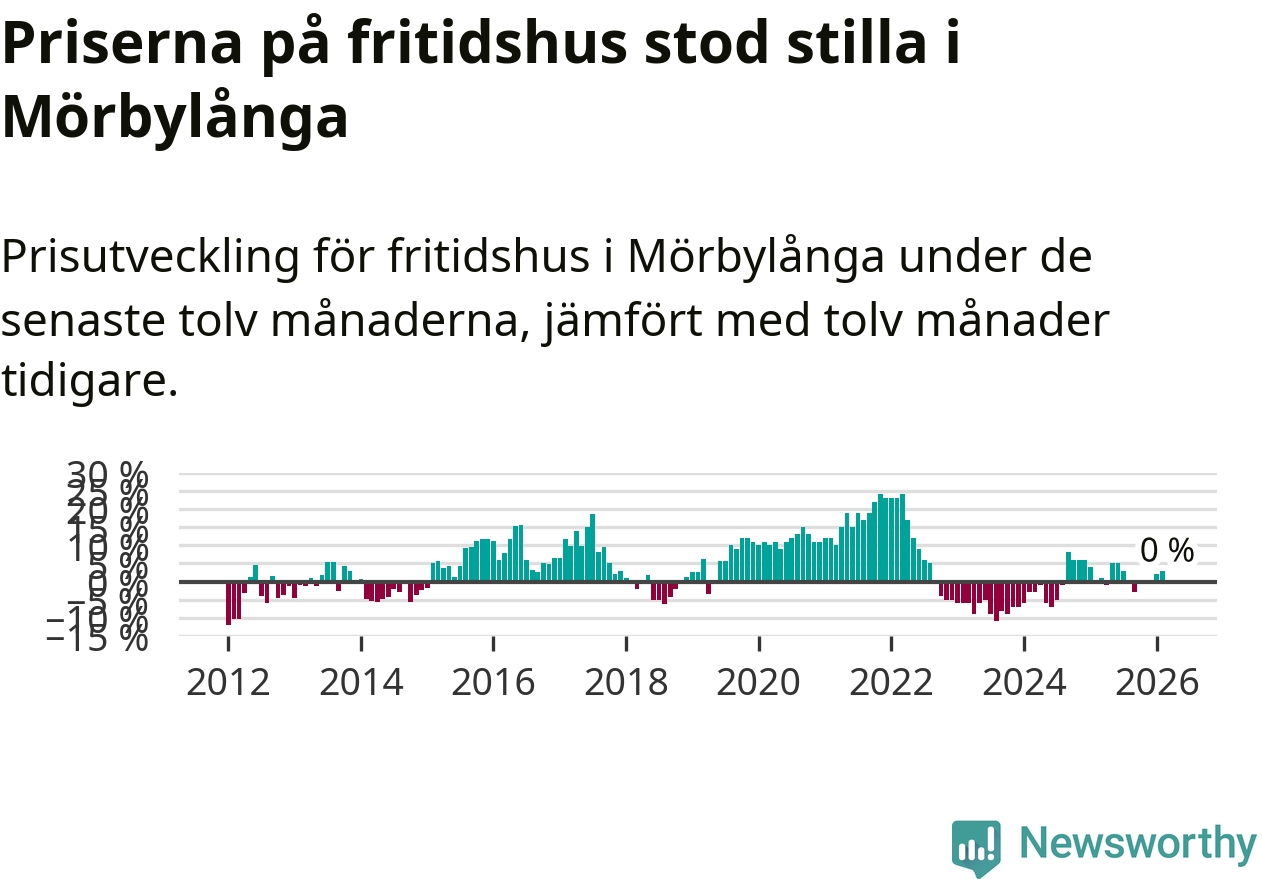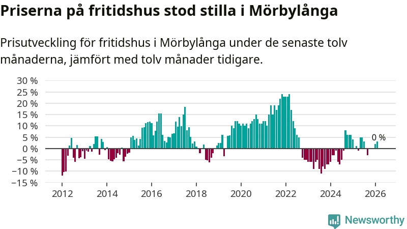 Priserna på fritidshus står i stort sett stilla i Mörbylånga kommun. Medelpriset på de på försäljningarna under de senaste tolv månaderna låg på samma nivå som för ett år sedan.