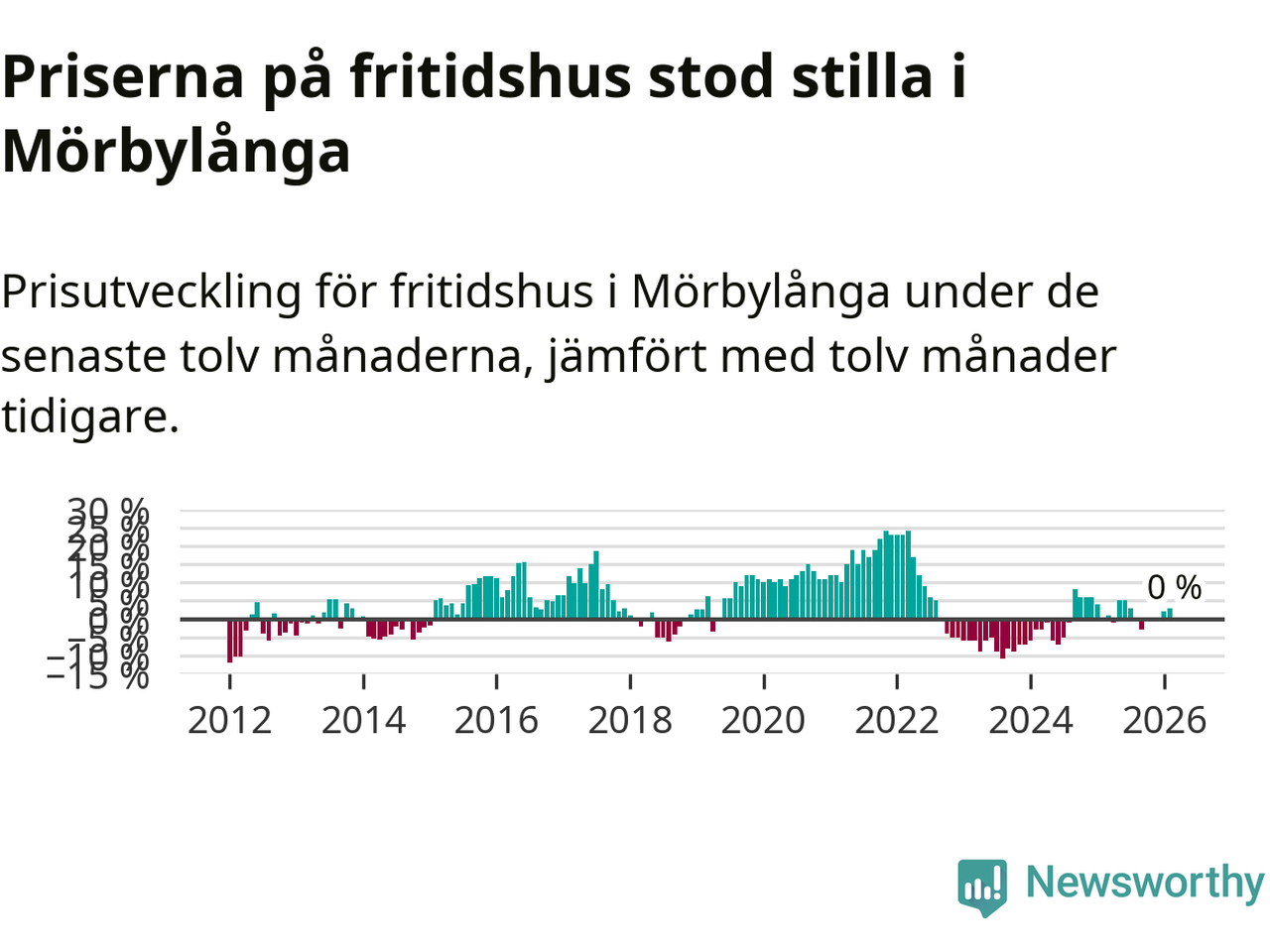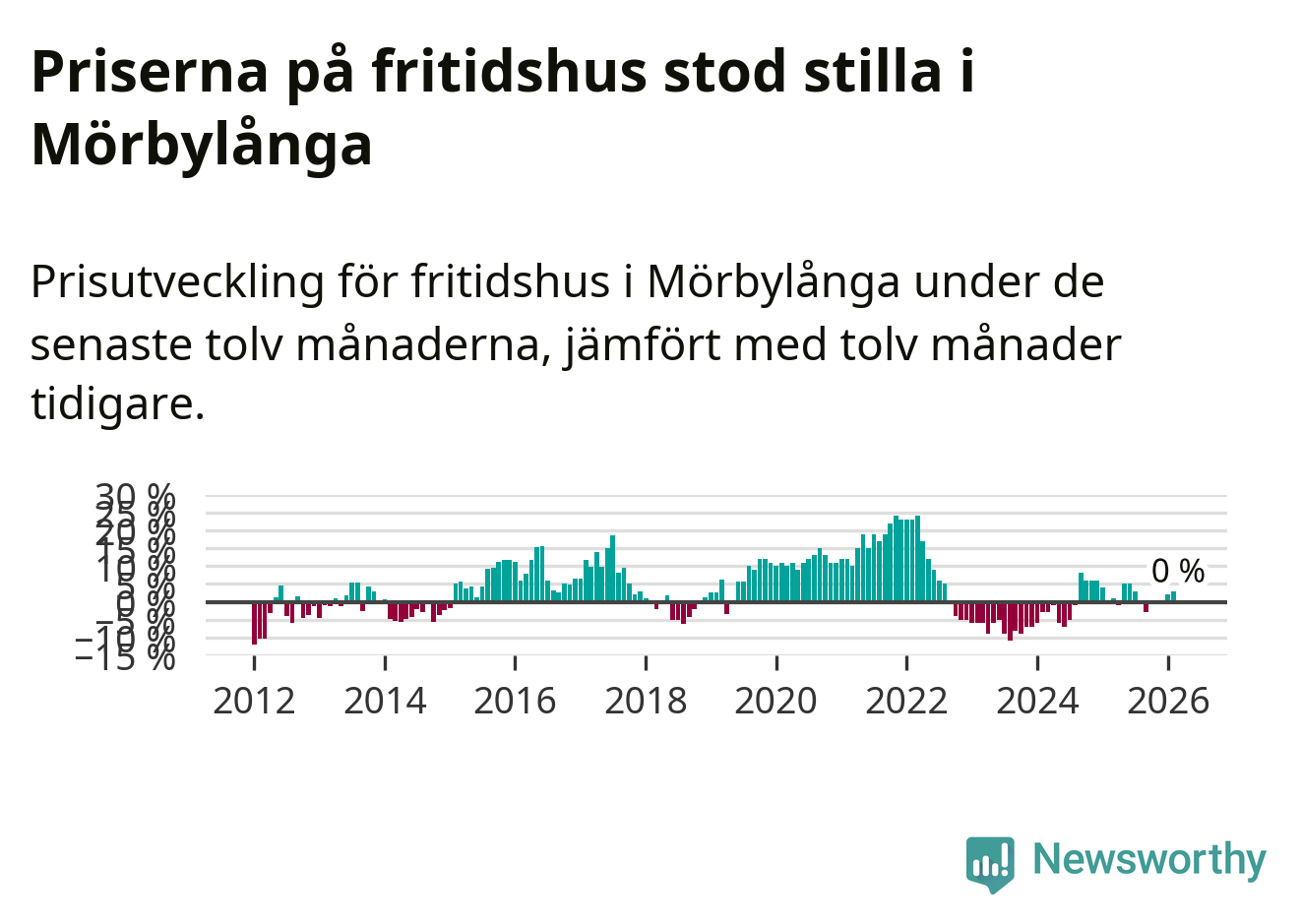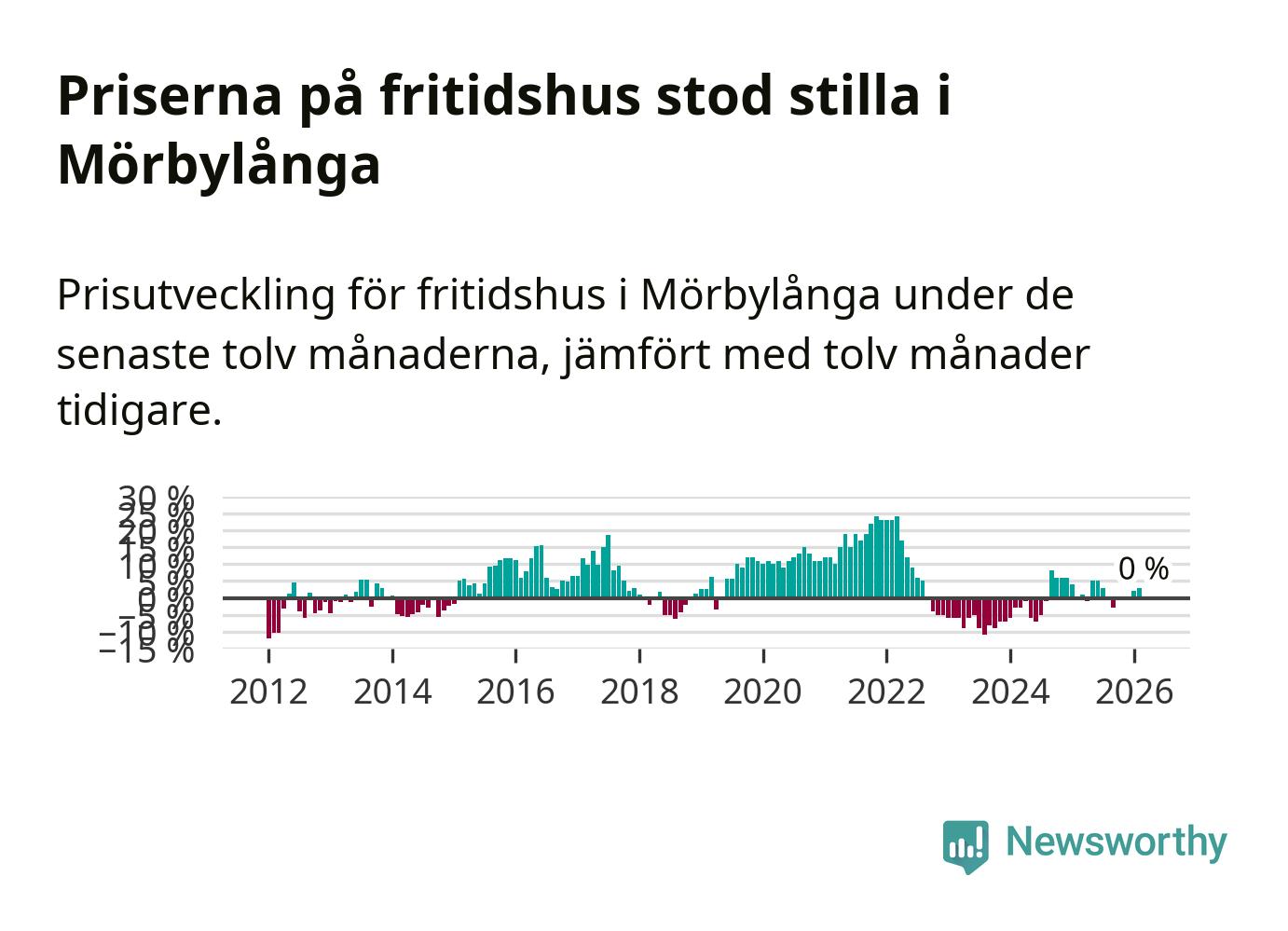 Priserna på fritidshus står i stort sett stilla i Mörbylånga kommun. Medelpriset på de på försäljningarna under de senaste tolv månaderna låg på samma nivå som för ett år sedan.