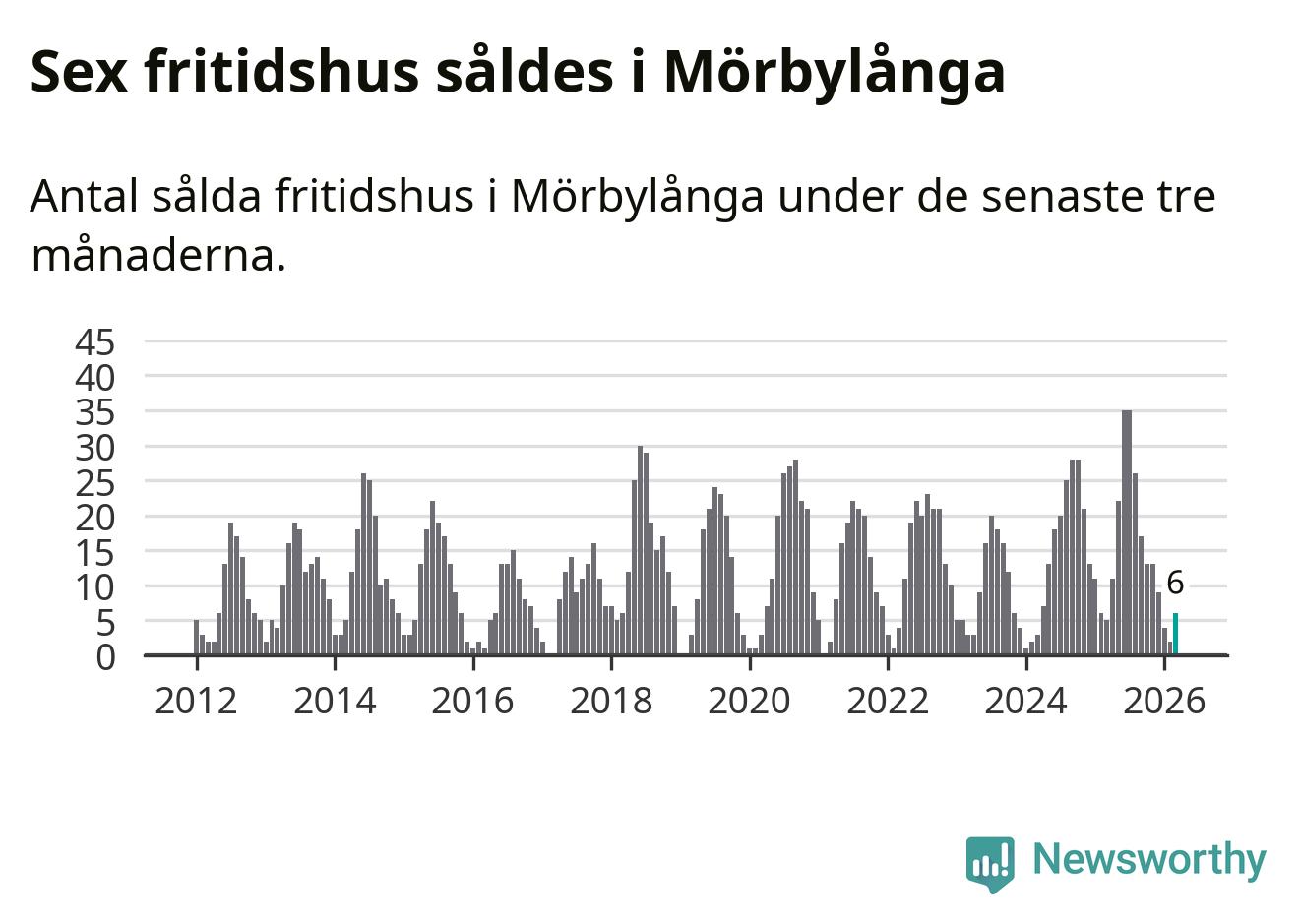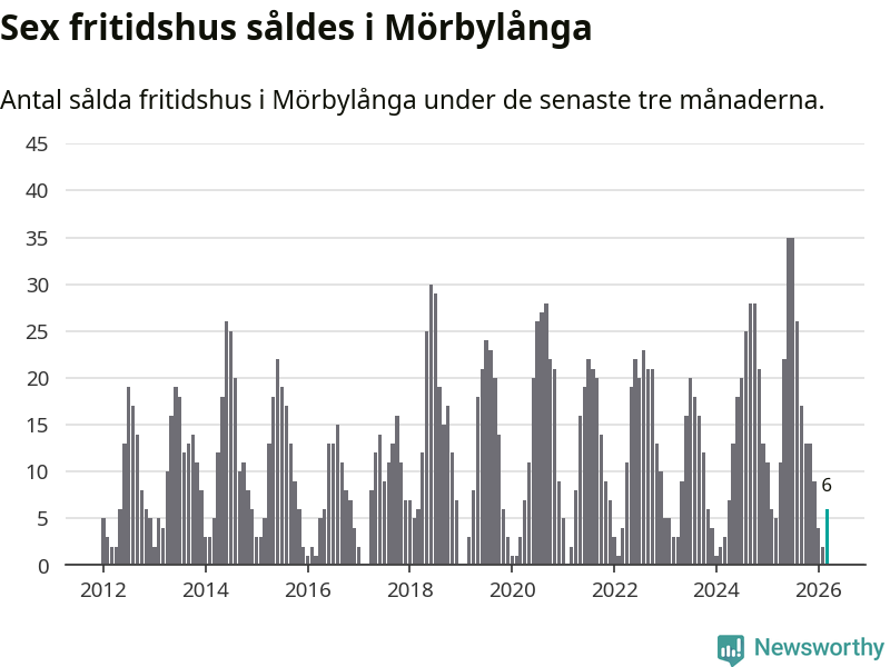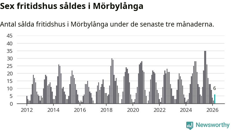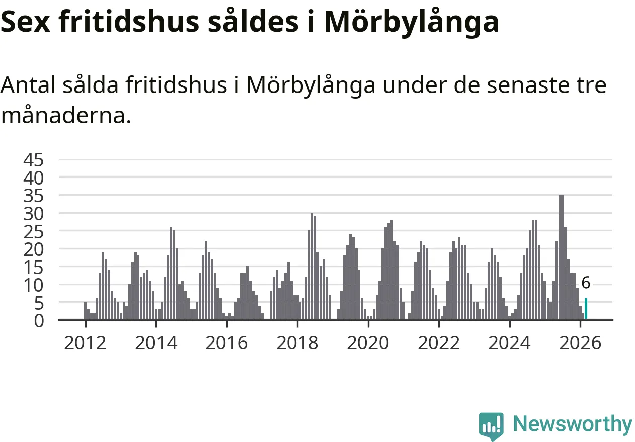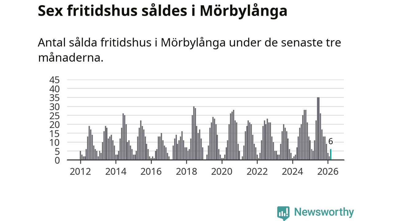 Sammanlagt såldes sex fritidshus i Mörbylånga kommun mellan januari och mars till ett genomsnittligt pris på 2,3 miljoner kronor. I fjol gjordes fem affärer vid den här tiden på året.